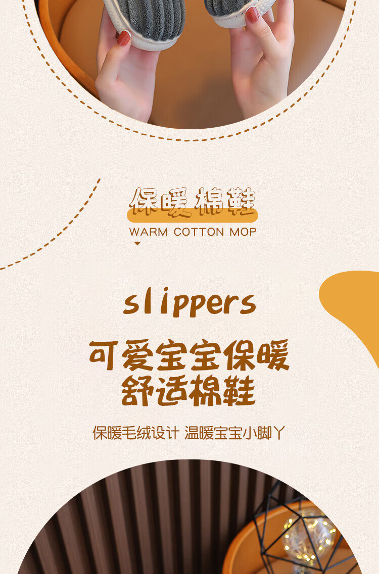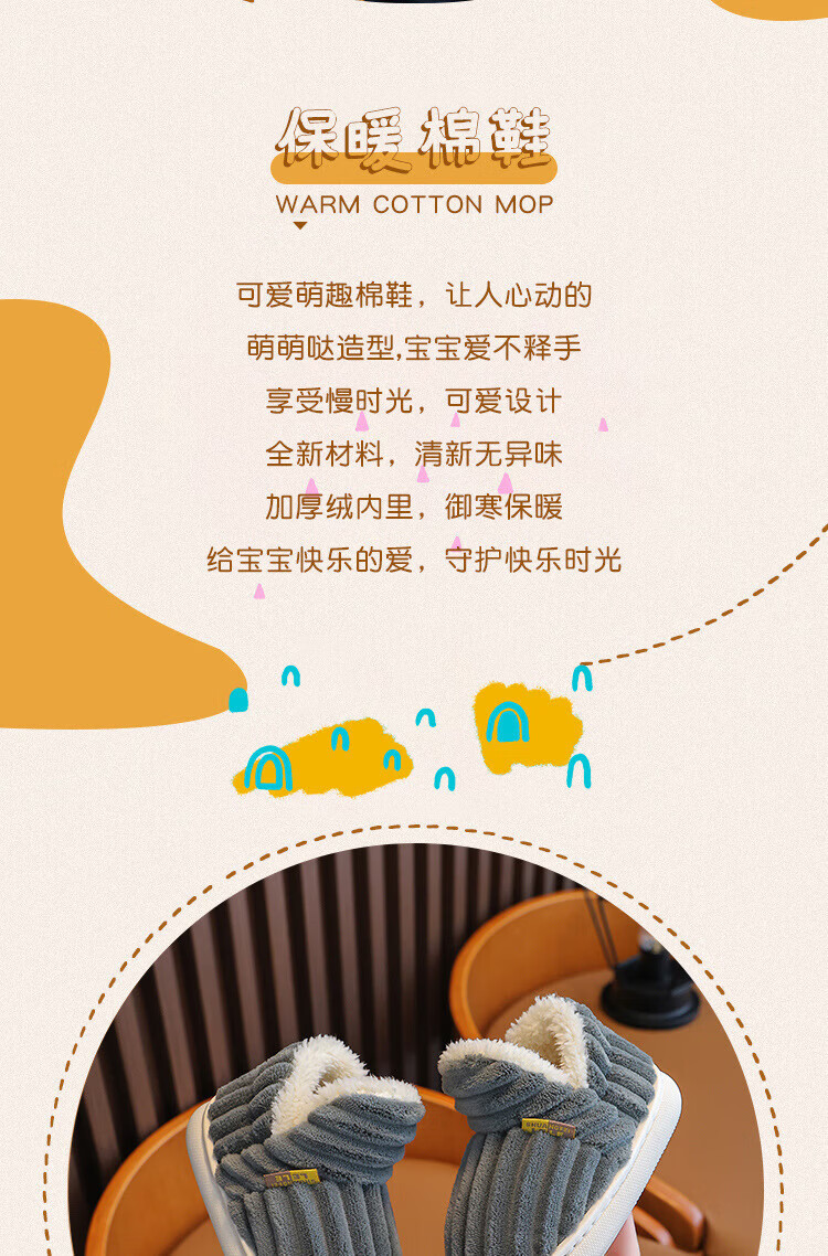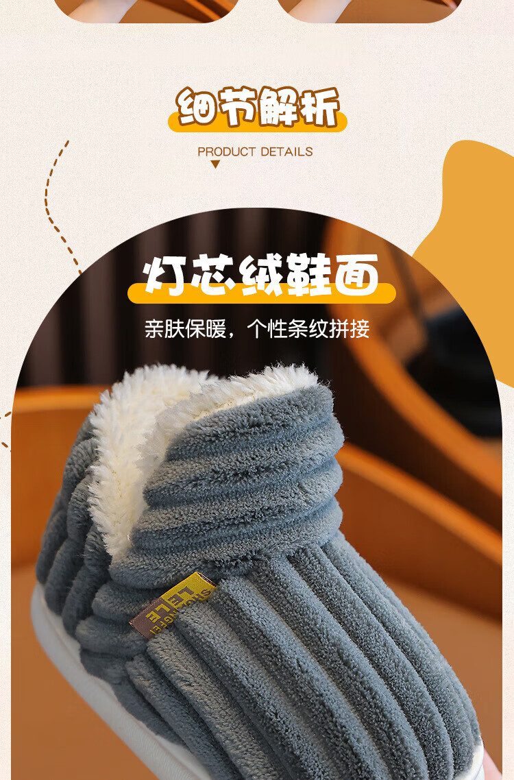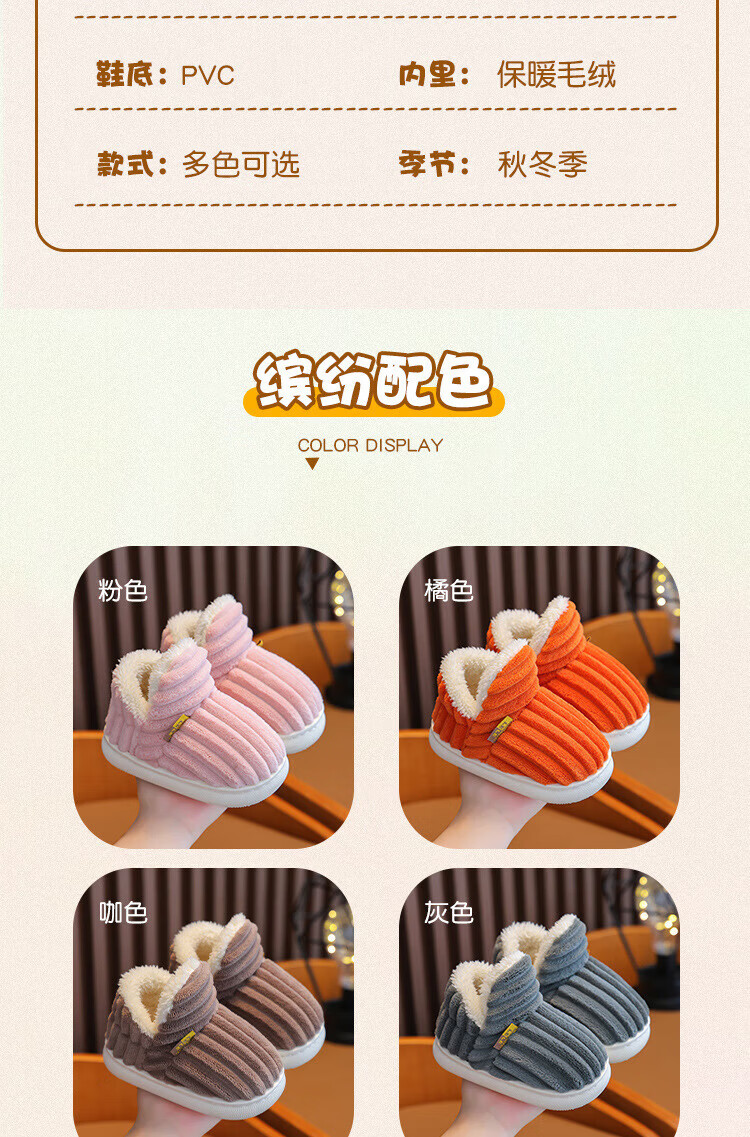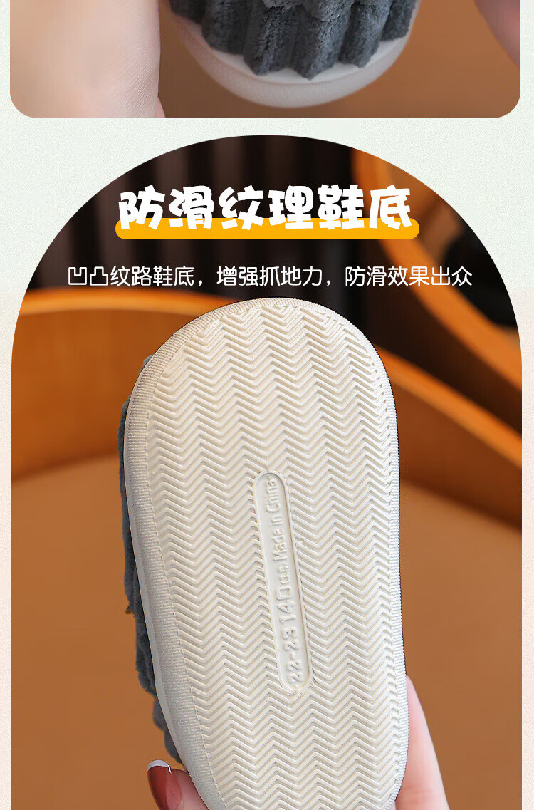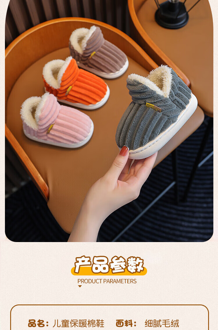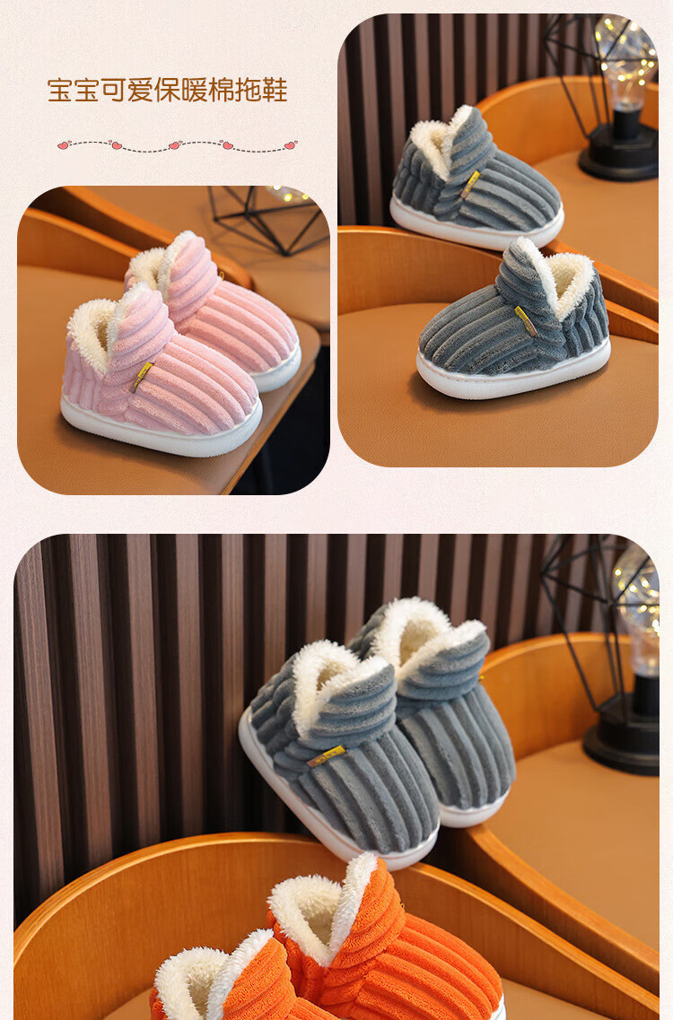 Zhizhou children's cotton slippers autumn and winter with heel for boys and girls, wool slippers for boys and girls, winter non-slip cotton shoes for 3-8 years old, gray with heel, size 34/35, inner length 21cm, suitable for 8-9 years old
