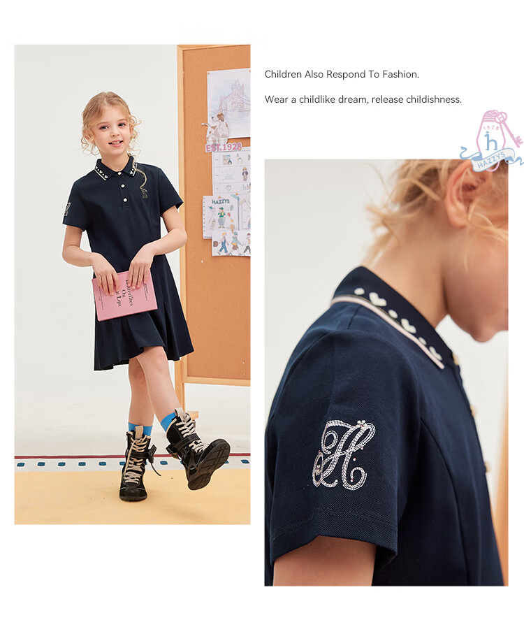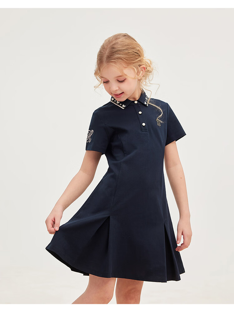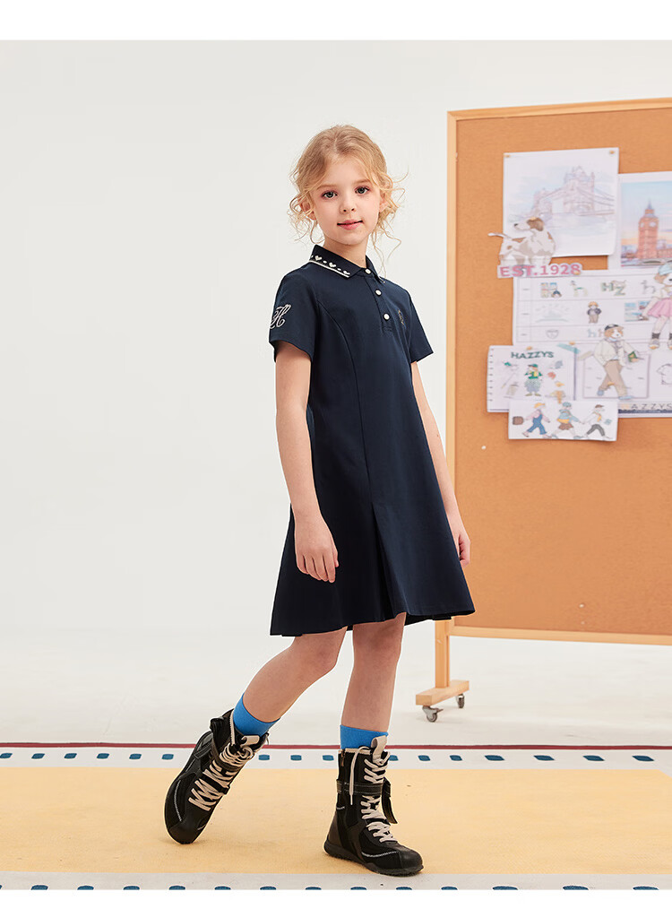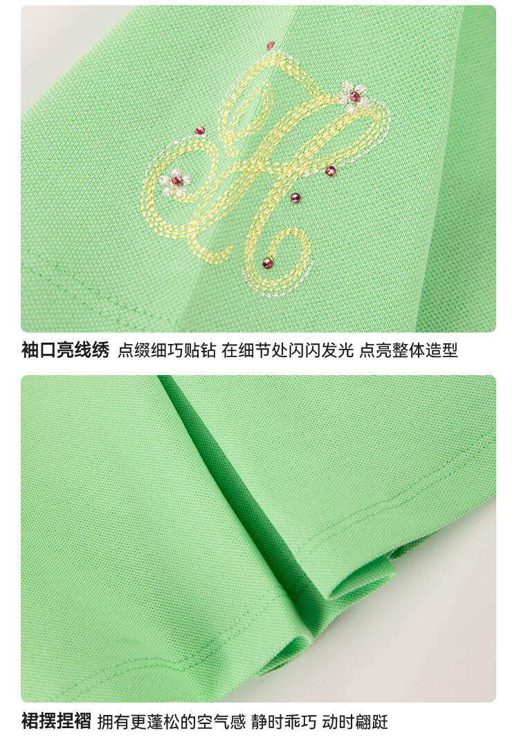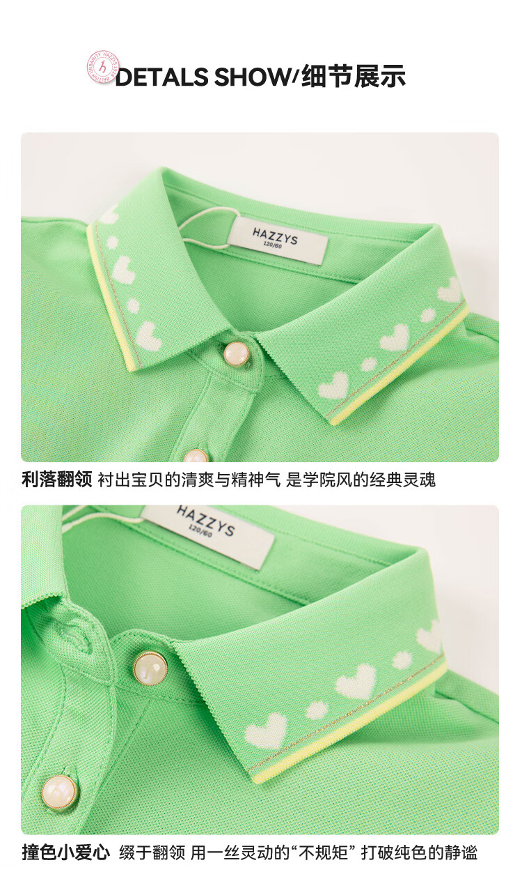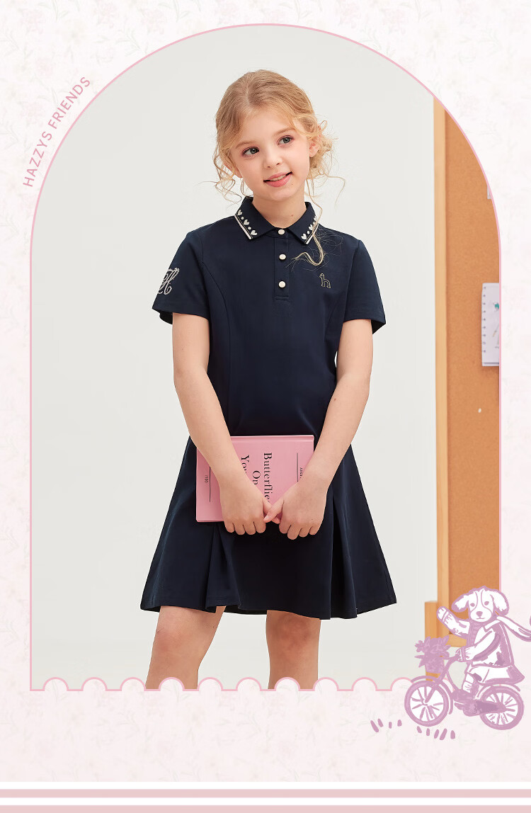 Haggis (HAZZYS) children's clothing girls dress 2026 summer new style sweet style skirt for middle and large children outdoor simple casual half-sleeved skirt green plum green 110