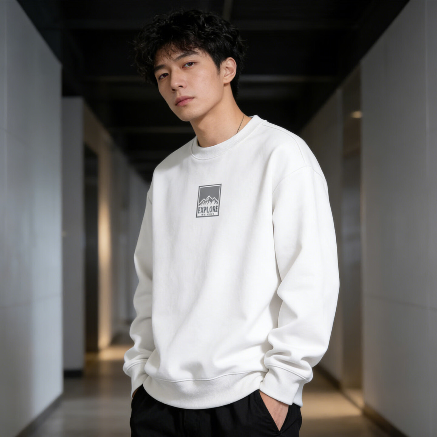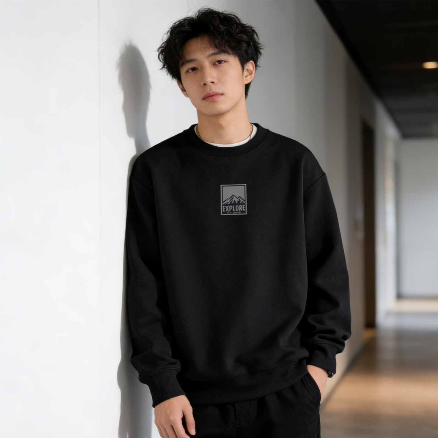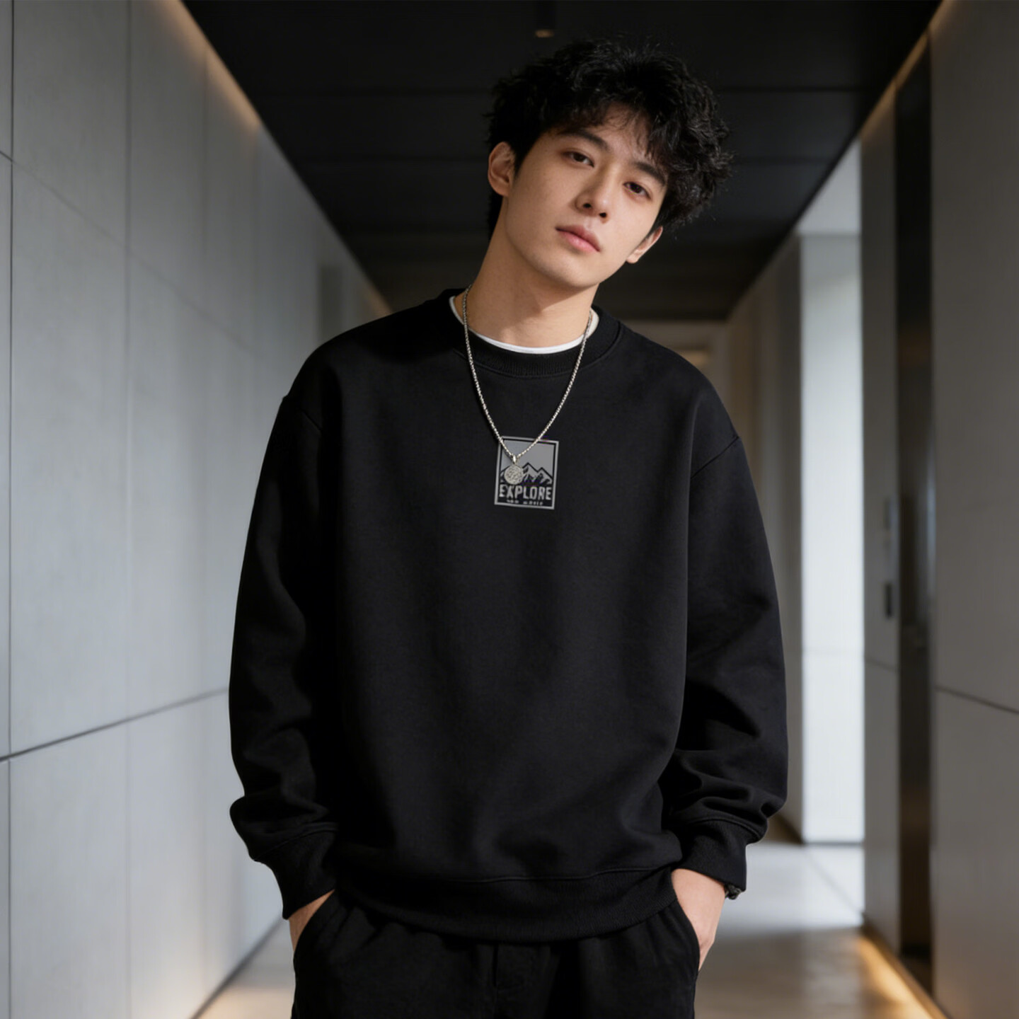 JEEP SPIRIT American heavyweight sweatshirt for men 2026 spring new daily casual loose round neck hooded top jacket for men black L 135-160Jin Jin equals 0.5 kg