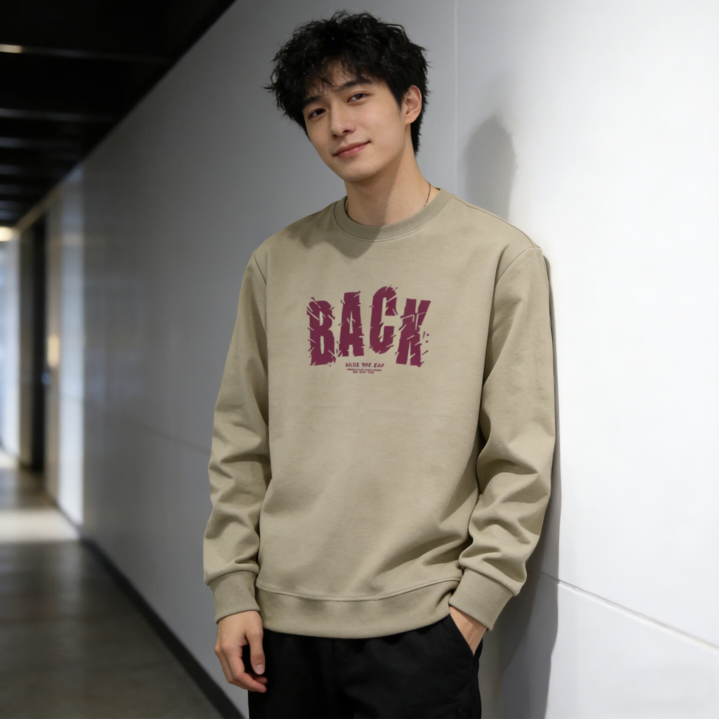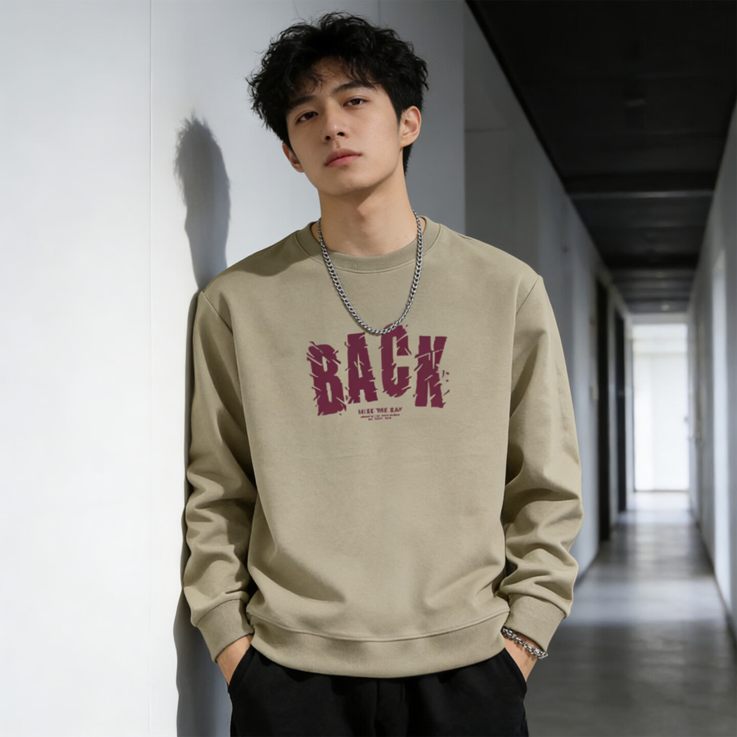 JEEP SPIRIT American heavy velvet thickened sweatshirt for men 2026 spring loose casual round neck printed long-sleeved top light green XL 150-180Jin Jin equals 0.5 kg