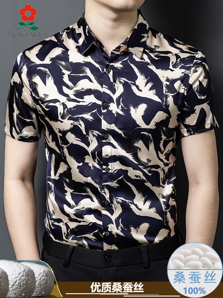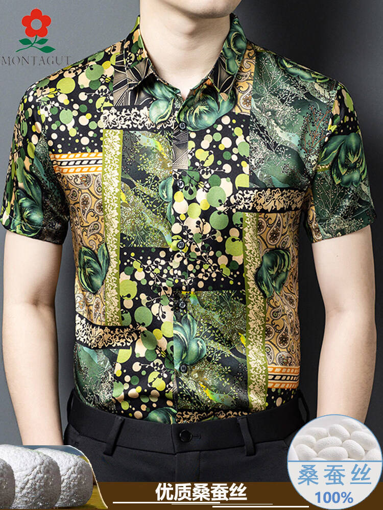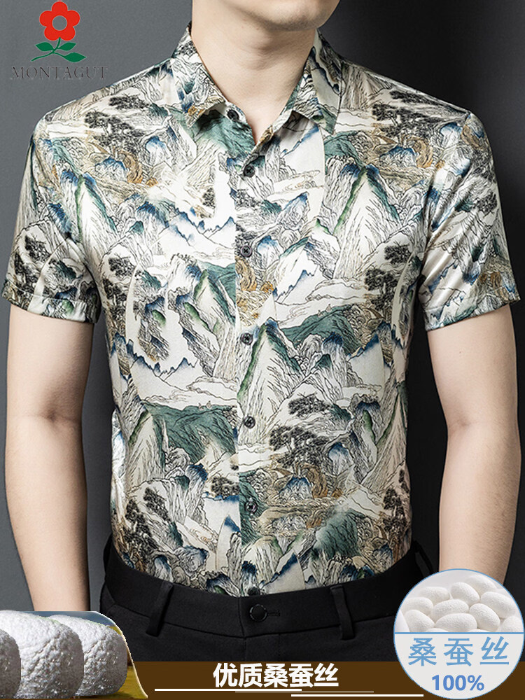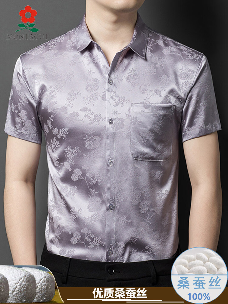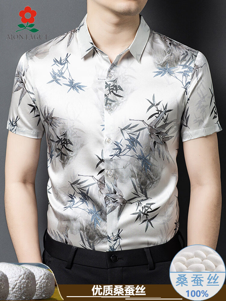 MONTAGUT mulberry silk short-sleeved floral shirt men's summer silk high-end handsome 2055 white M 165 suitable for 100-115 Jin Jin equals 0.5 kg