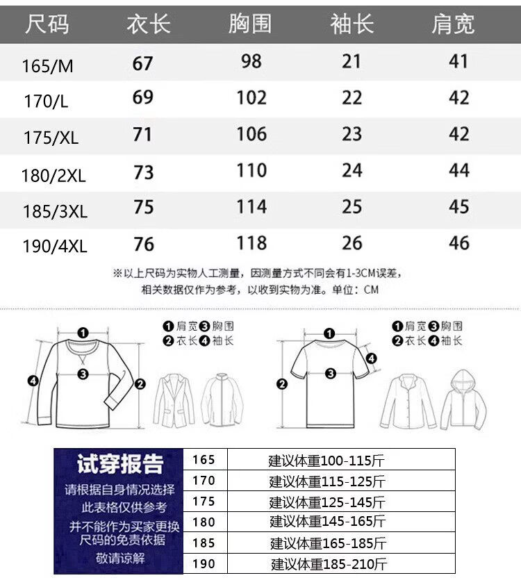 China (cm) 165 / 88-90 170 / 96-98 175 / 108-110 180 / 118-122 185 / 126-130