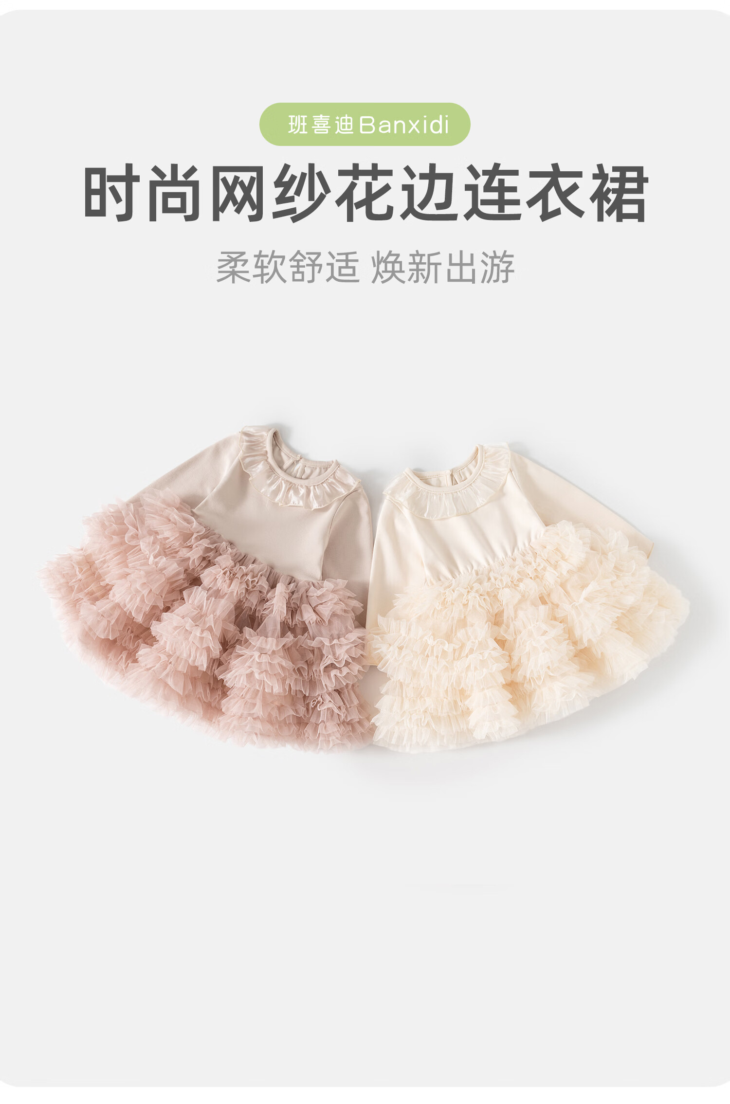 Banxidi girls dress spring 2026 new style children's mesh skirt one-year-old dress infant baby tutu skirt pink 73