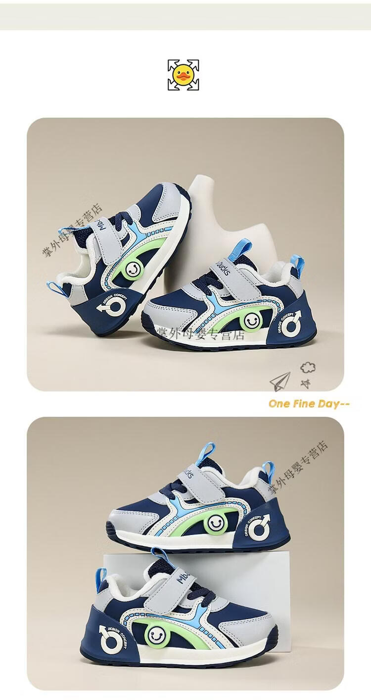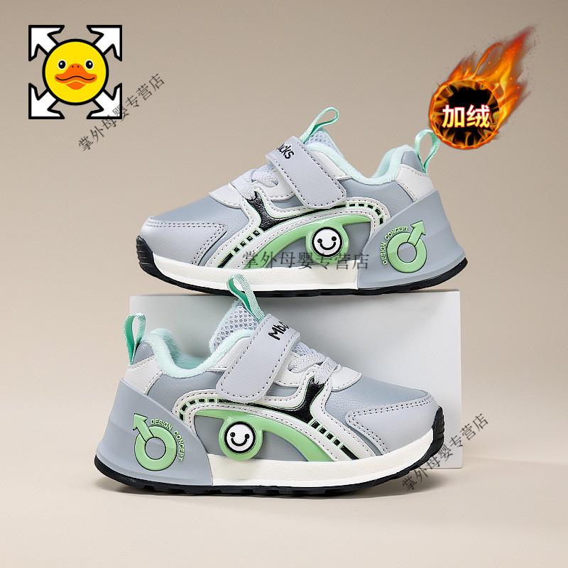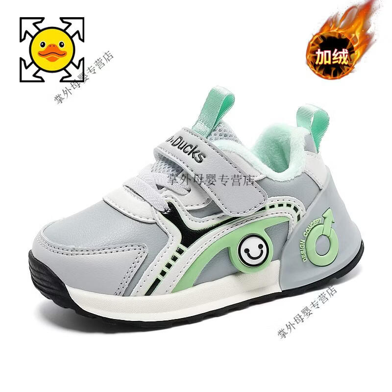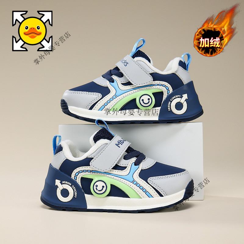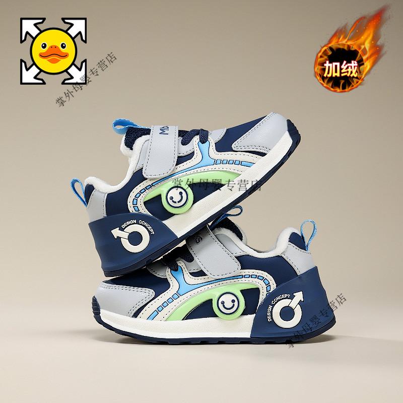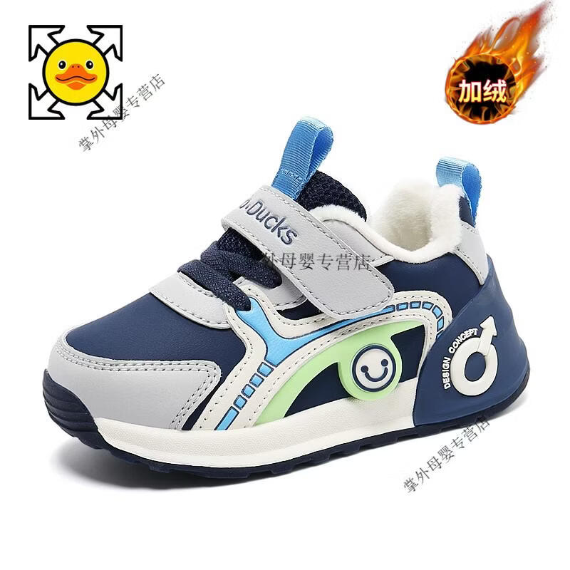 G.duck little yellow duck little yellow duck boys' shoes 2026 autumn and winter new style little girls' baby shoes plus velvet two-padded shoes for children BBX2503W-grey blue spring and autumn double mesh 21 shoe inner length 13.8
