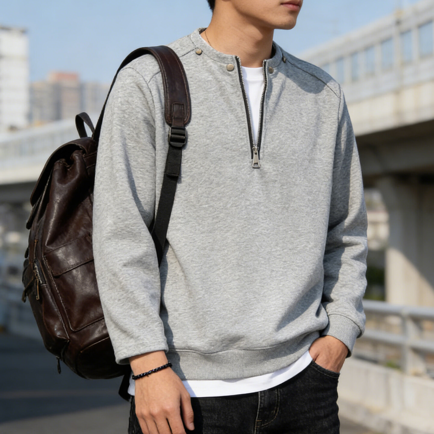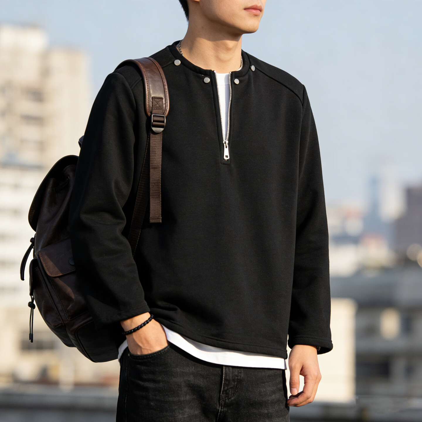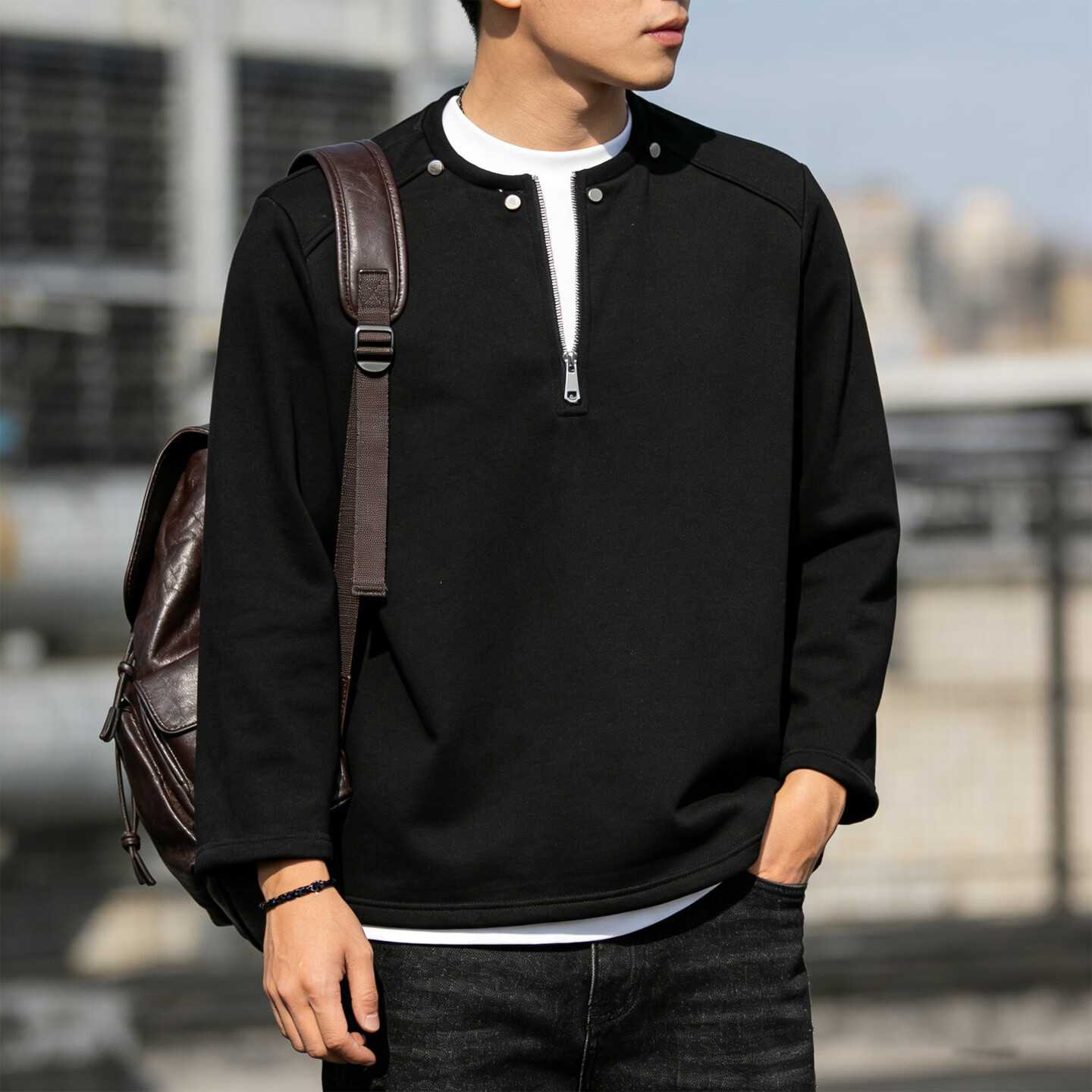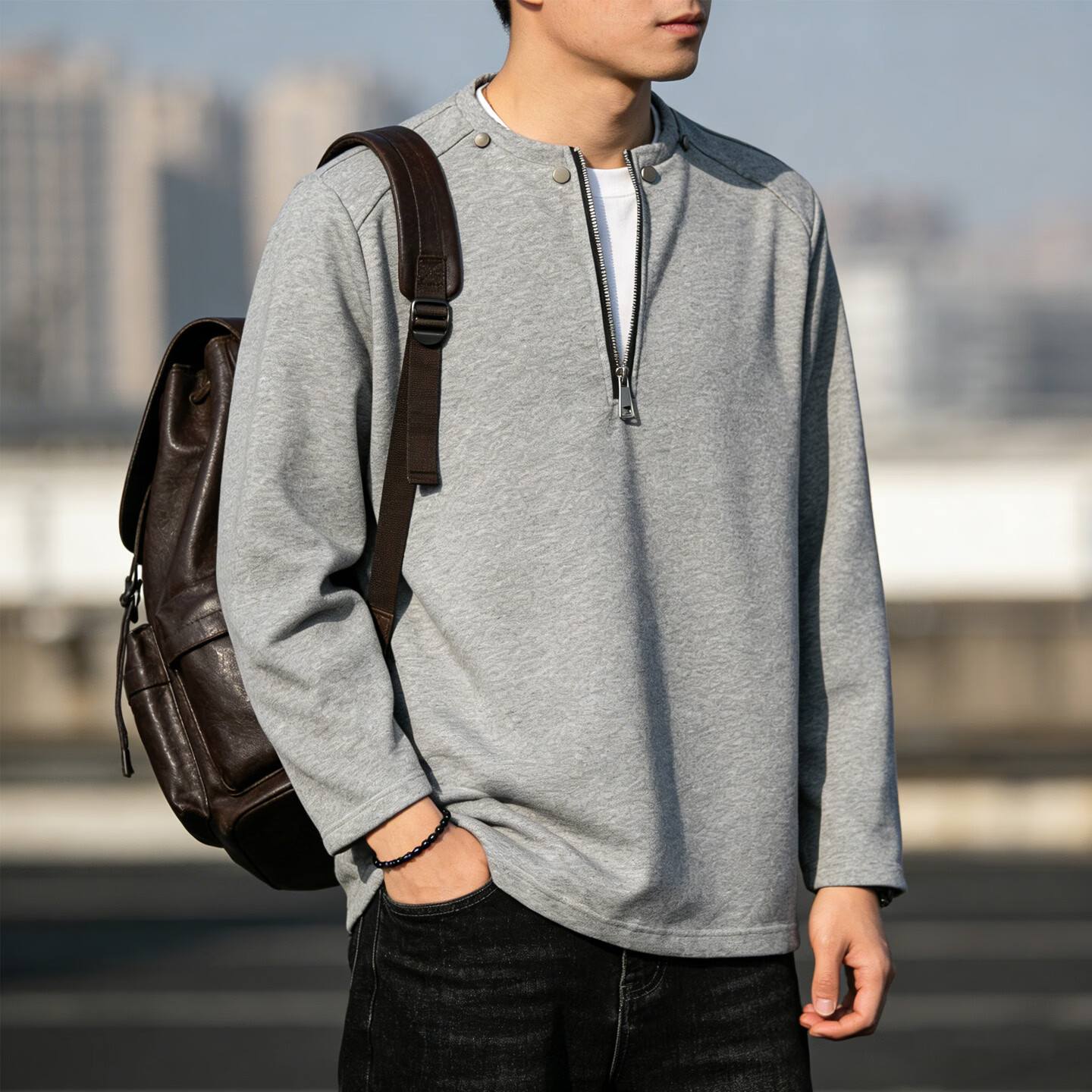 JEEP SPIRIT half-zip sweatshirt men's American retro cardigan sweatshirt couple tops trendy casual sports long-sleeved jacket for men gray M 80 - 105 Jin Jin is equal to 0.5 kg