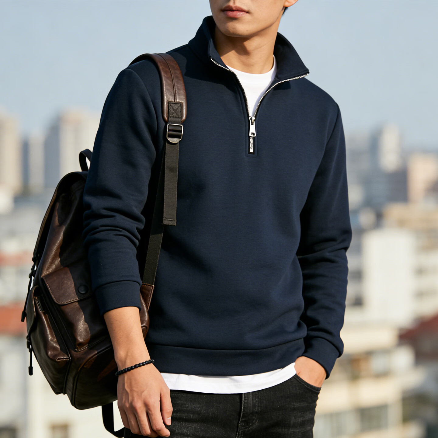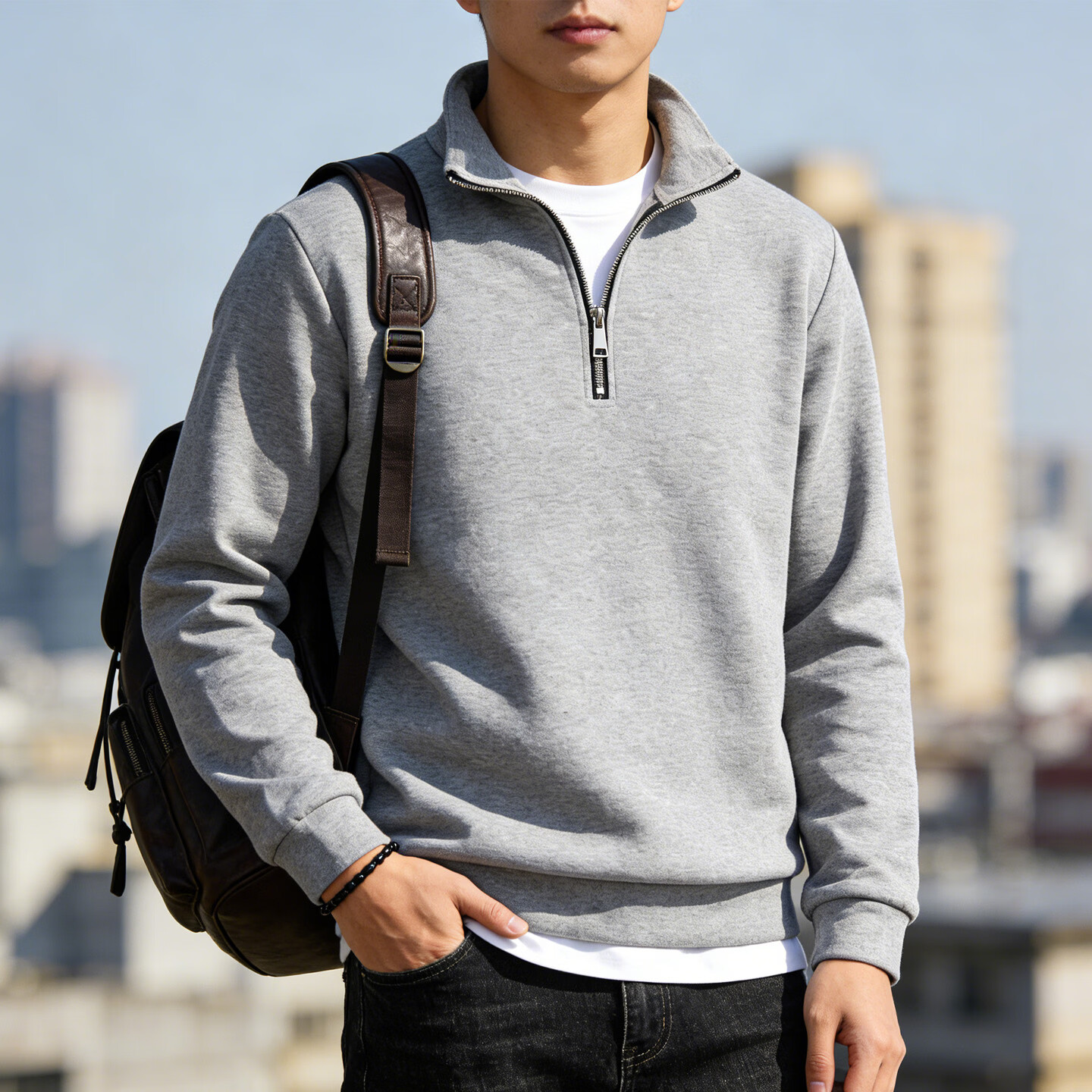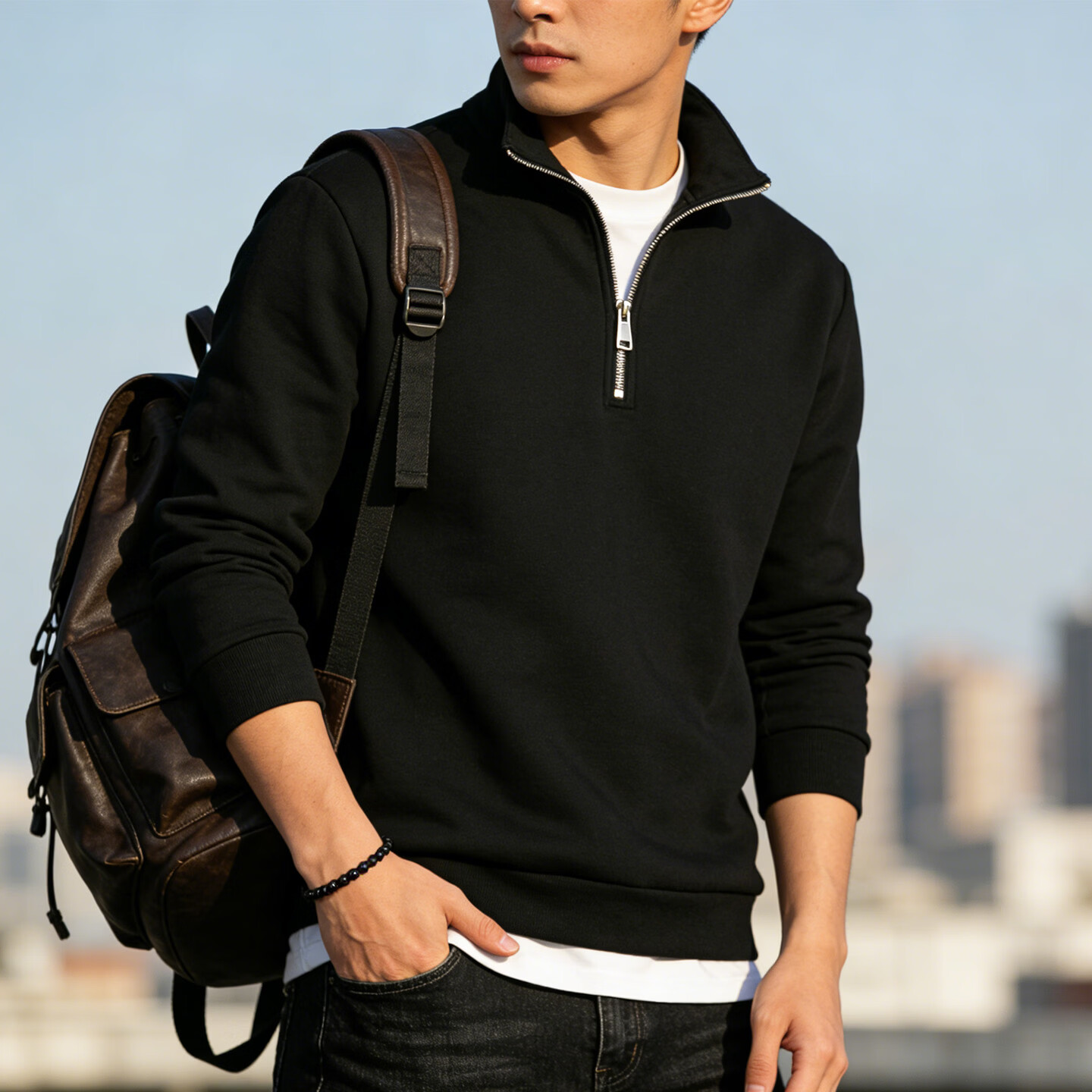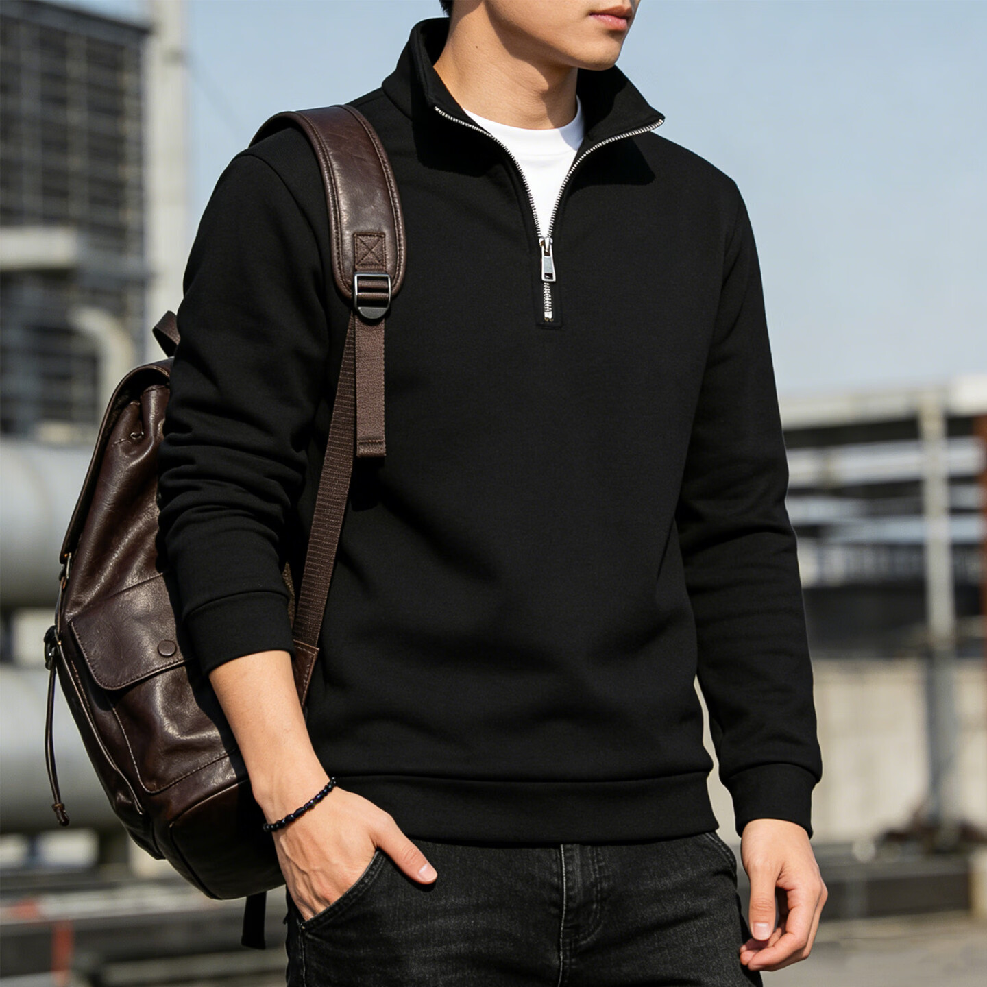 JEEP SPIRIT Jeep half-zip stand-up collar sweatshirt men's 2026 spring loose casual long-sleeved bottoming shirt jacket men's black S 70 - 90 Jin Jin is equal to 0.5 kg