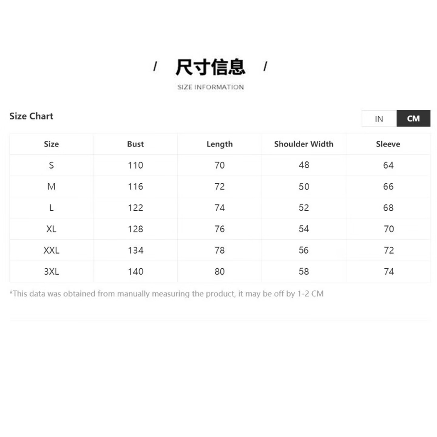 China(cm) 72-76 76-81 81-87 87-93 93-98