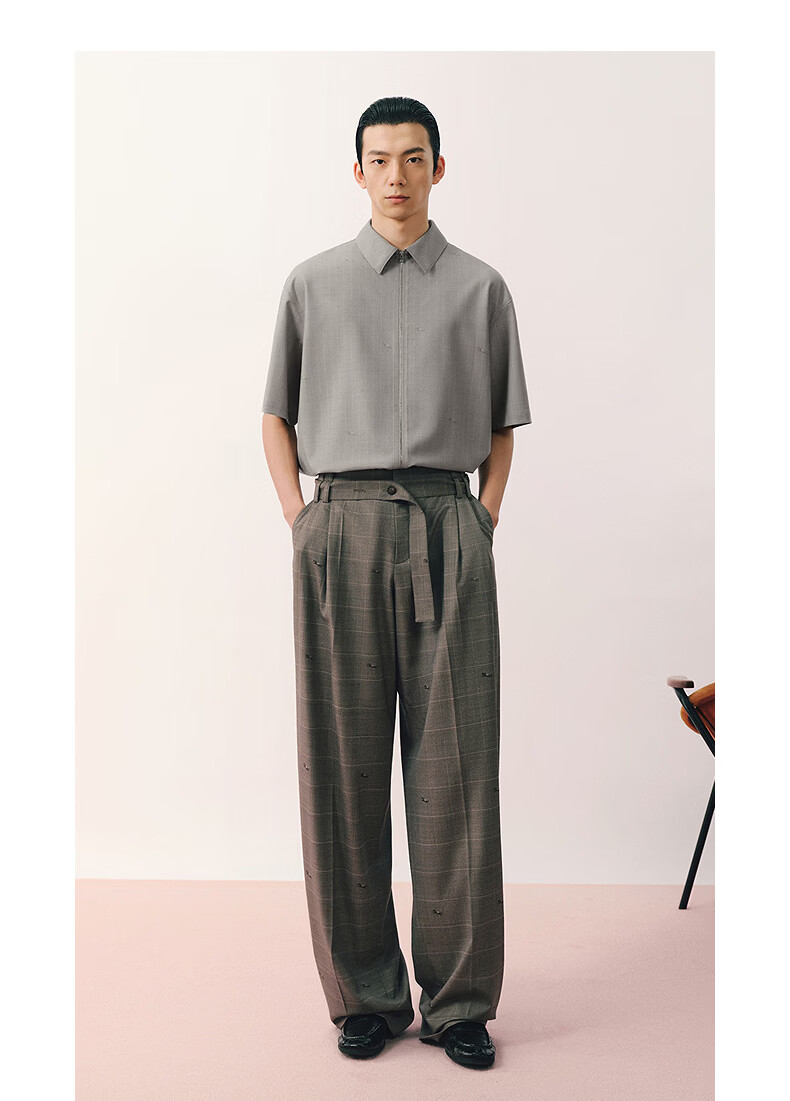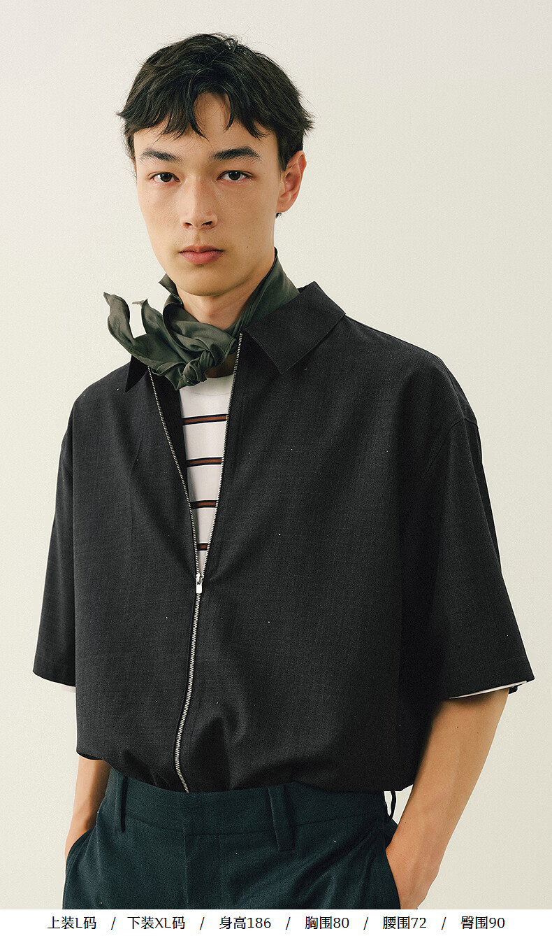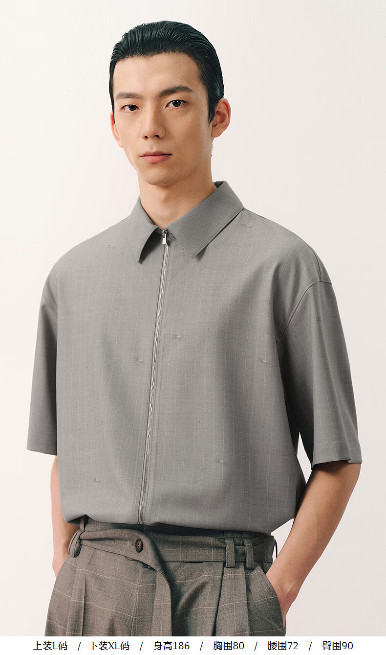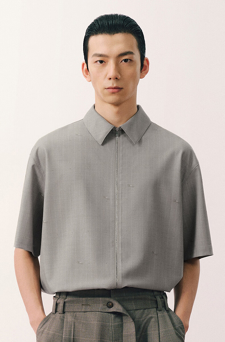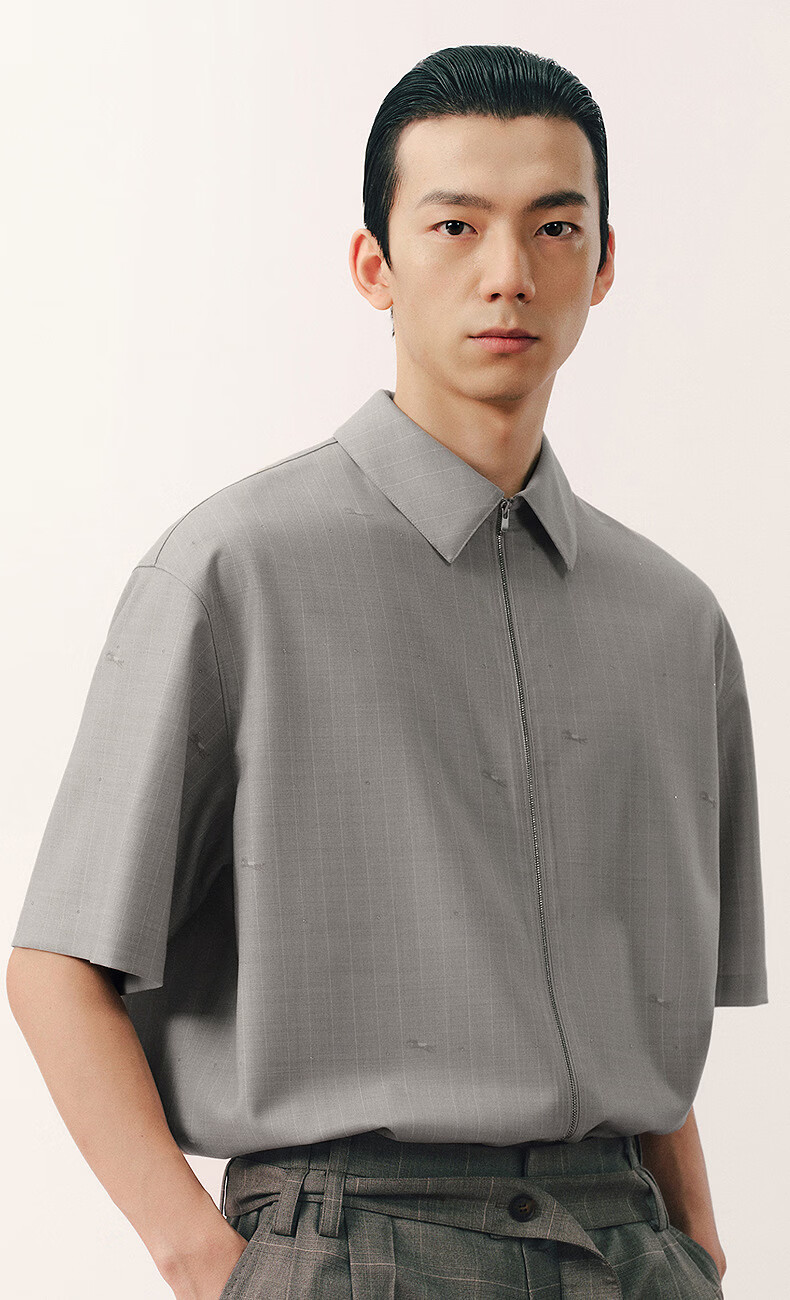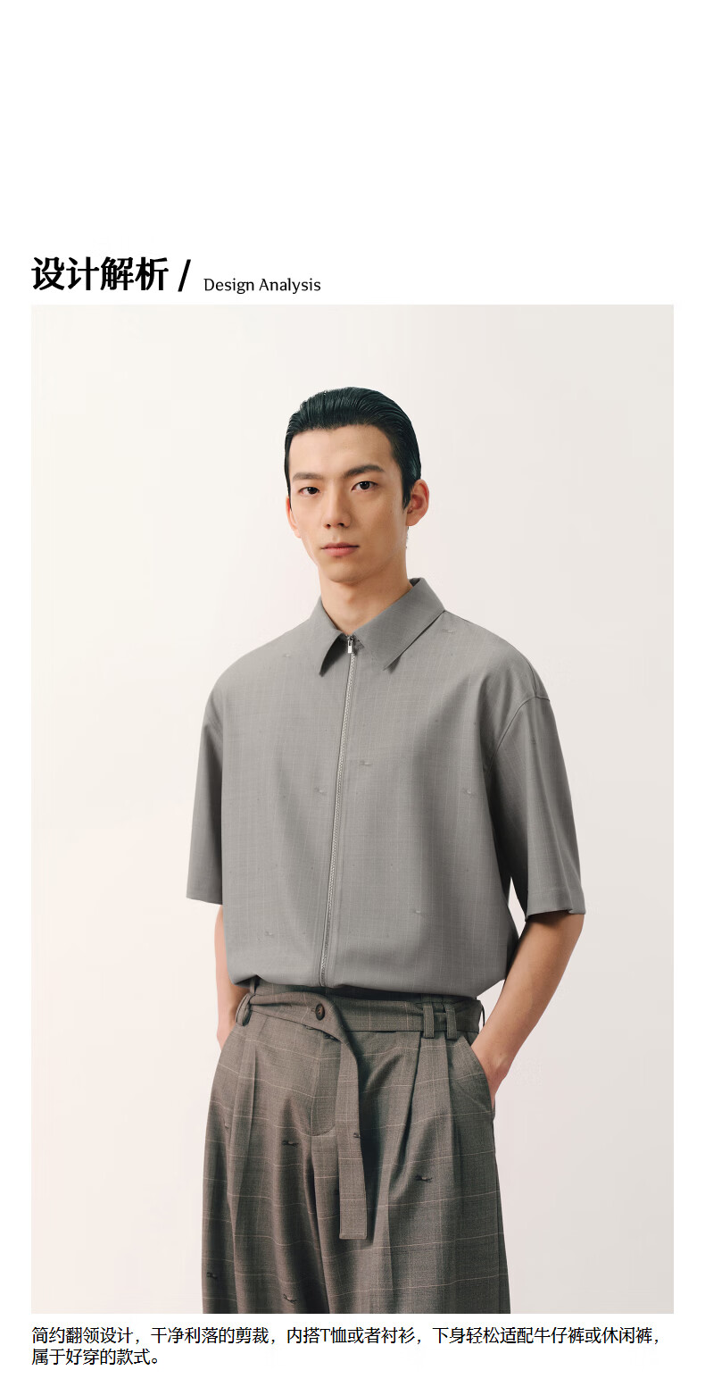 Sketch men's 2026 summer new short-sleeved shirt H-shaped loose lapel zipper 9Q4213450 283 Khaki S