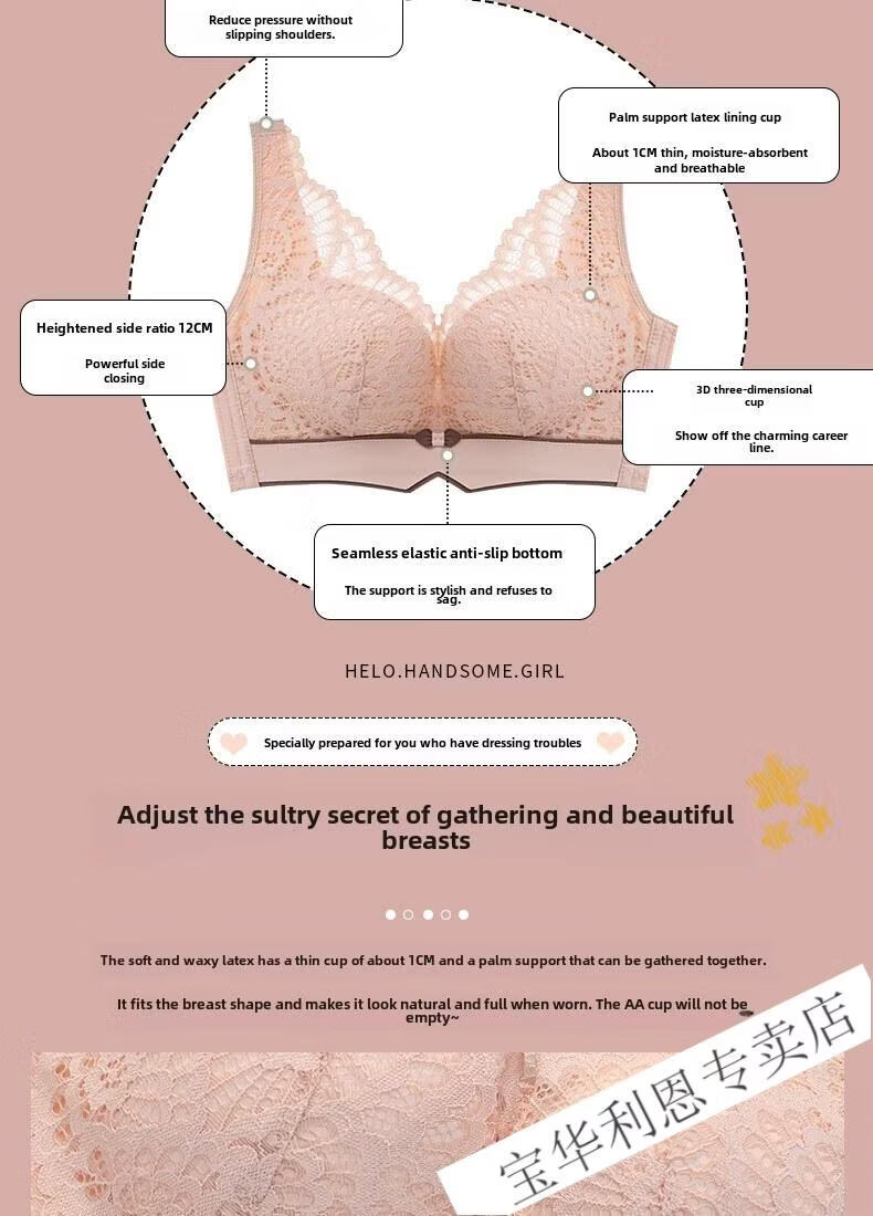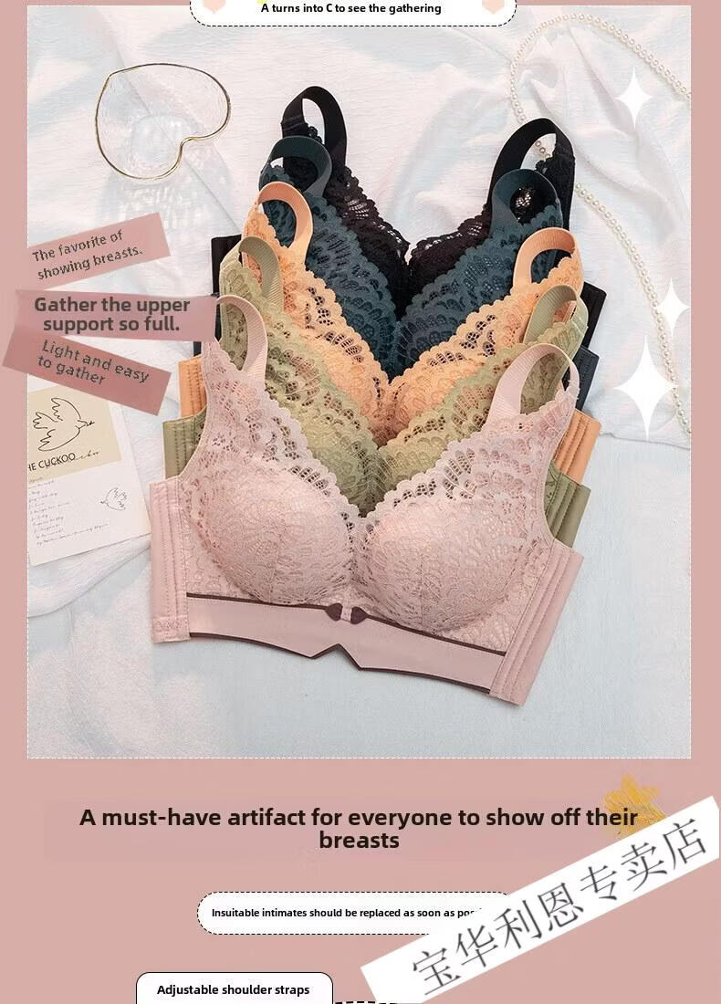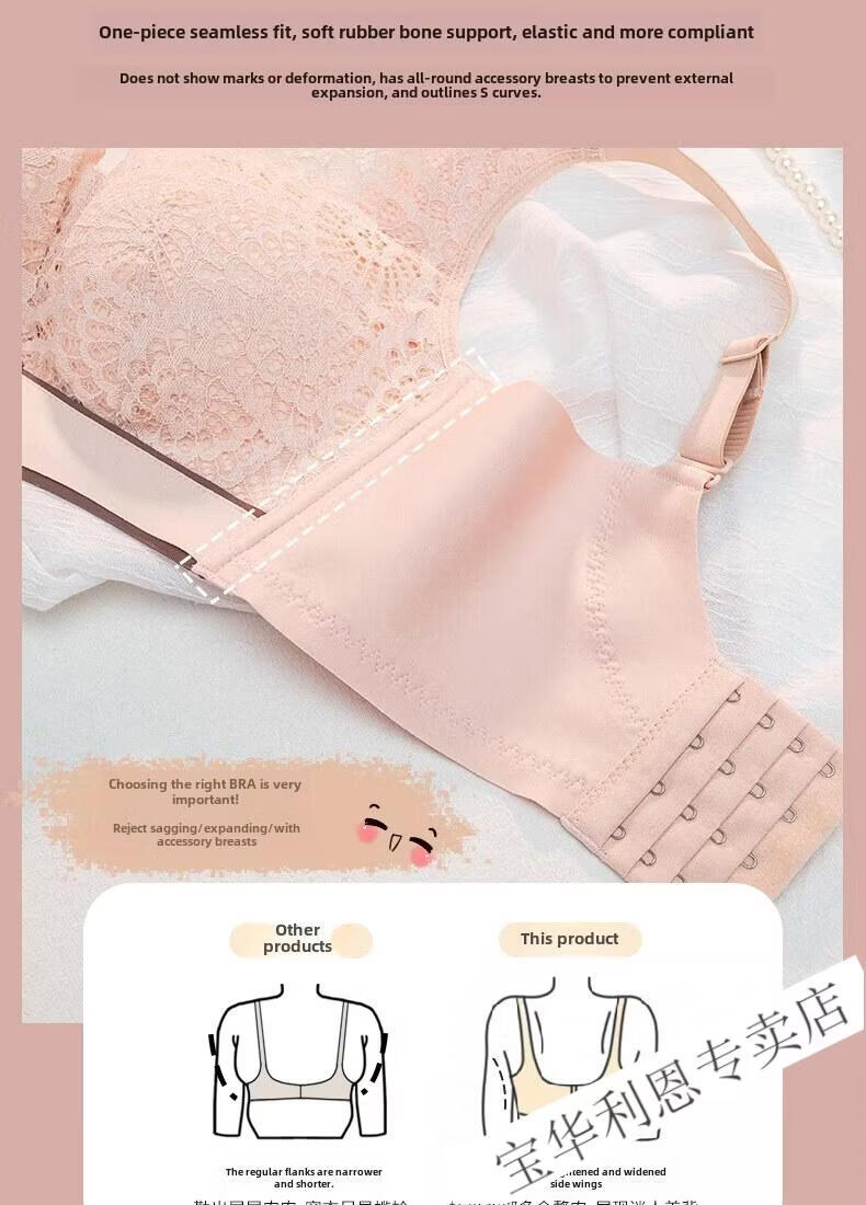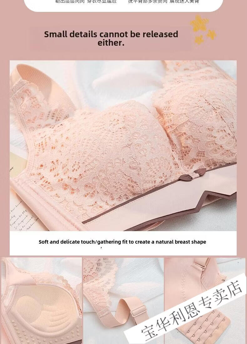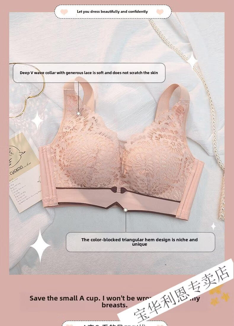 猫人(MiiOW)内衣女小胸聚拢收副乳防下垂中厚提拉性感蕾丝调整型无钢圈文胸罩 粉肤单件 90C 40