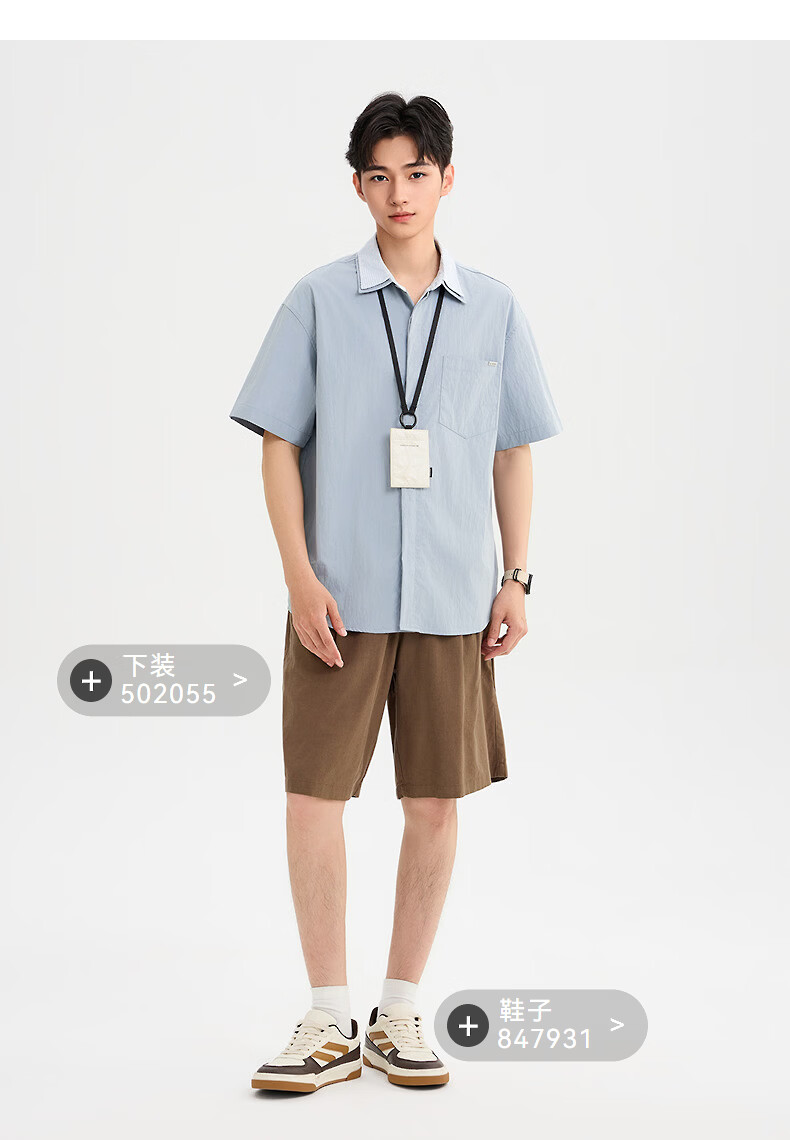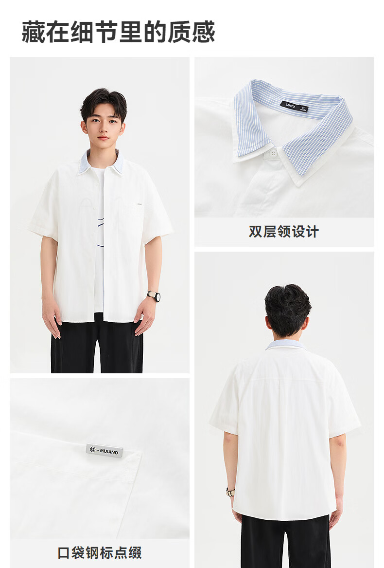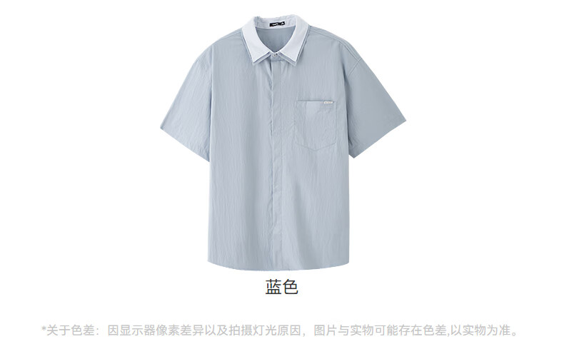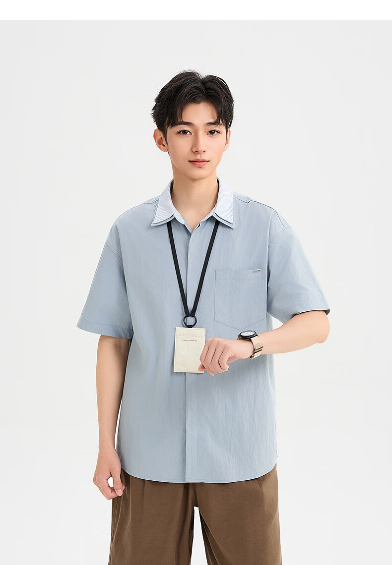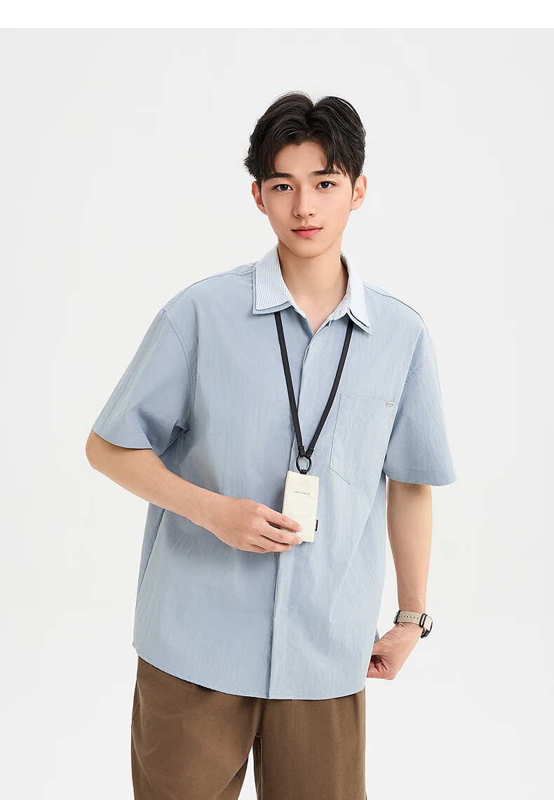 SANFU 2026 Summer Men's Double Lapel Short Shirt Fashionable Solid Color Slightly Dropped Top 522169 Blue L