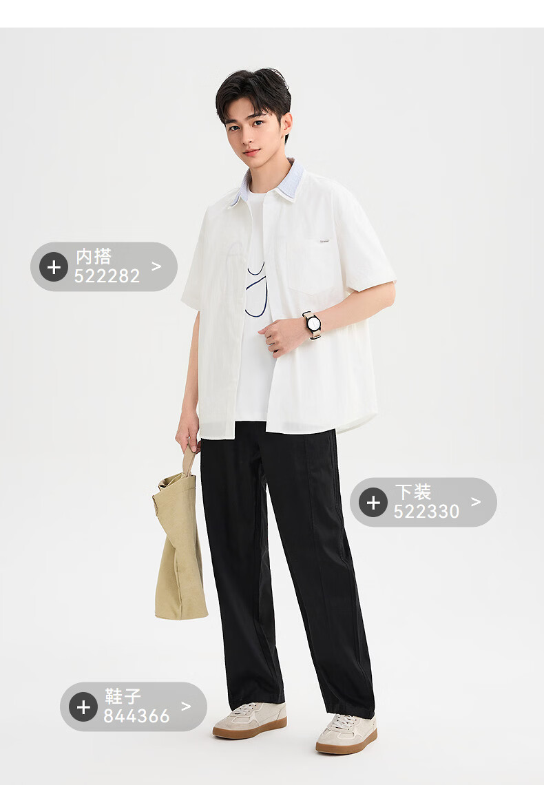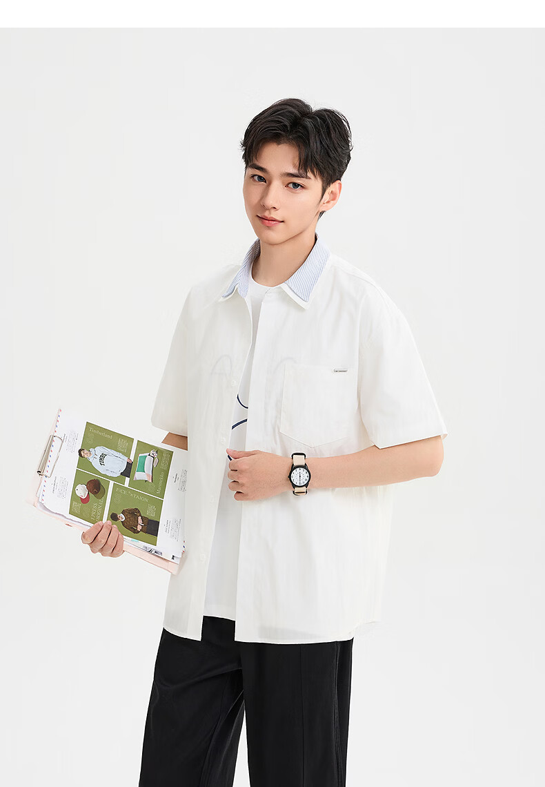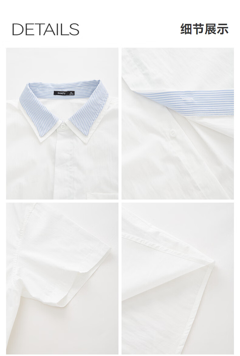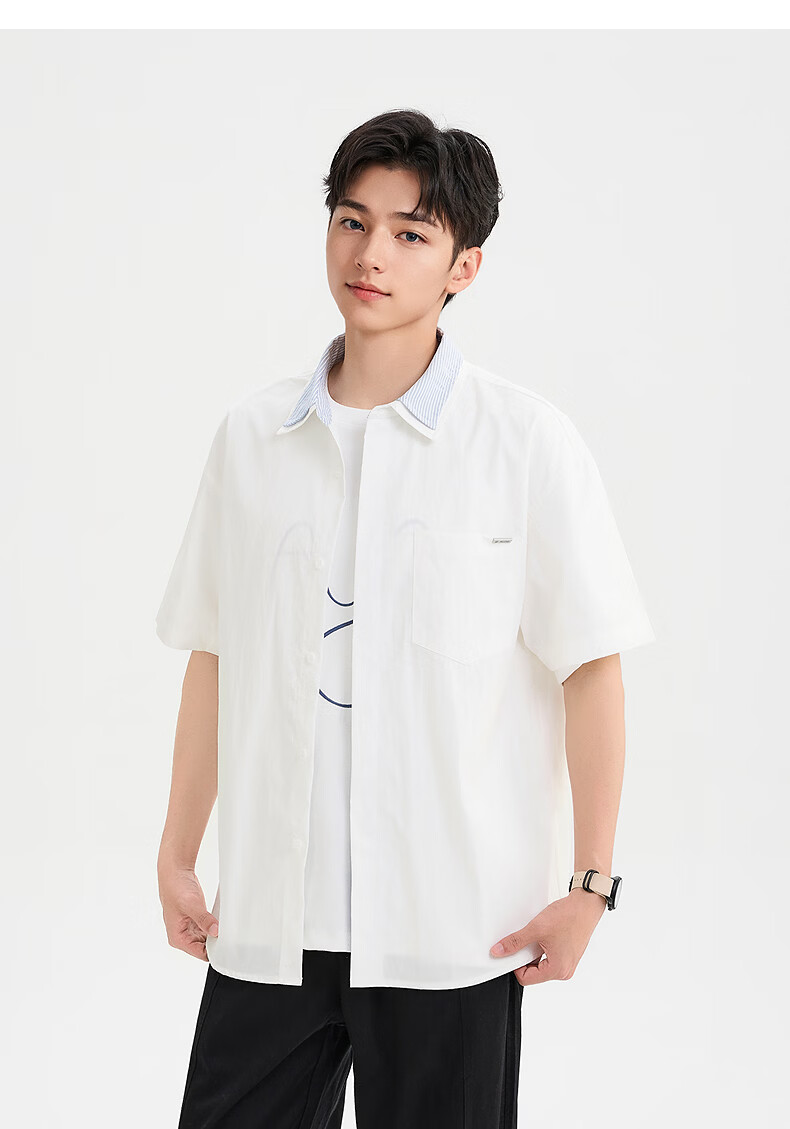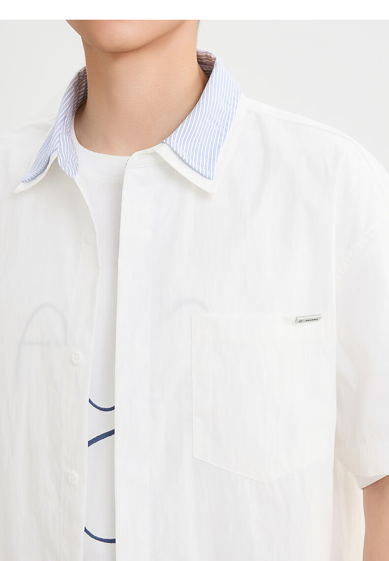 SANFU 2026 Summer Men's Double Lapel Short Shirt Fashionable Solid Color Slightly Dropped Top 522169 Blue L