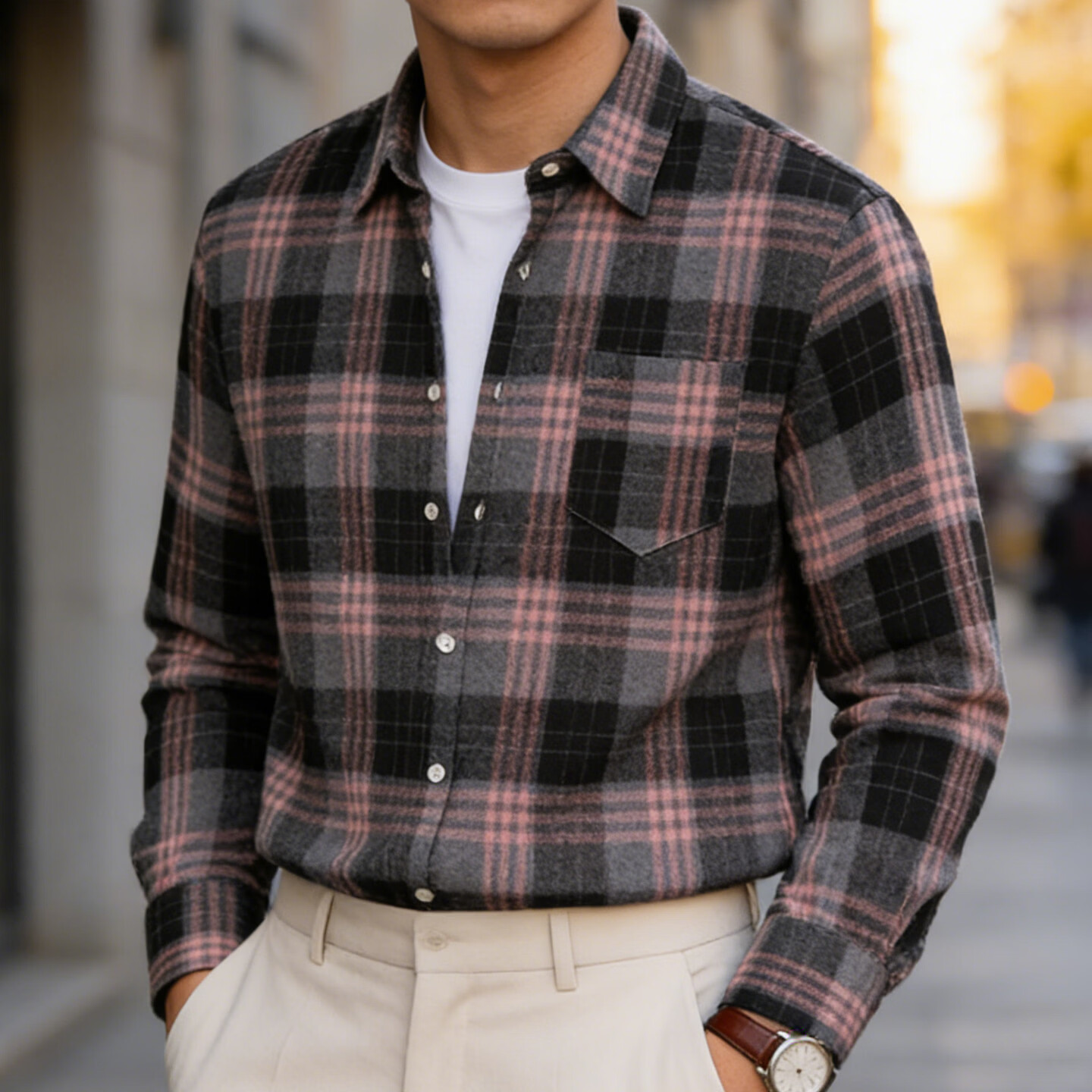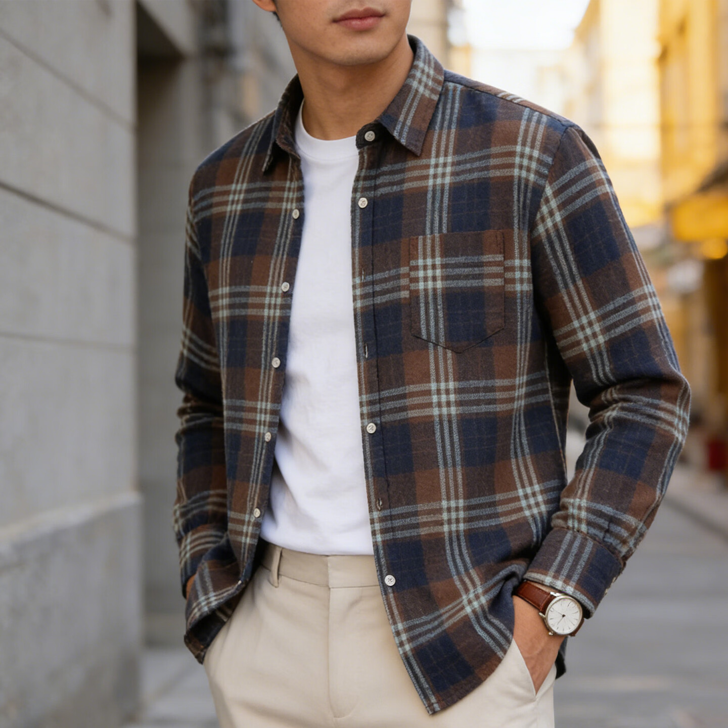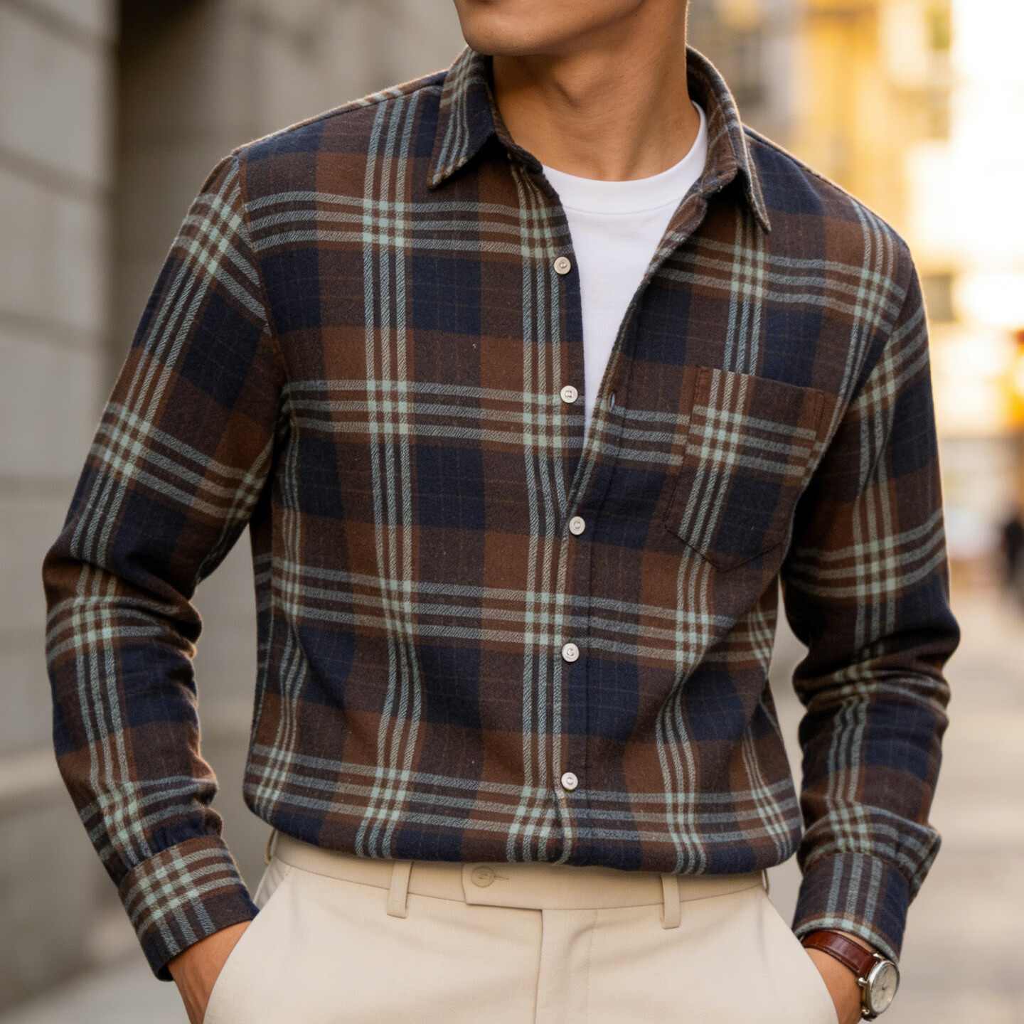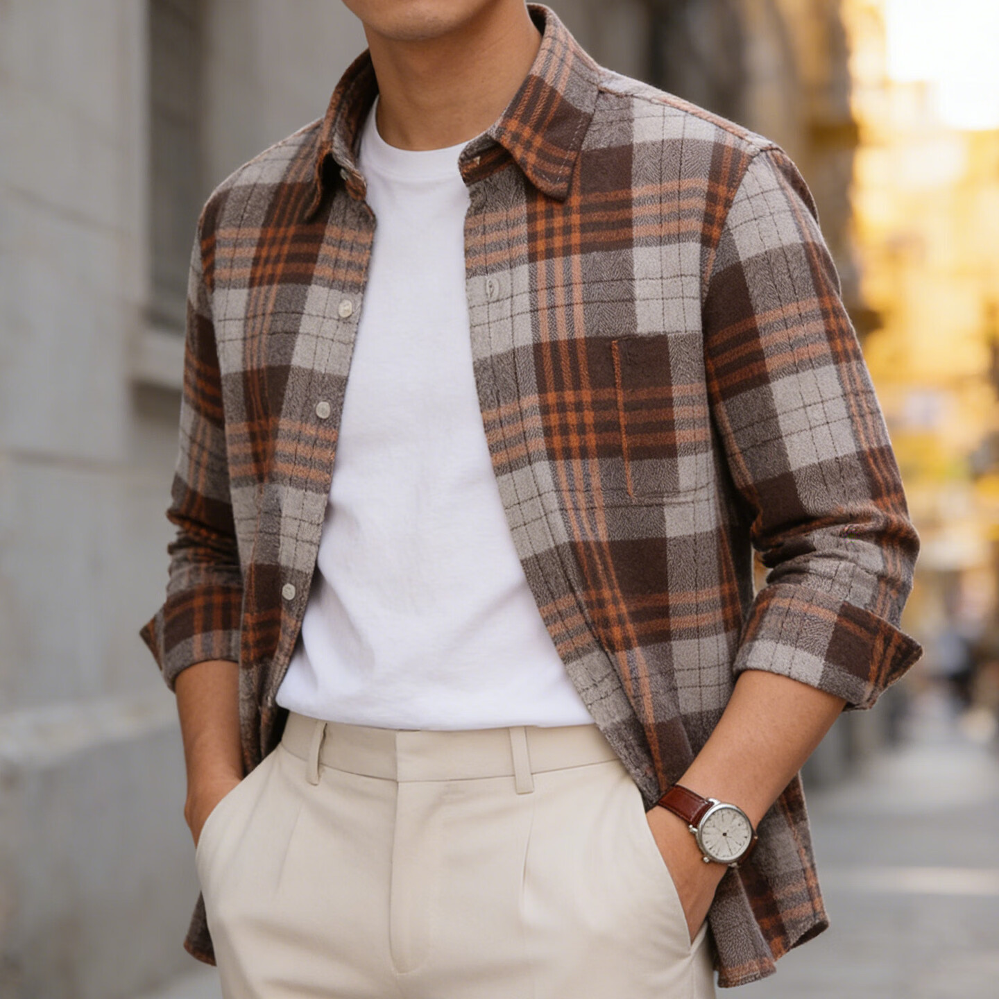 JEEP SPIRIT Jeep American plaid shirt men's long-sleeved loose work shirt trendy casual jacket men 2026 spring model brown M