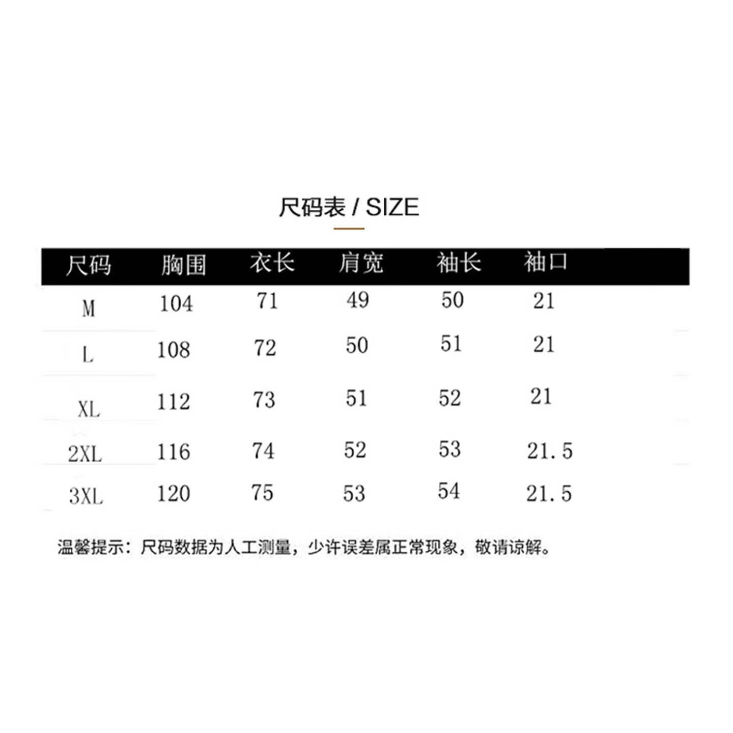 Size (cm) 42 44 46 48 50