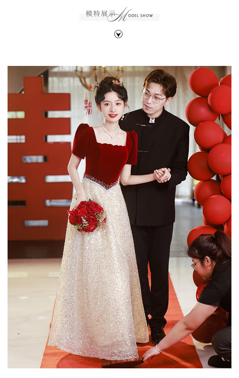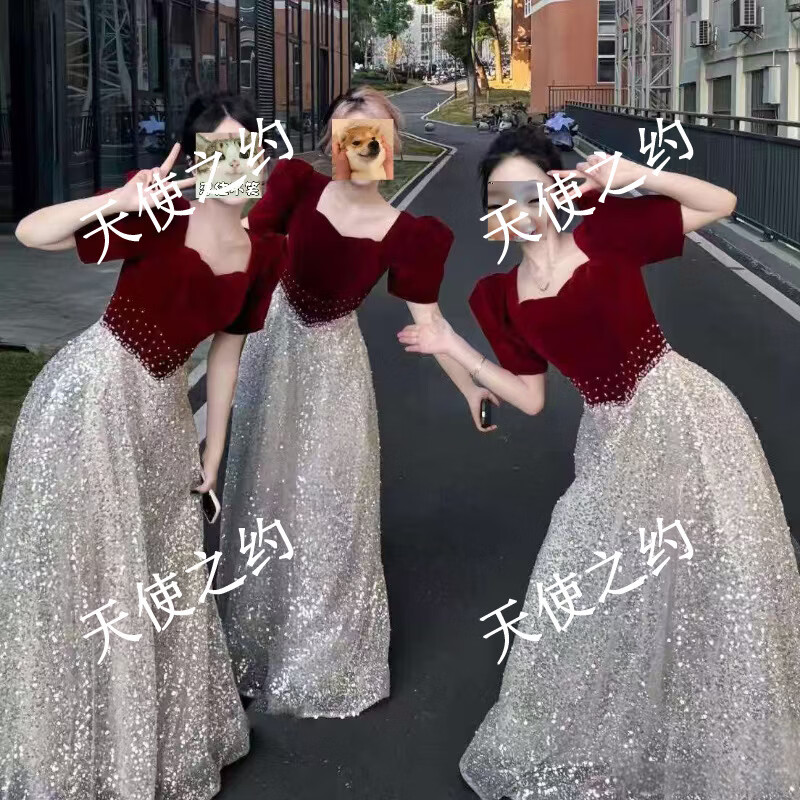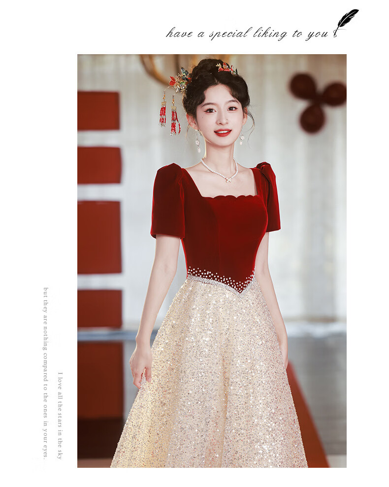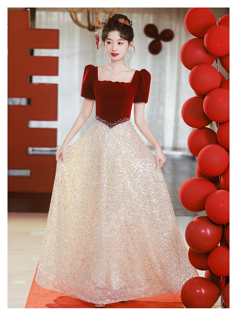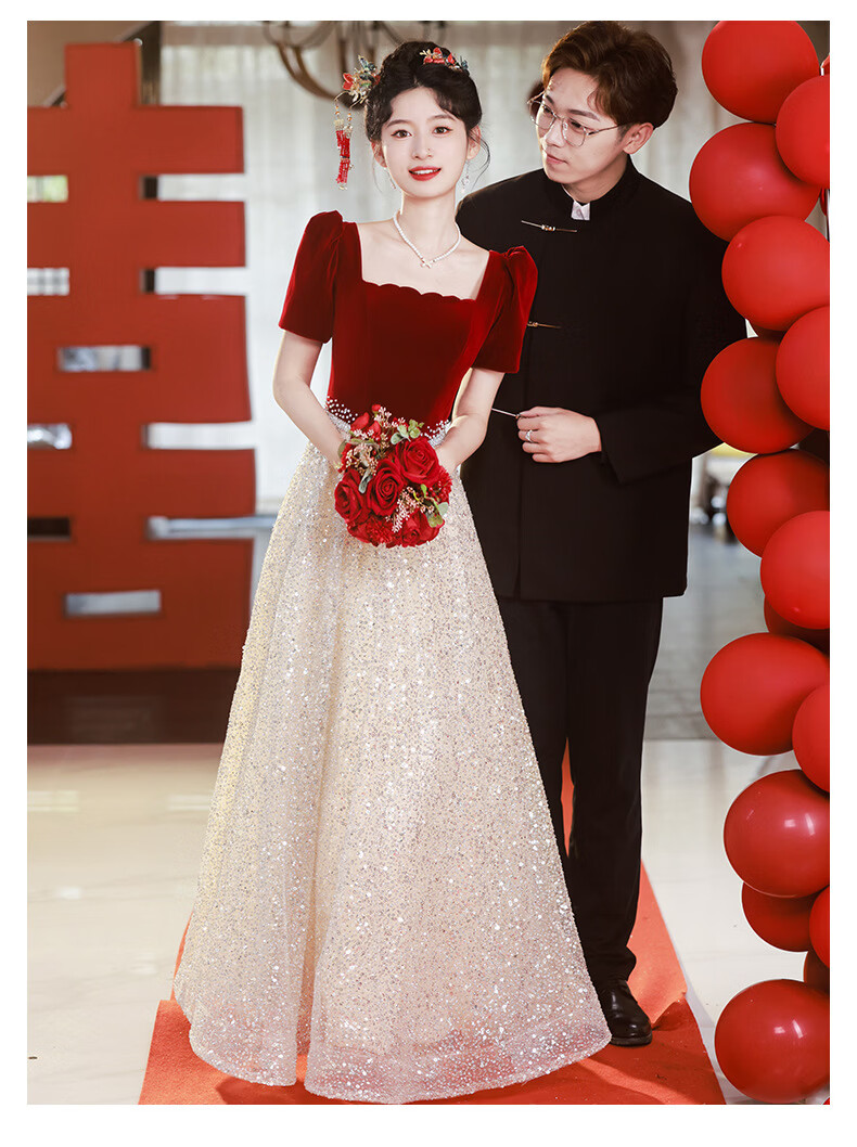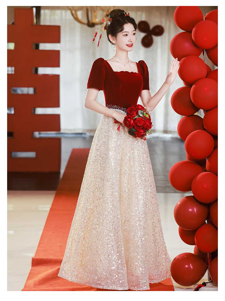 Mofu Toast Wear Bridal 2026 Engagement High-End Atmosphere Sequin Wedding Wedding Day Casual Dress Burgundy Long XS