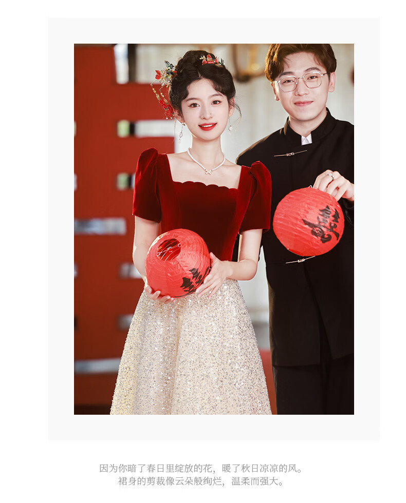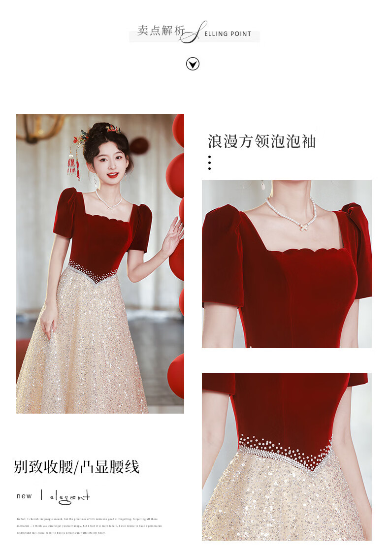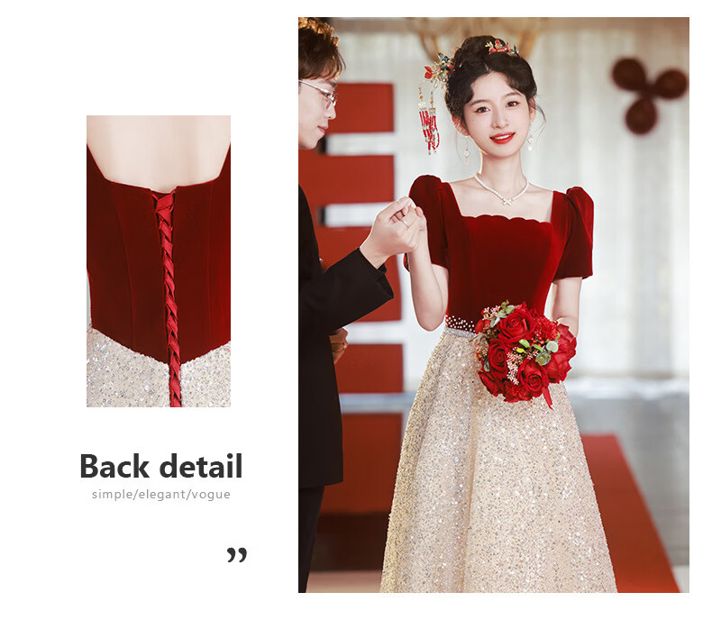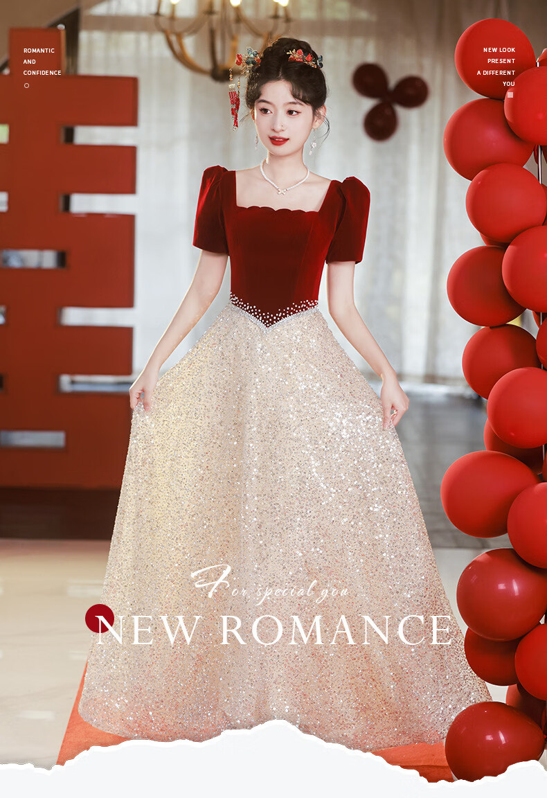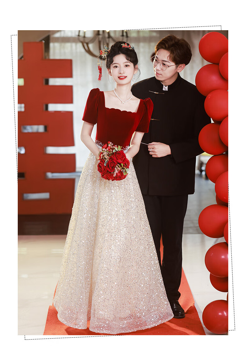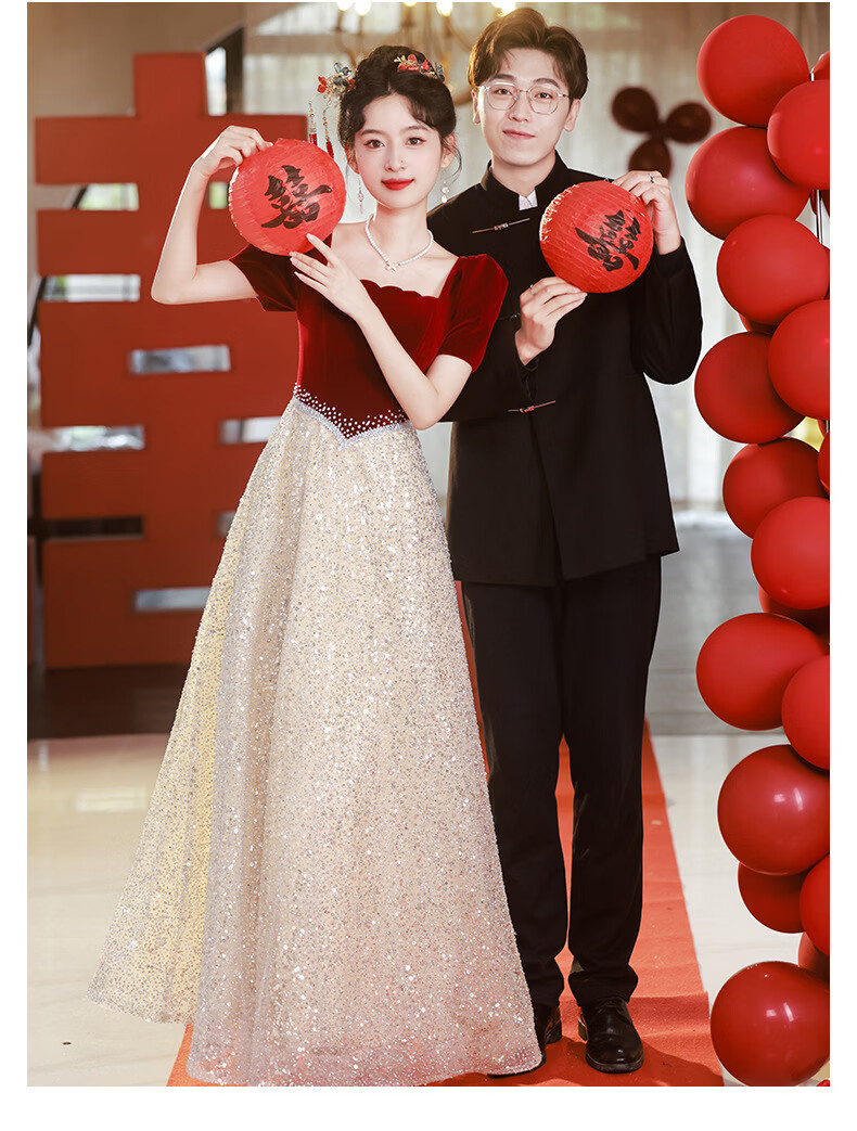 Mofu Toast Wear Bridal 2026 Engagement High-End Atmosphere Sequin Wedding Wedding Day Casual Dress Burgundy Long XS