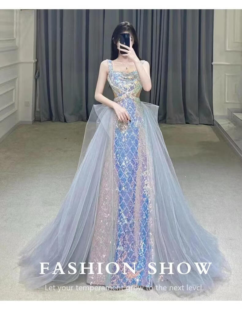 Mofu Banquet Evening Dress 2026 Suspender Mermaid Girl Sequins Socialite Party Performance Host Dress Dress Mermaid Girl XS