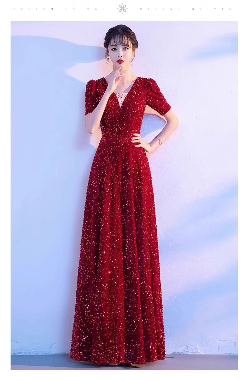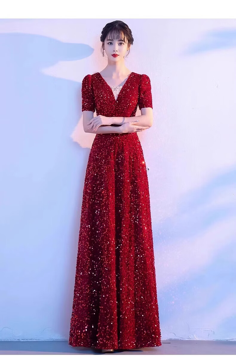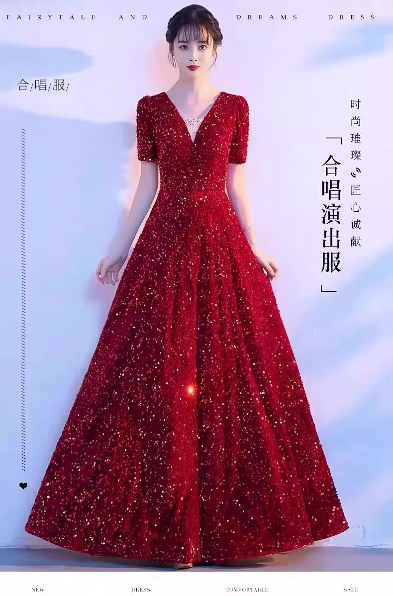 Mofu burgundy cantata costume for women, long skirt, singing red song dress, choir costume, competition conductor performance costume, red XS
