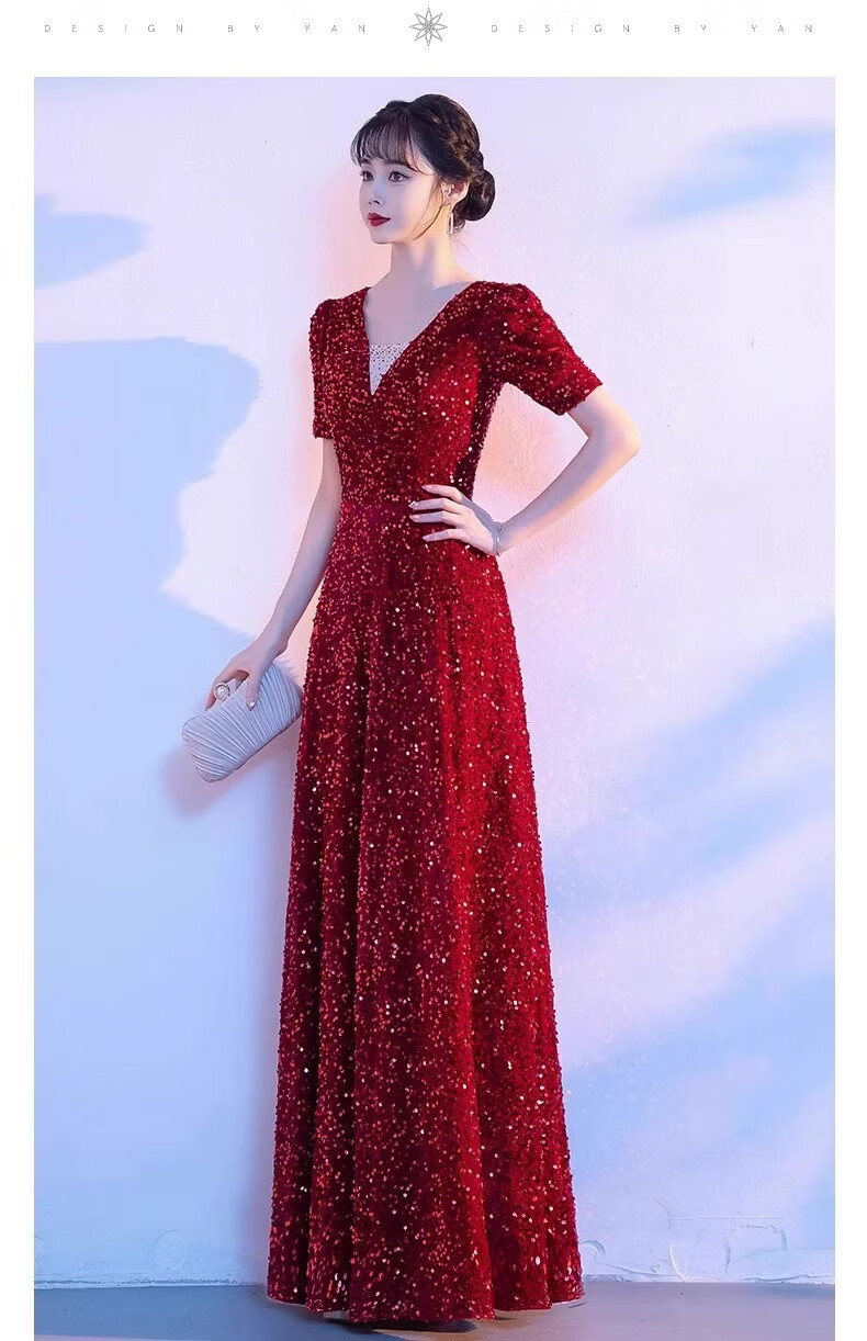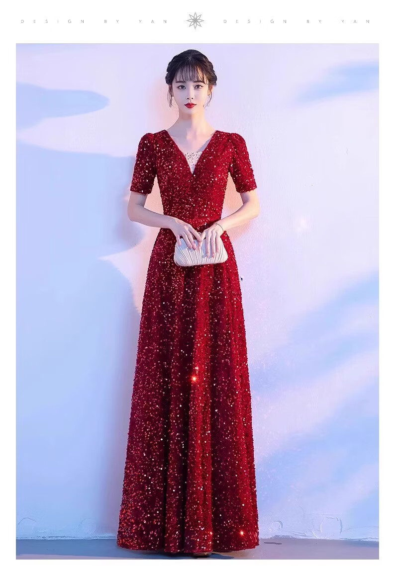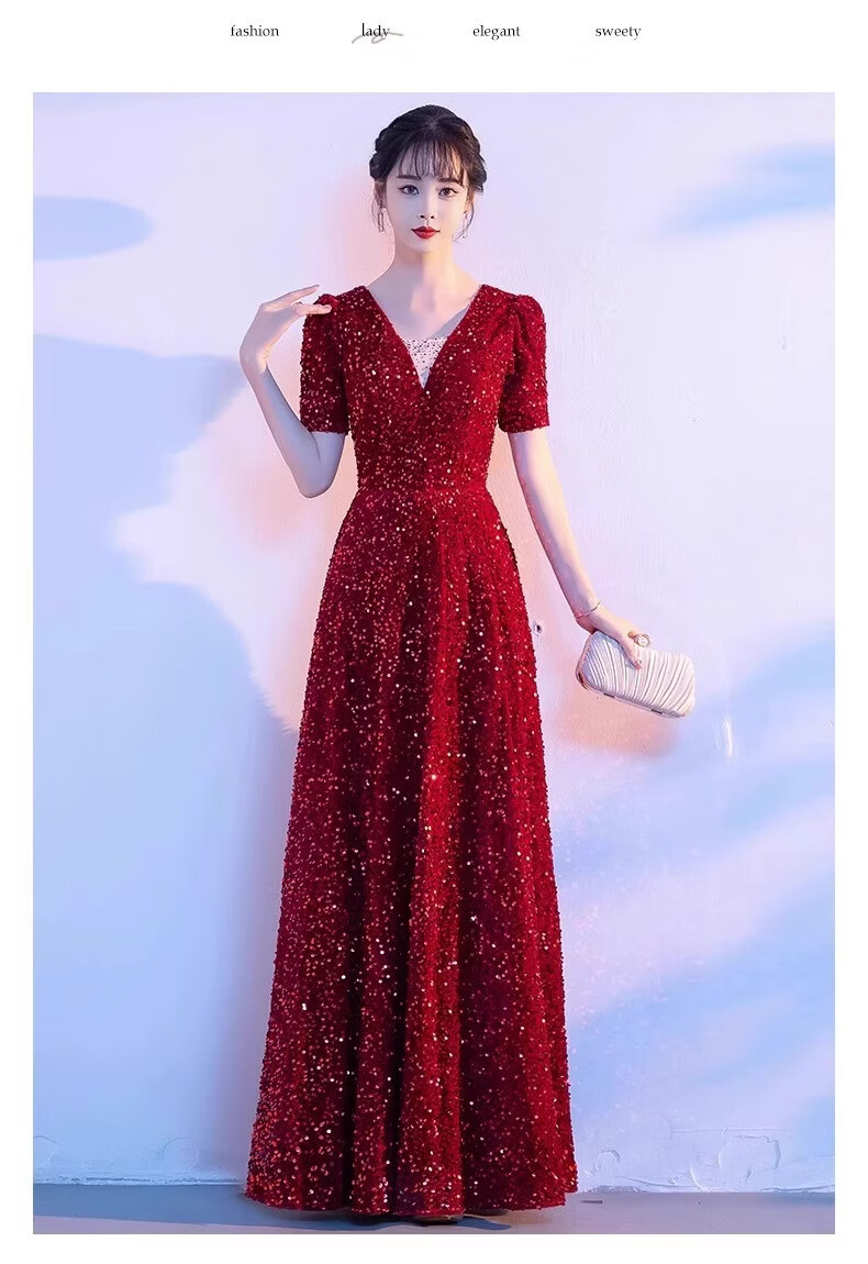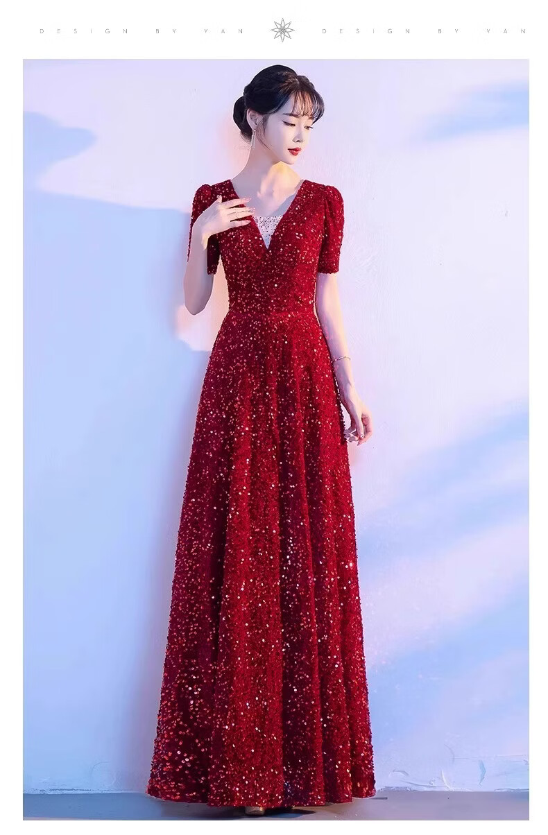 Mofu burgundy cantata costume for women, long skirt, singing red song dress, choir costume, competition conductor performance costume, red XS