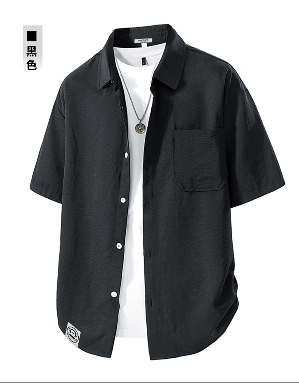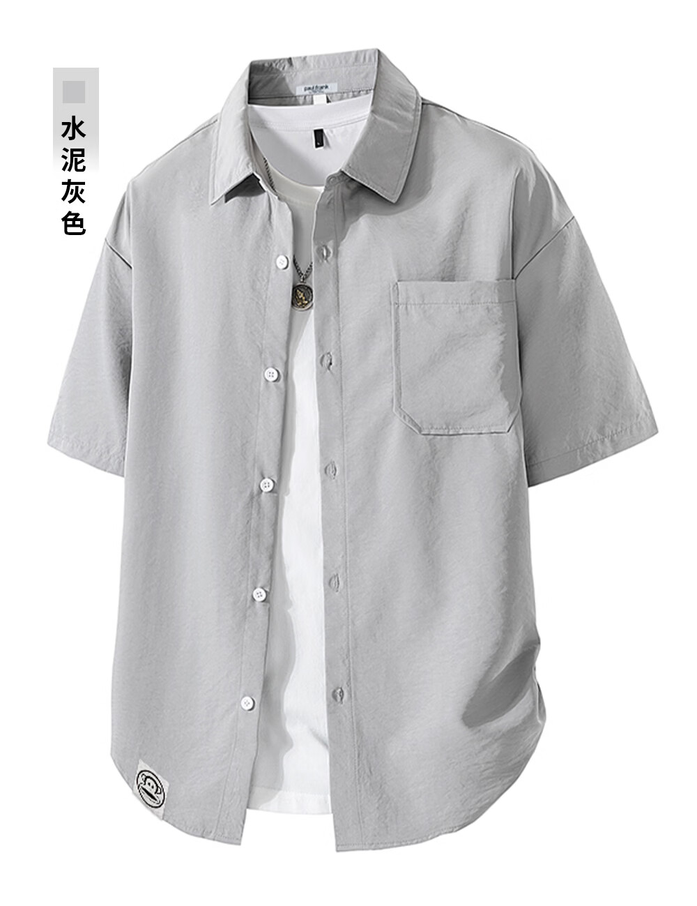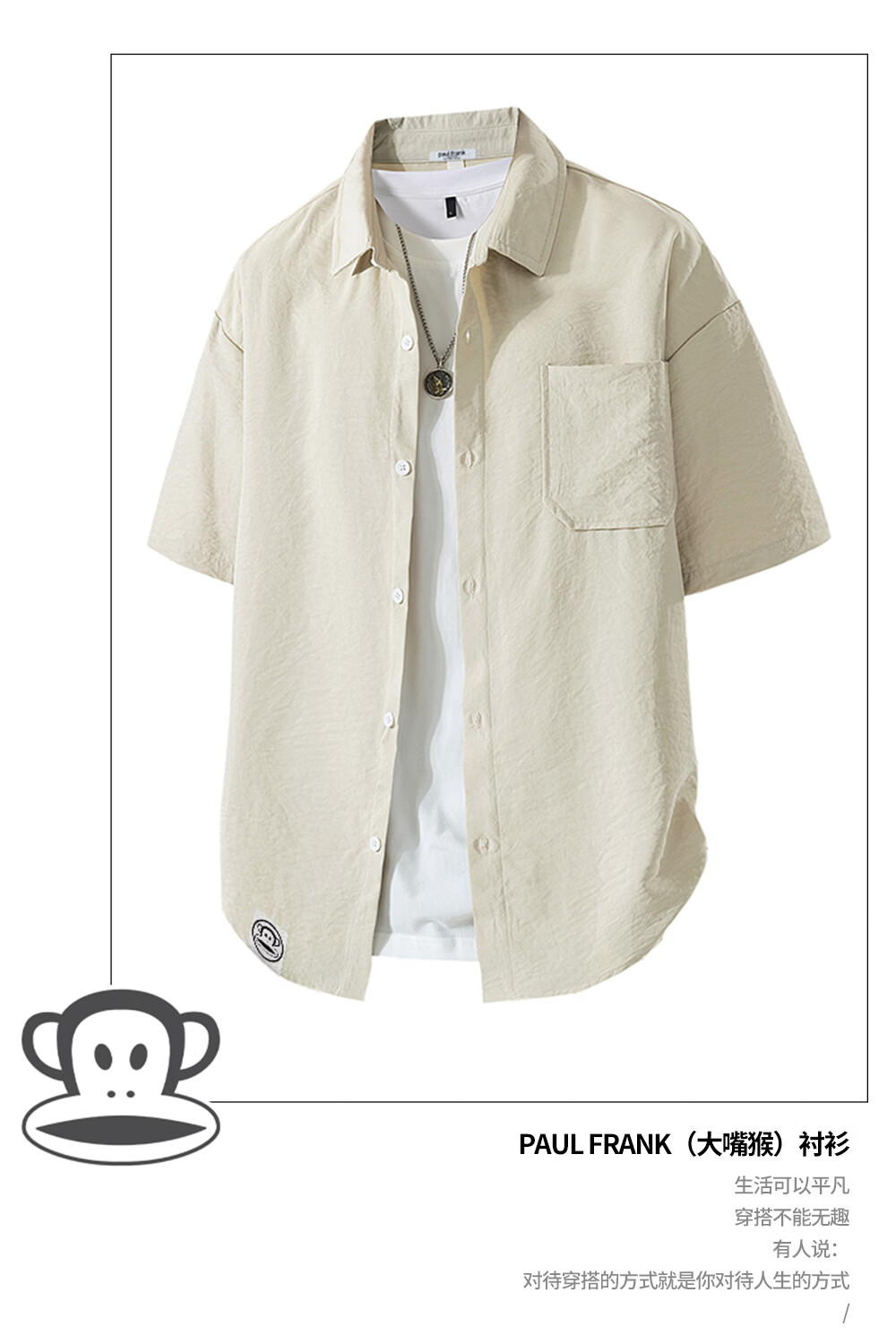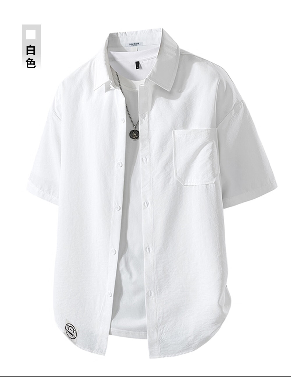Big mouth monkey (paul frank) loose lapel short-sleeved shirt men's summer new trendy brand casual versatile solid color simple and comfortable shirt jacket white official authentic 3XL recommended 160-175Jin Jin equals 0.5 kg
