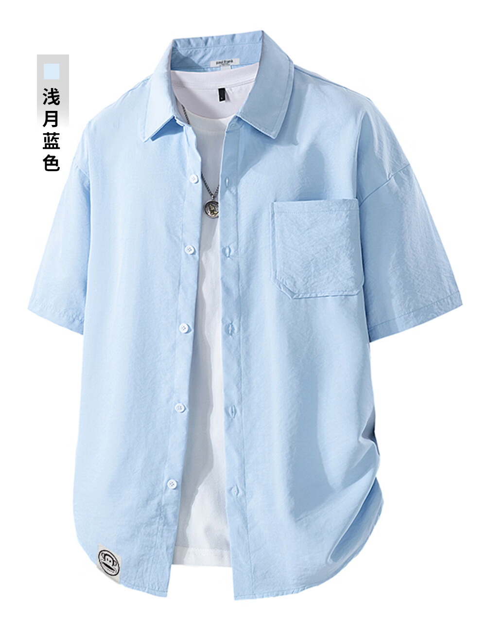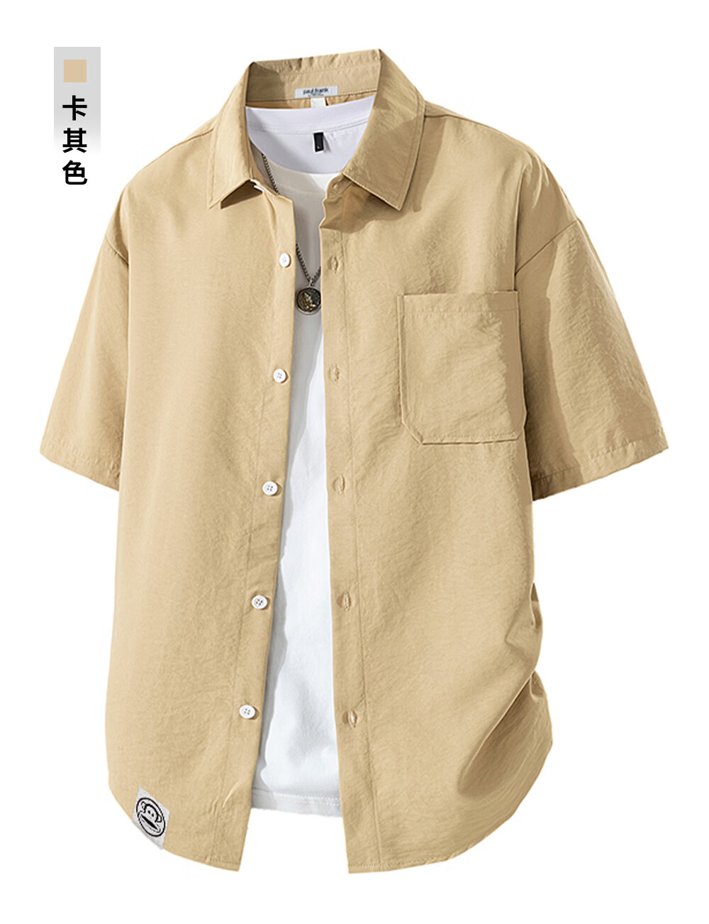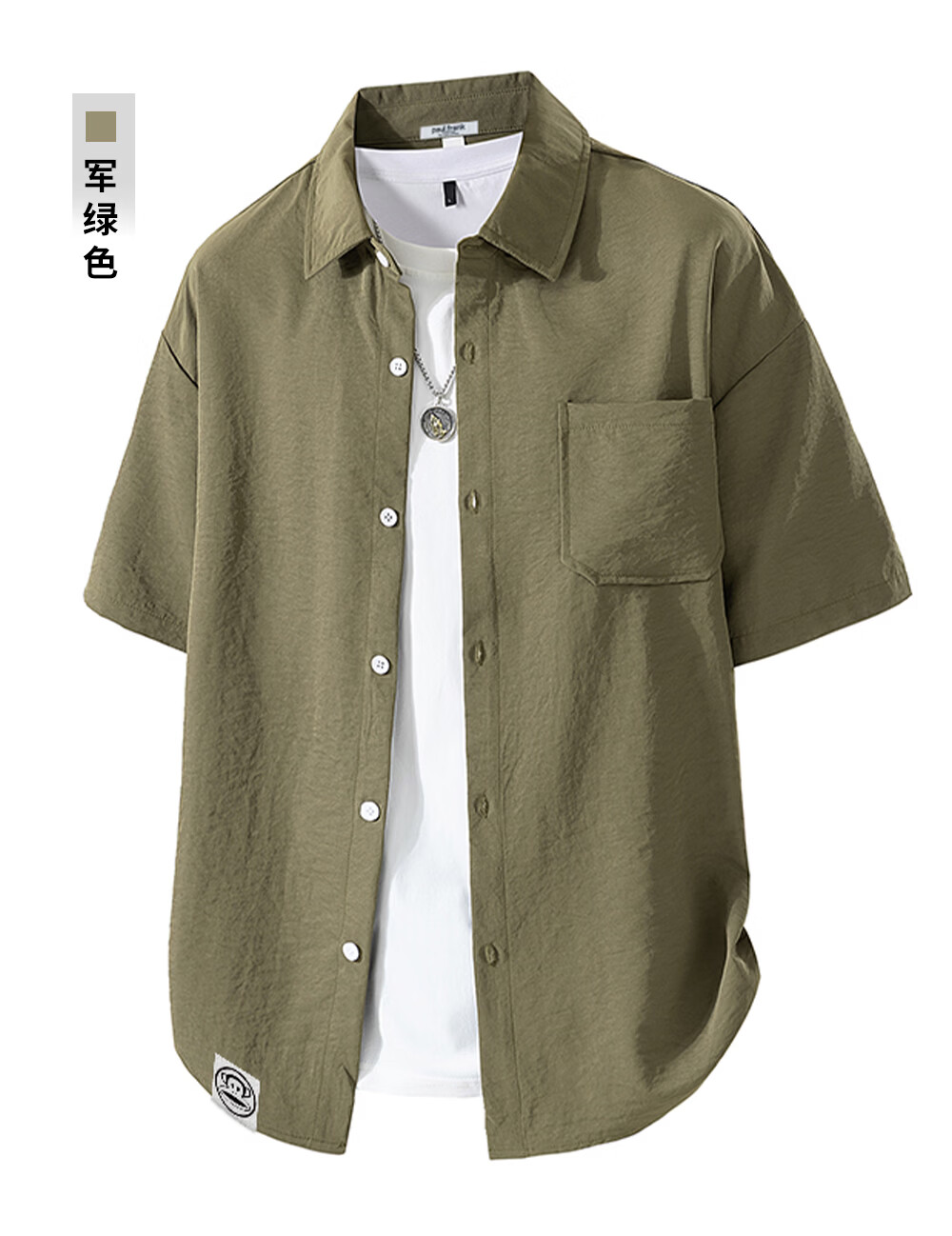 Big mouth monkey (paul frank) loose lapel short-sleeved shirt men's summer new trendy brand casual versatile solid color simple and comfortable shirt jacket white official authentic 3XL recommended 160-175Jin Jin equals 0.5 kg
