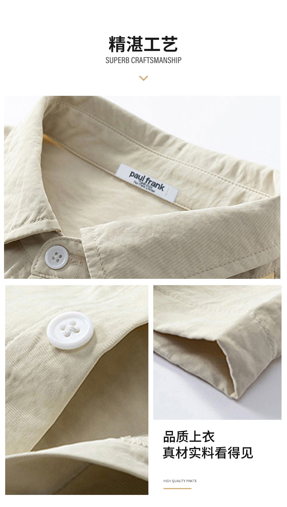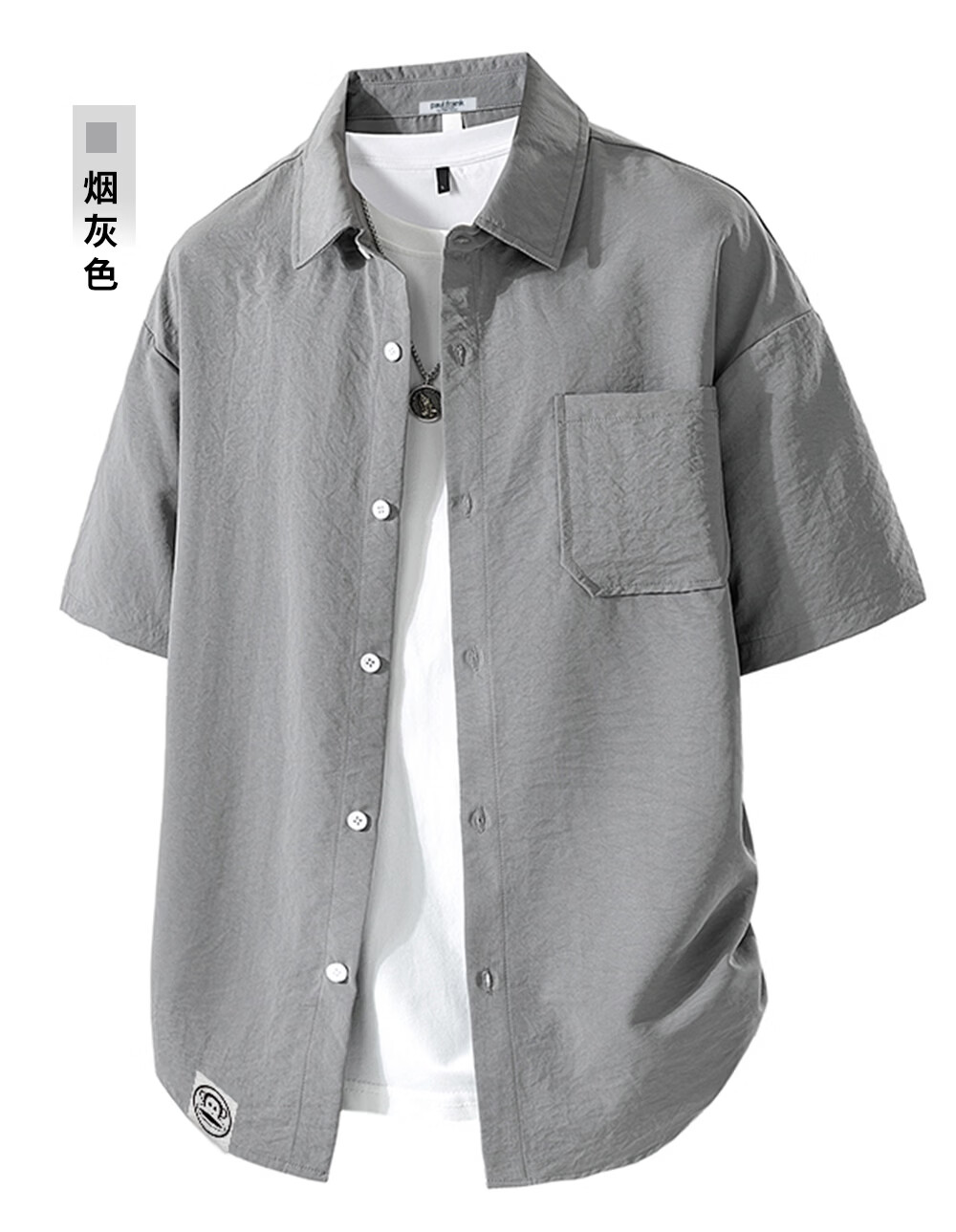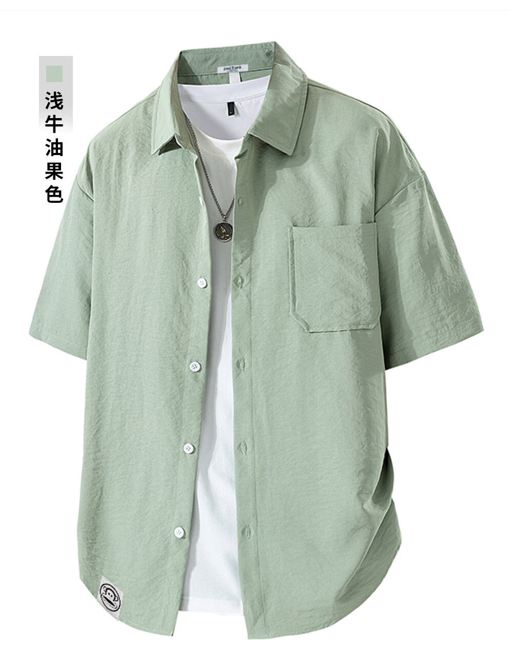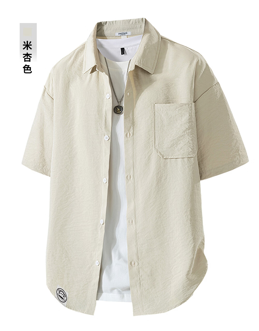 Big mouth monkey (paul frank) loose lapel short-sleeved shirt men's summer new trendy brand casual versatile solid color simple and comfortable shirt jacket white official authentic 3XL recommended 160-175Jin Jin equals 0.5 kg