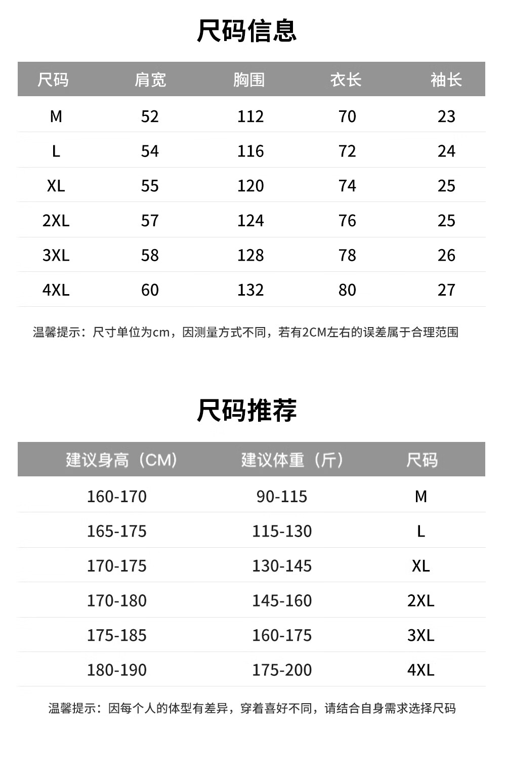 China (cm) 160-165/84-86 165-170 / 88-90 167-172 / 92-96 168-173 / 98-102 170-176 / 106-110