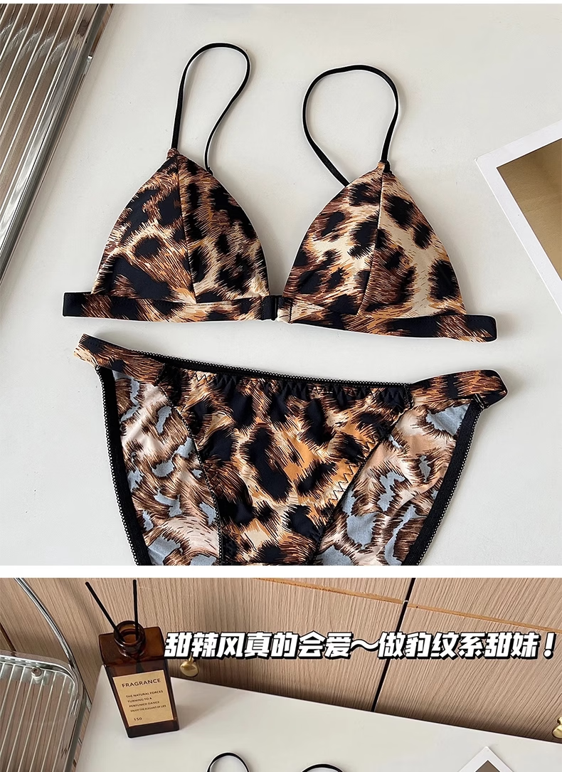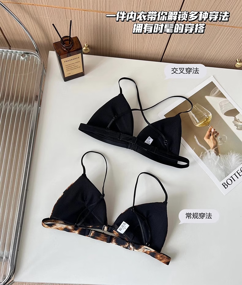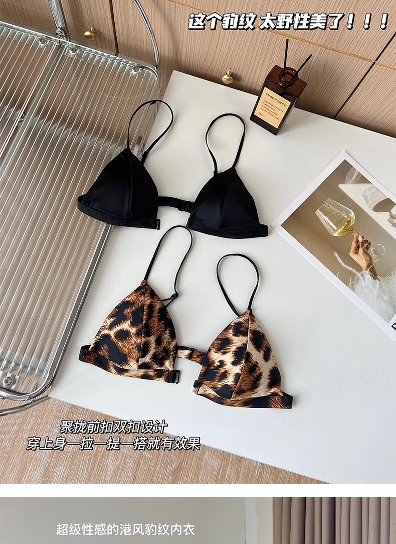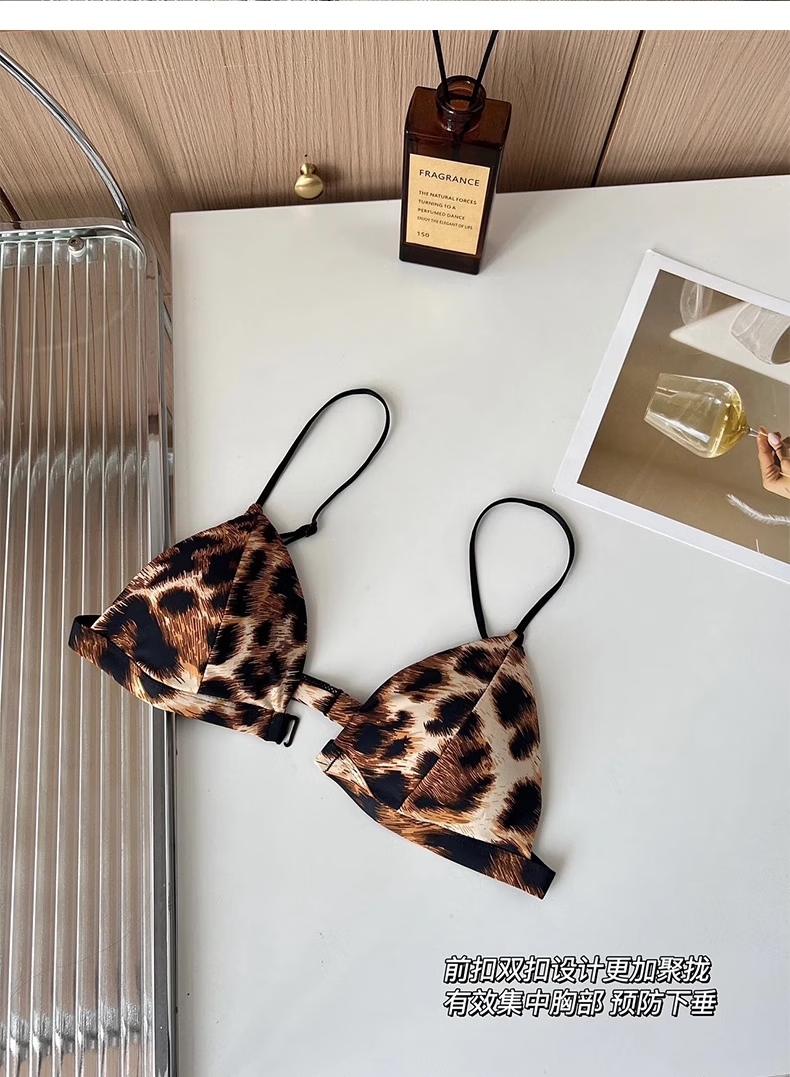 SONDR Leopard Print French Triangular Cup Underwear Women's Small Breast Gathering Big Front Button Sexy Cross Beautiful Back Bra Set Summer Leopard Print Single Piece S 32/70AB