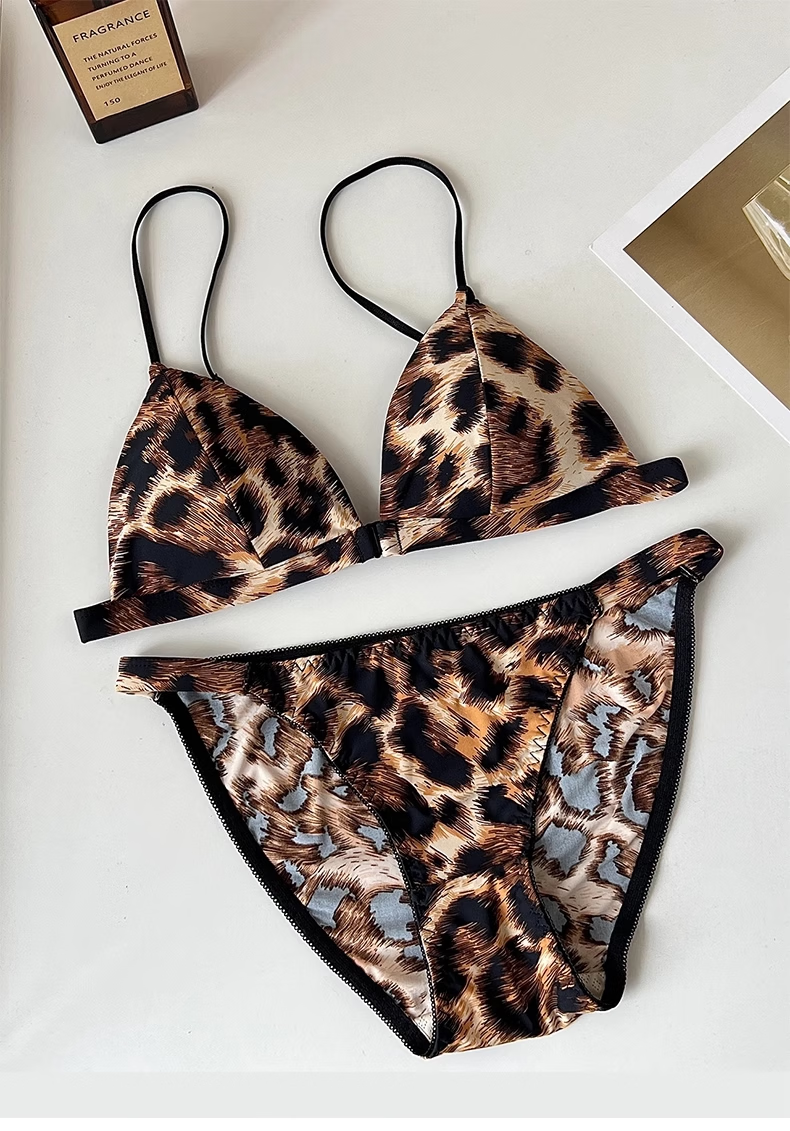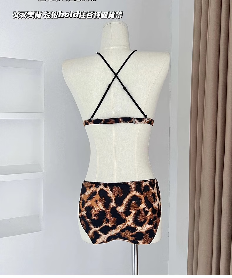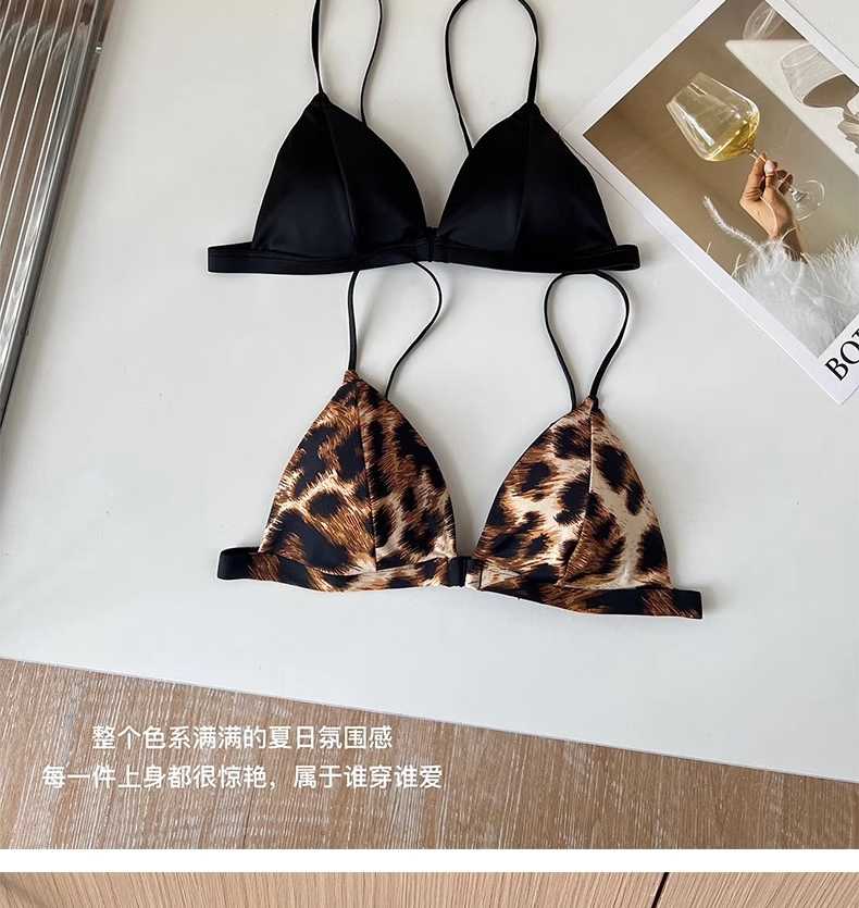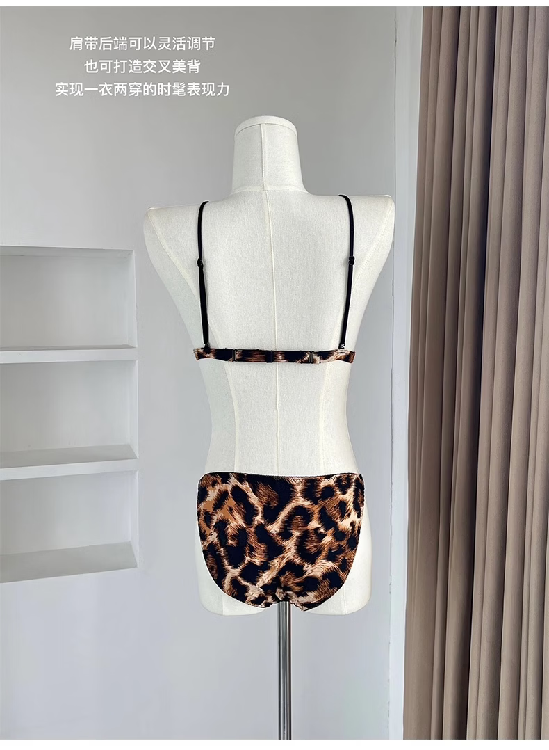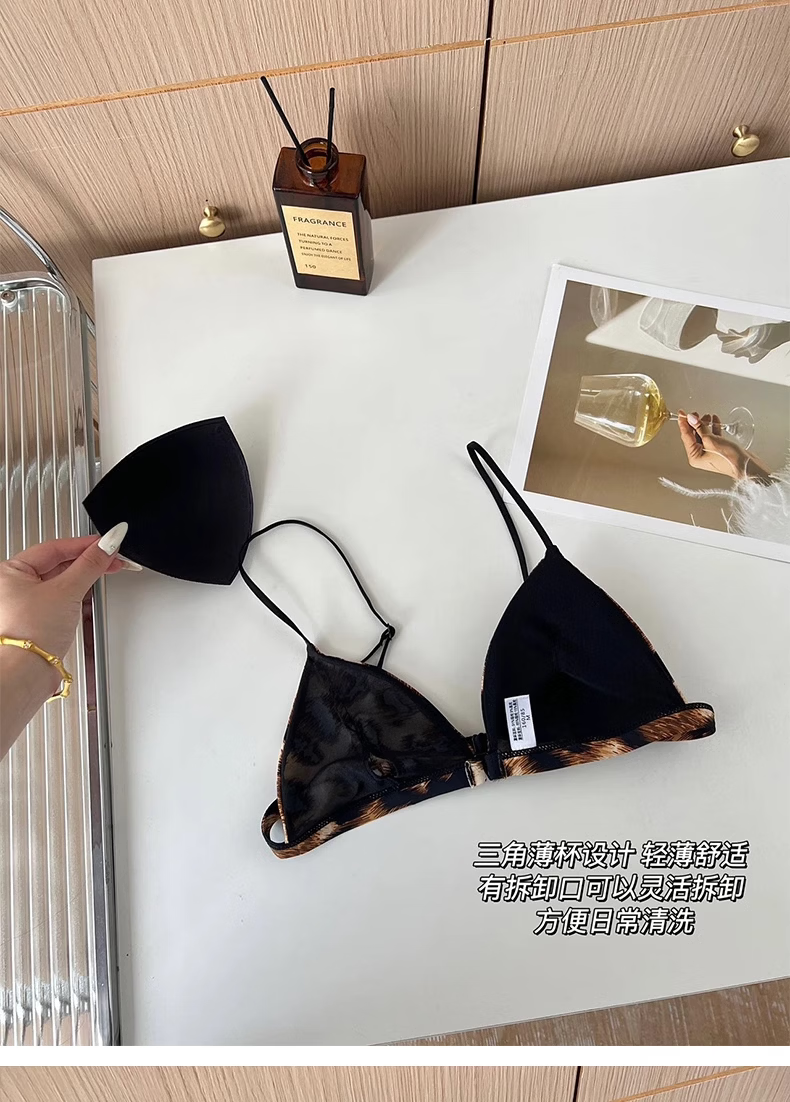 SONDR Leopard Print French Triangular Cup Underwear Women's Small Breast Gathering Big Front Button Sexy Cross Beautiful Back Bra Set Summer Leopard Print Single Piece S 32/70AB