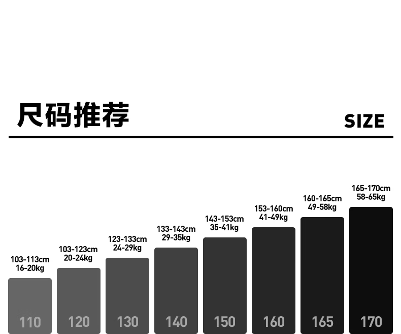 China (cm) 165 / 88-90 170 / 96-98 175 / 108-110 180 / 118-122 185 / 126-130