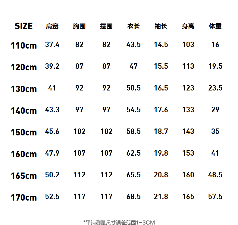 China (cm) 160-165/84-86 165-170 / 88-90 167-172 / 92-96 168-173 / 98-102 170-176 / 106-110
