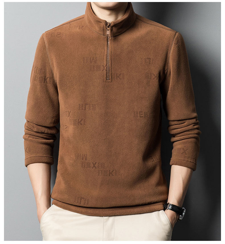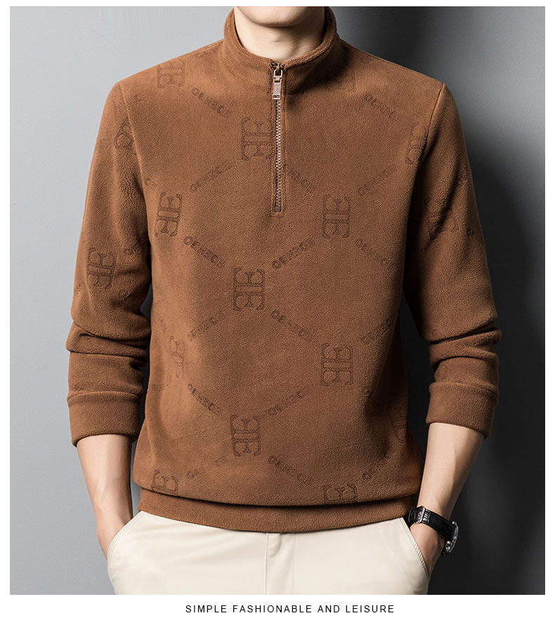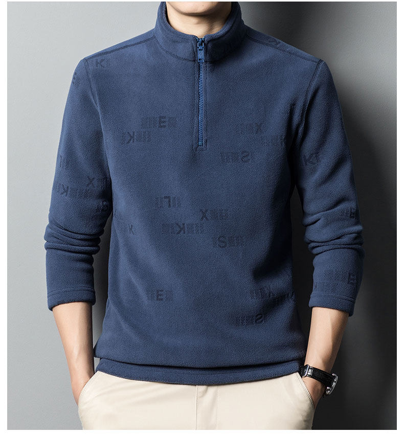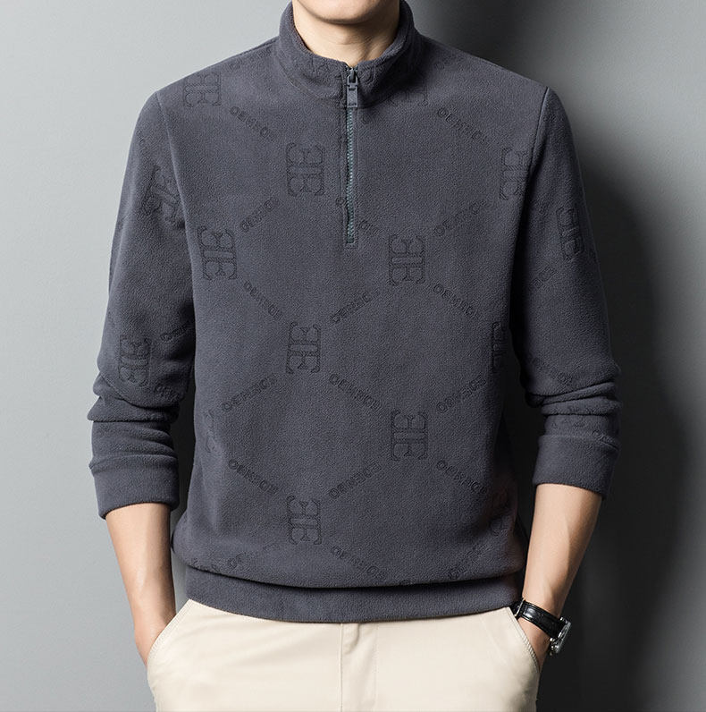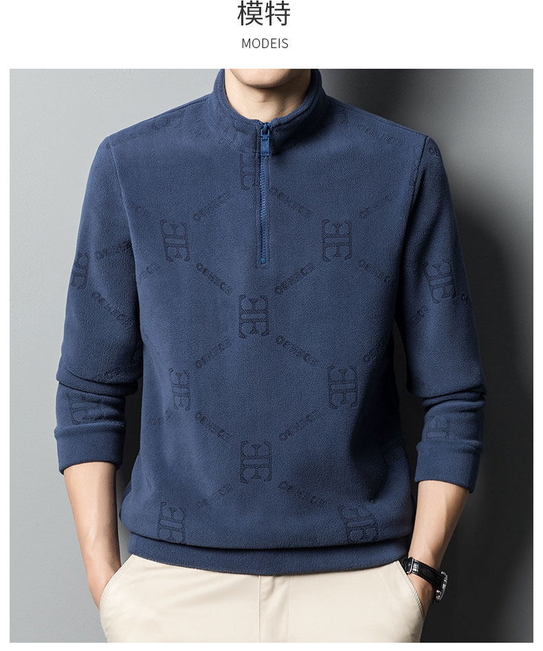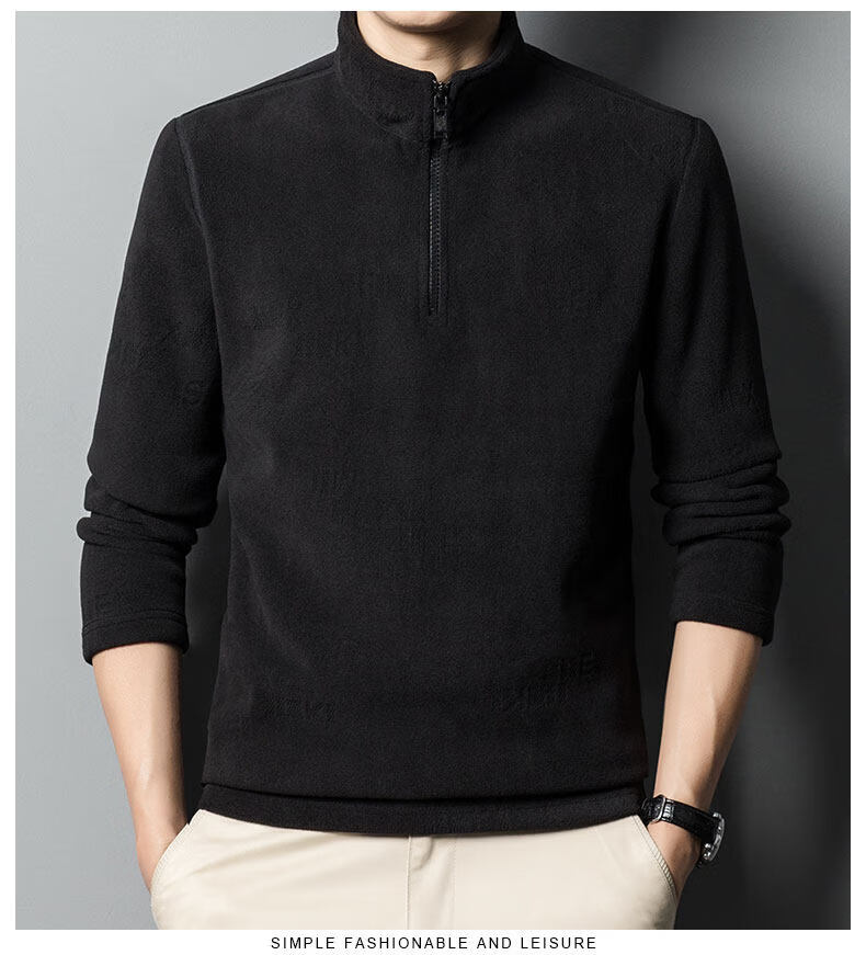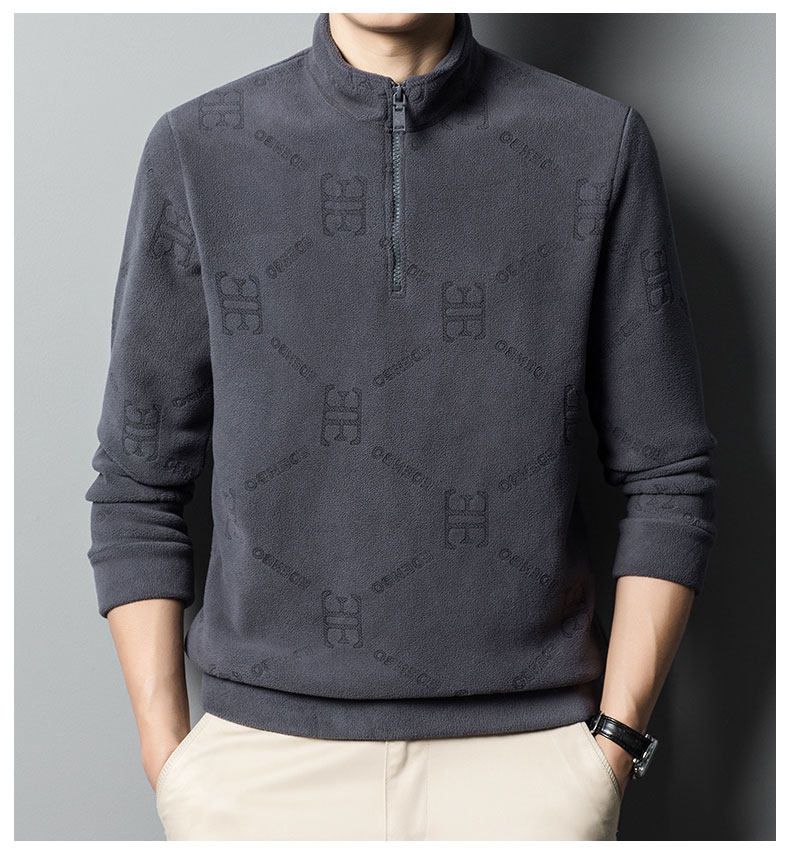 GUMALA brand stand collar half-zip sweatshirt for men spring and autumn new polar fleece top plus velvet thickened thermal underwear bottoming shirt gray M