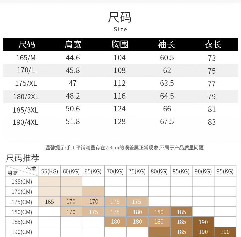 China (cm) 165 / 88-90 170 / 96-98 175 / 108-110 180 / 118-122 185 / 126-130