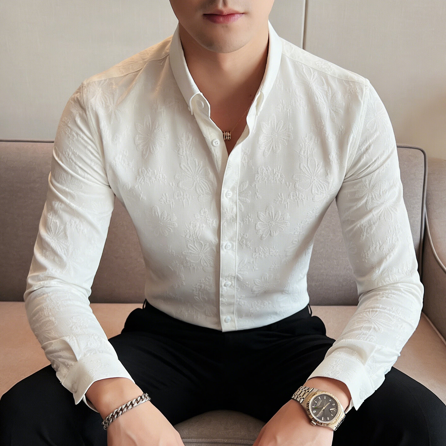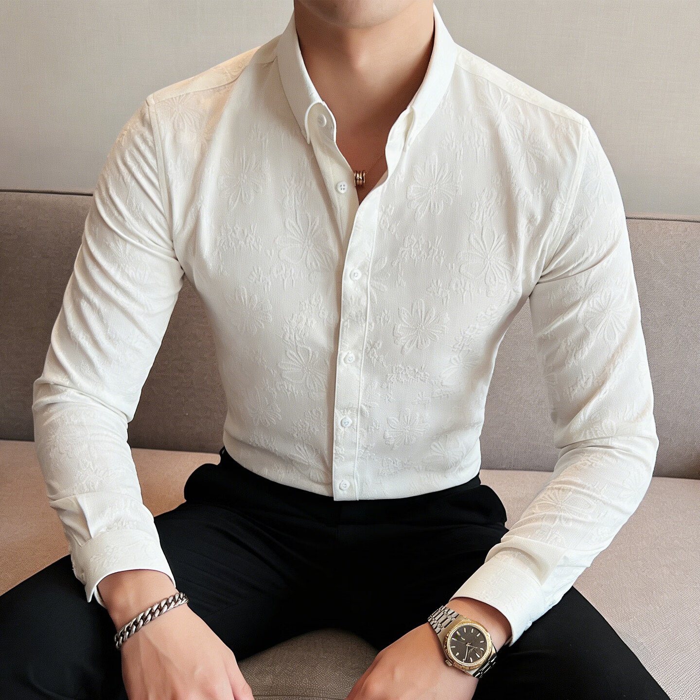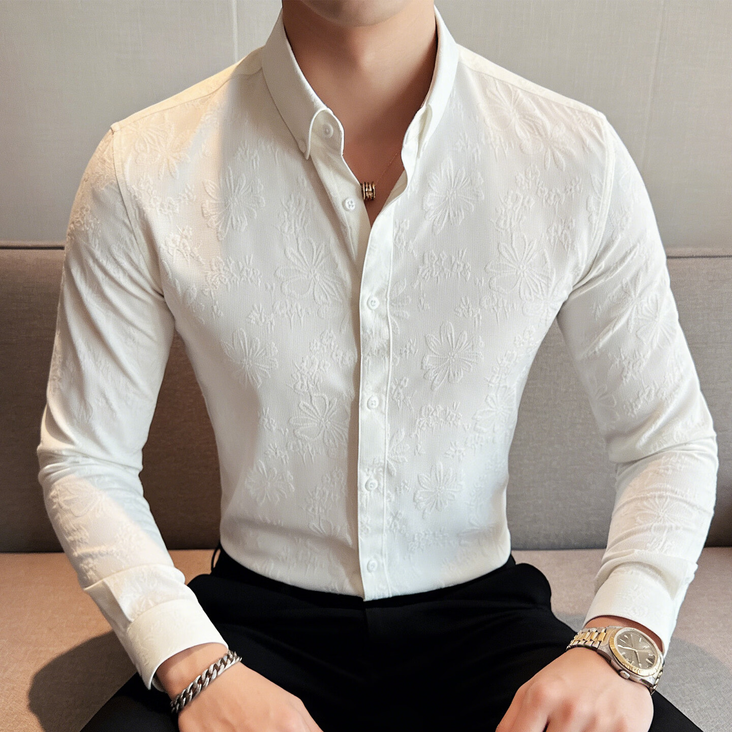 JEEP SPIRIT British style long-sleeved shirt men's business casual shirt slim-fitting non-iron printed top 2026 spring white S