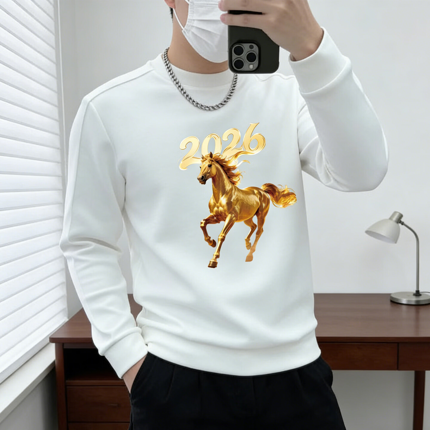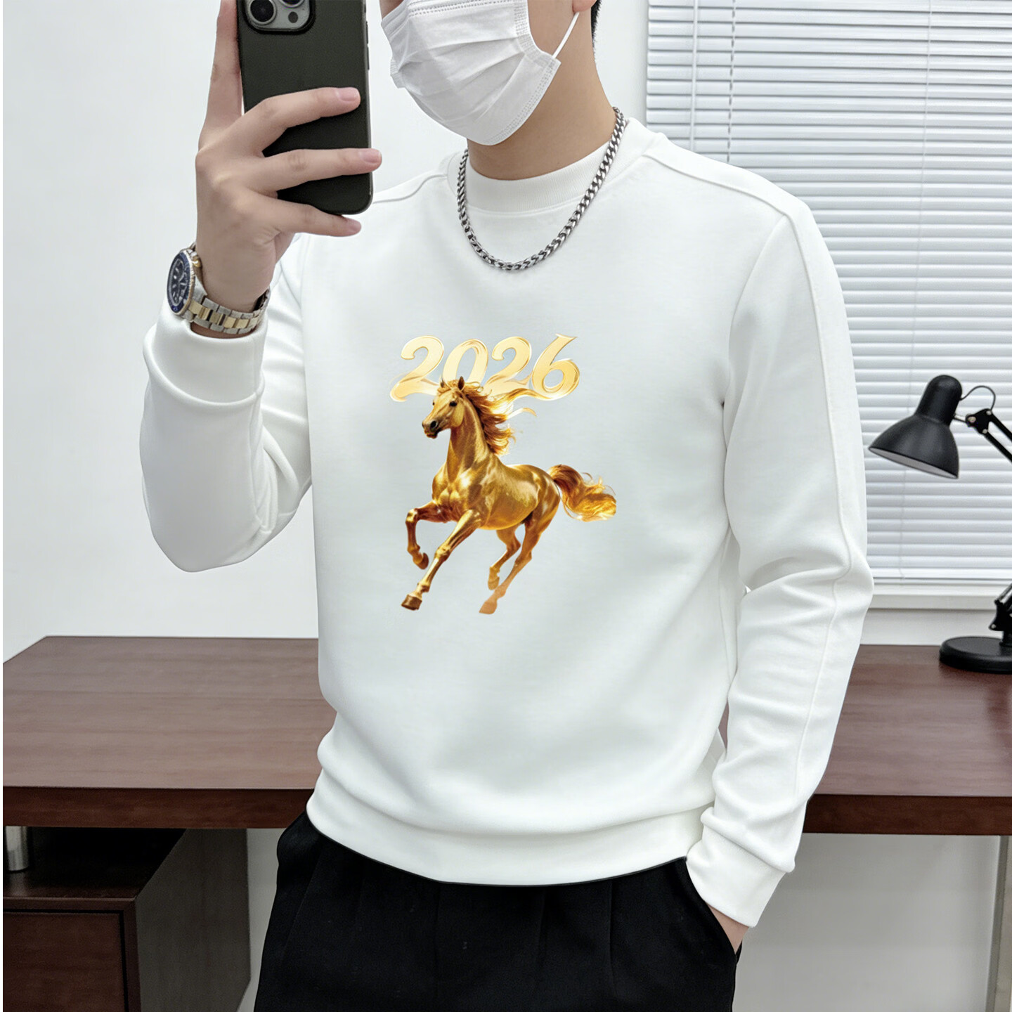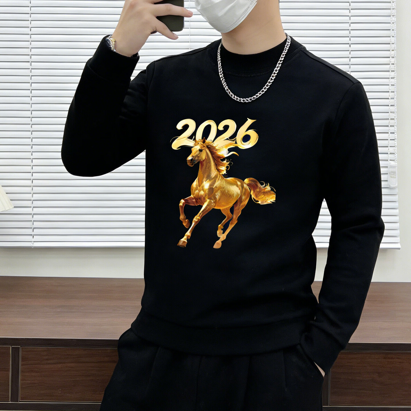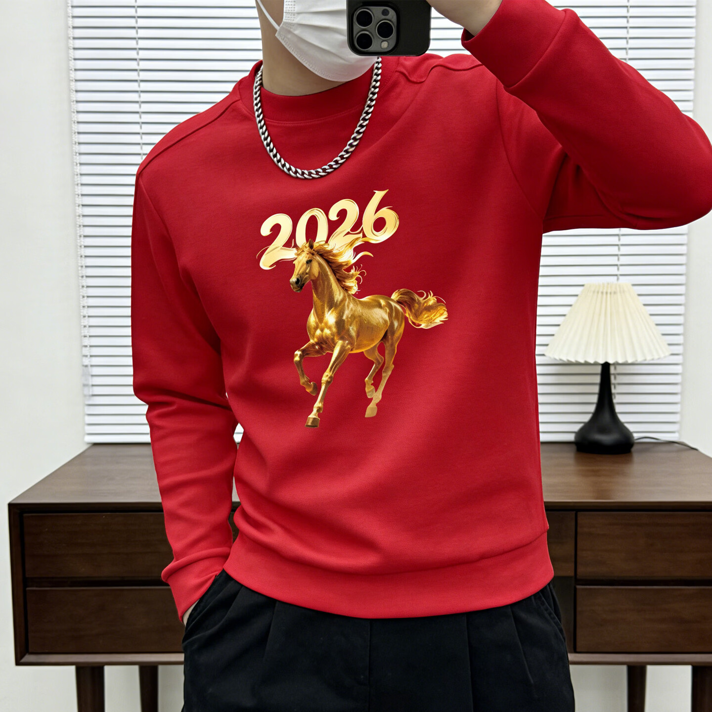 JEEP SPIRIT Jeep round neck sweatshirt men's 2026 new velvet thickened bottoming shirt long-sleeved T-shirt men's animal year red white M 110-125Jin Jin is equal to 0.5 kg
