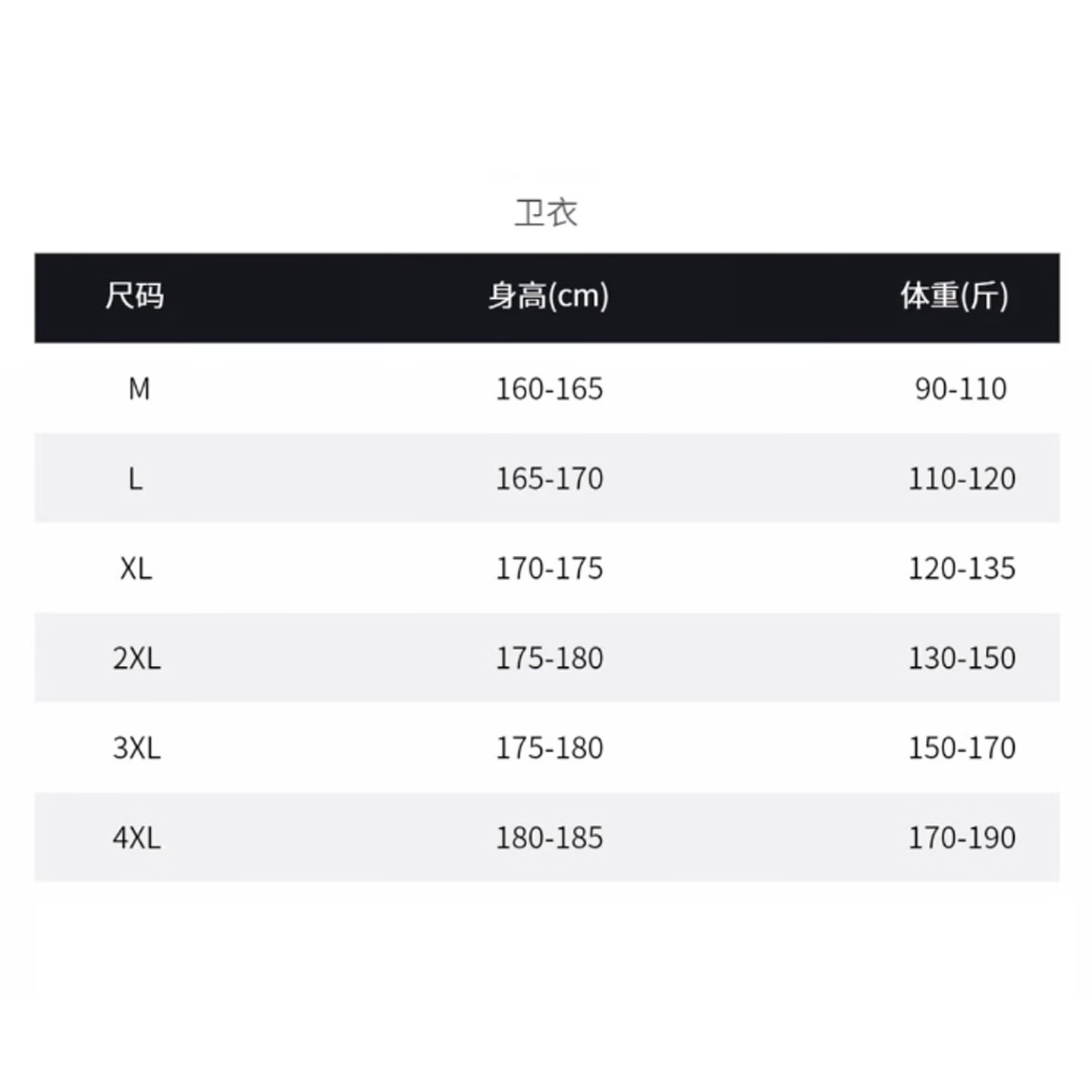 China (cm) 160-165/84-86 165-170 / 88-90 167-172 / 92-96 168-173 / 98-102 170-176 / 106-110