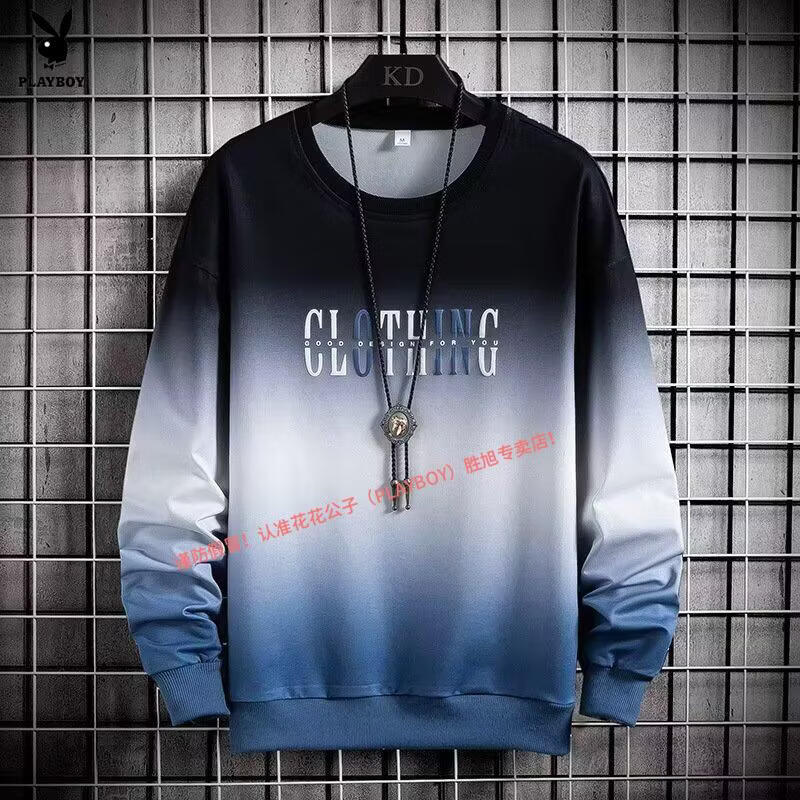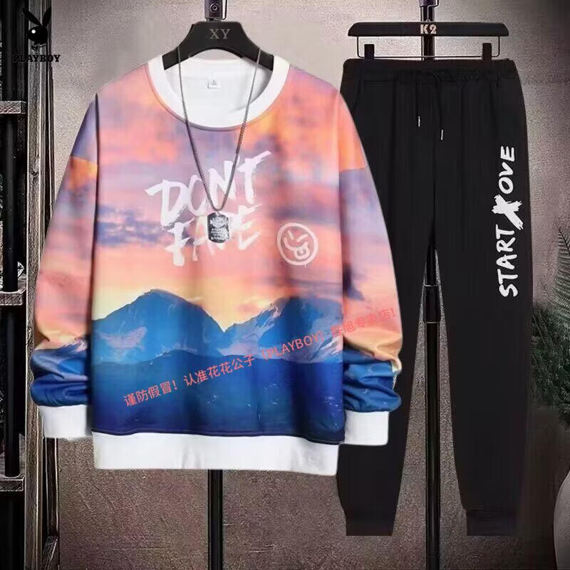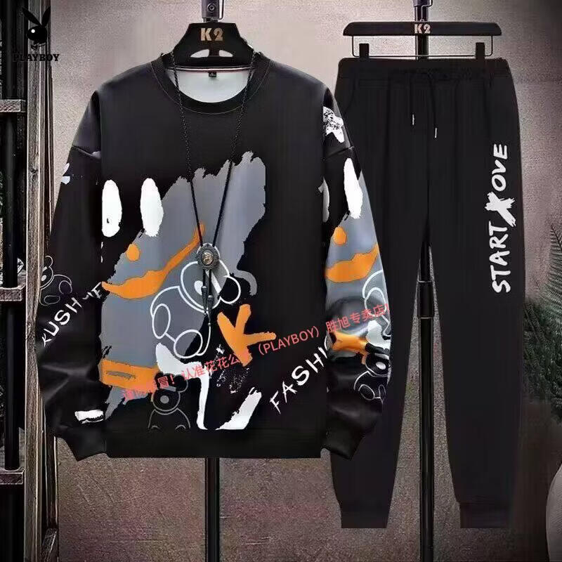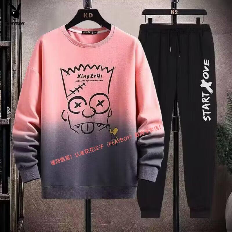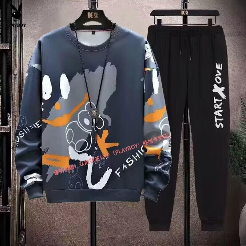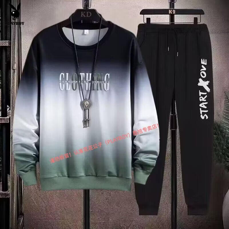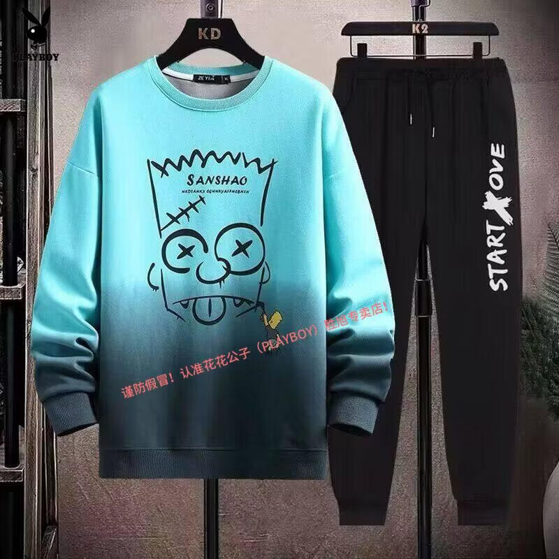 Playboy pure cotton sports suit men's spring and autumn jacket men's casual sweatshirt men's handsome large size youth two-piece set new w92 Chinese white blue + k04 pants S recommended 85-95Jin Jin equals 0.5 kg