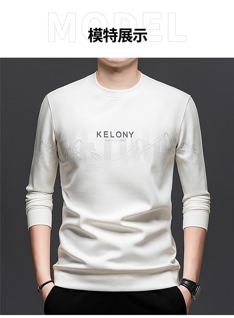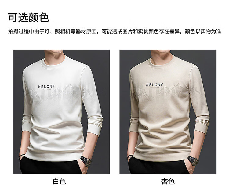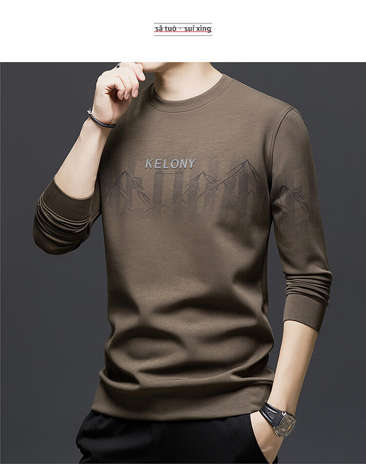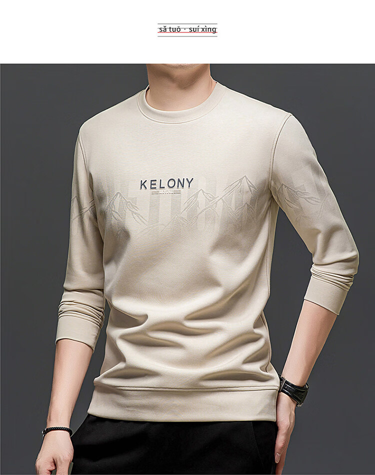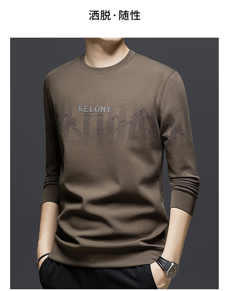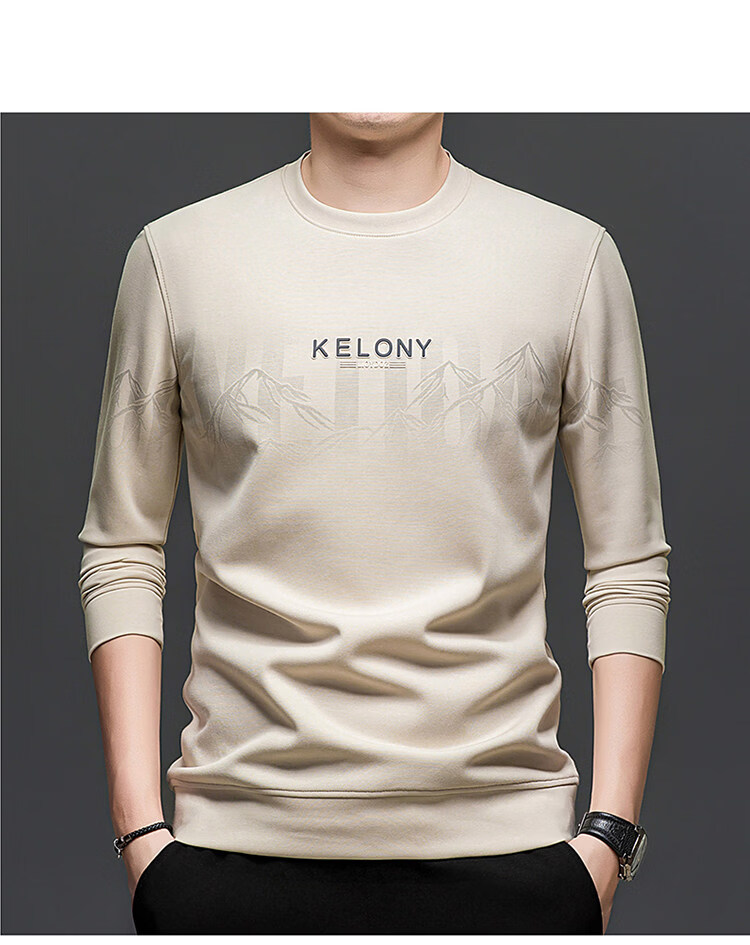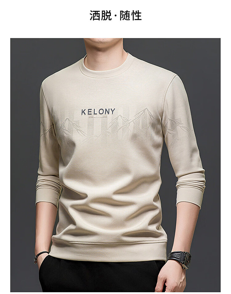 Armani (ARMANI) new Italian long-sleeved T-shirt for men in spring and autumn with cotton letters, middle-aged casual business bottoming shirt, sweatshirt, apricot 2XL 180 recommended weight 160-170Jin Jin equals 0.5 kg