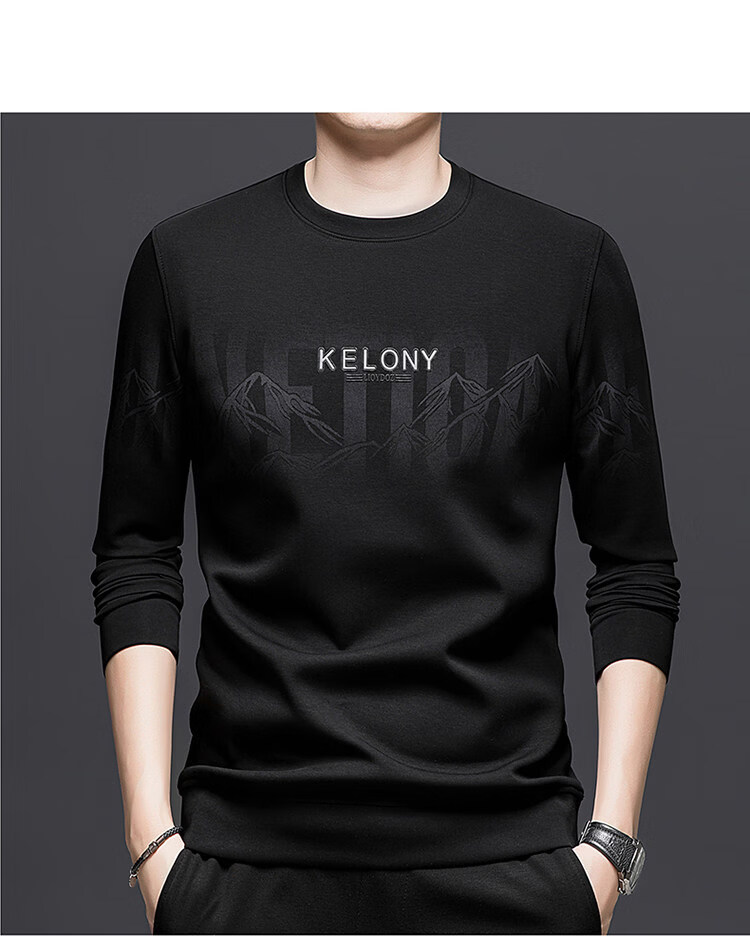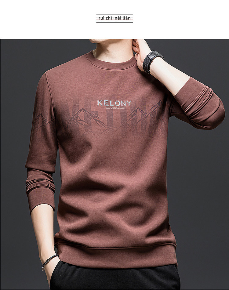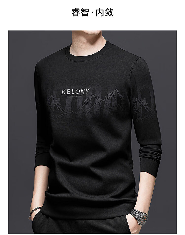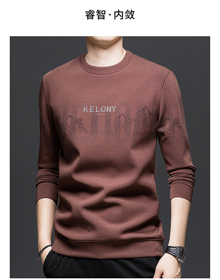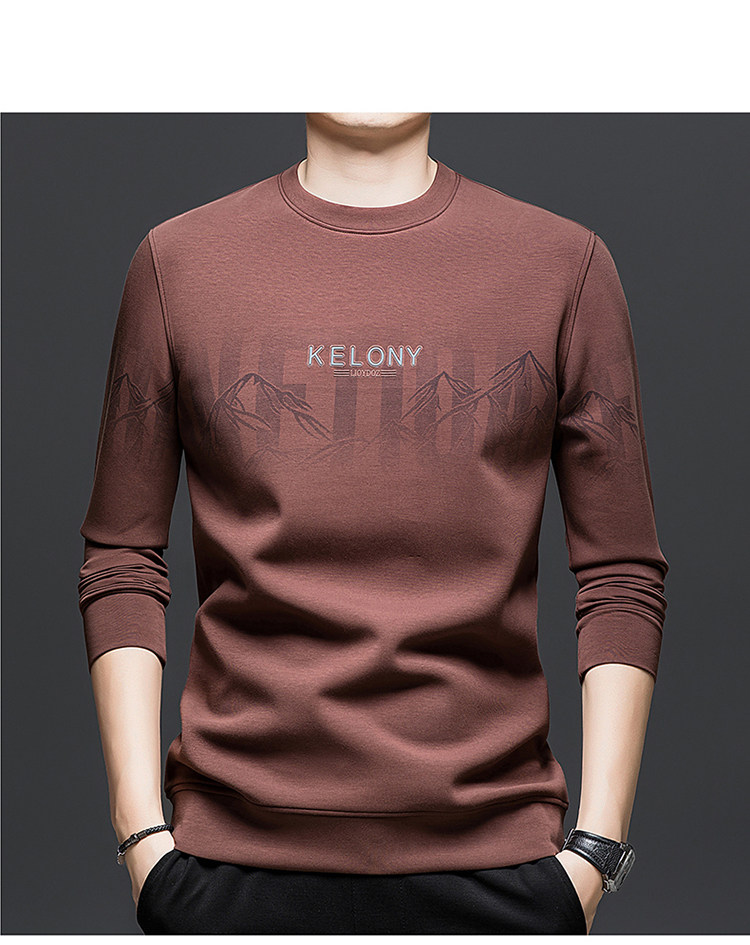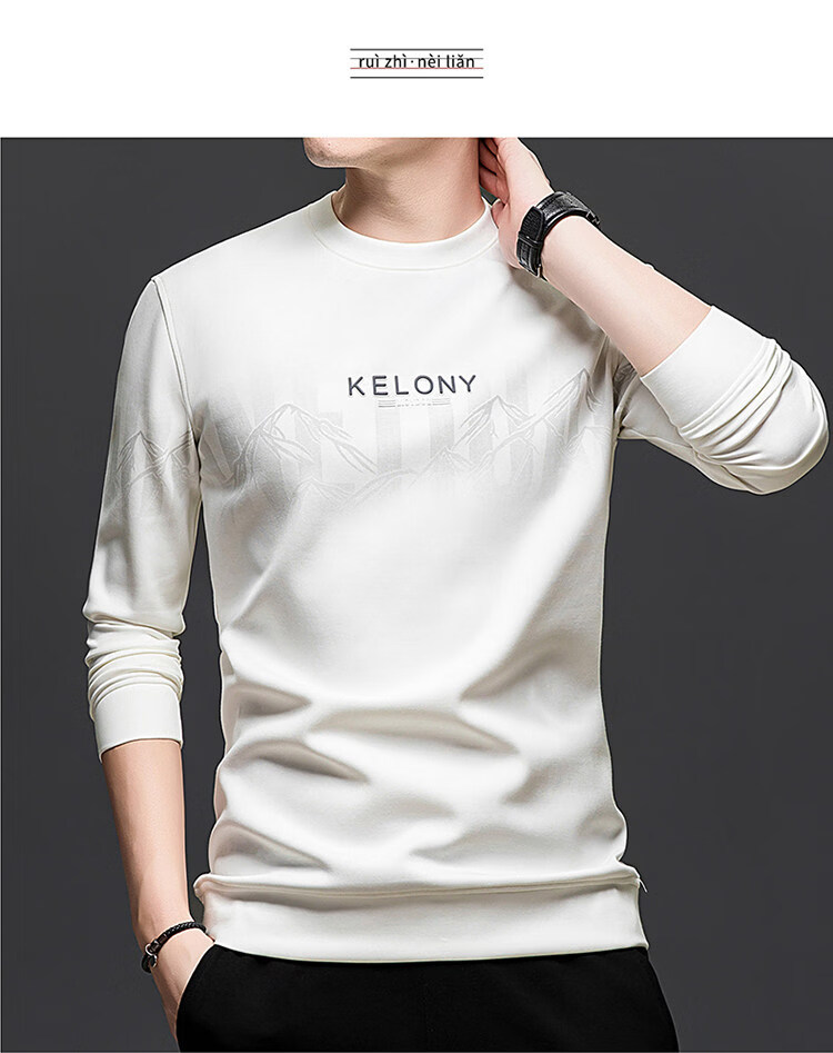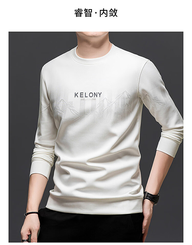 Armani (ARMANI) new Italian long-sleeved T-shirt for men in spring and autumn with cotton letters, middle-aged casual business bottoming shirt, sweatshirt, apricot 2XL 180 recommended weight 160-170Jin Jin equals 0.5 kg