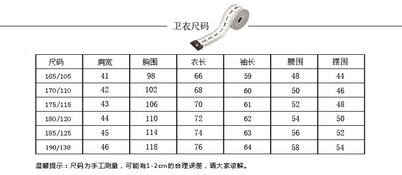 China (cm) 165 / 88-90 170 / 96-98 175 / 108-110 180 / 118-122 185 / 126-130