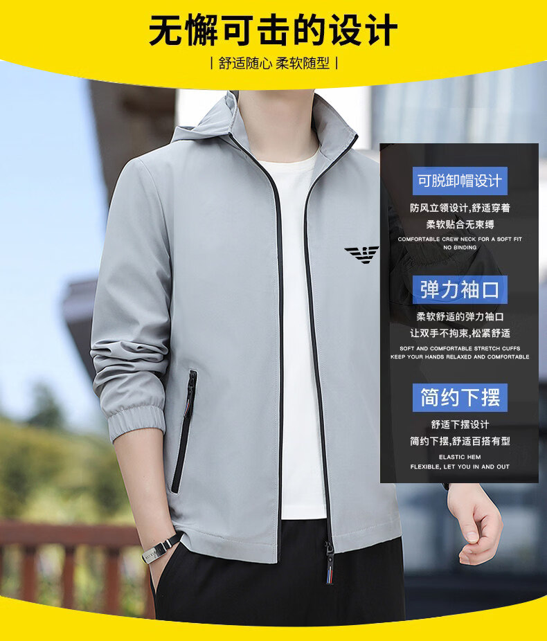 EA7 Armani high-end men's jacket spring and autumn 2026 new handsome thin casual tops large size blue spring and autumn M 90-105Jin Jin equals 0.5 kg
