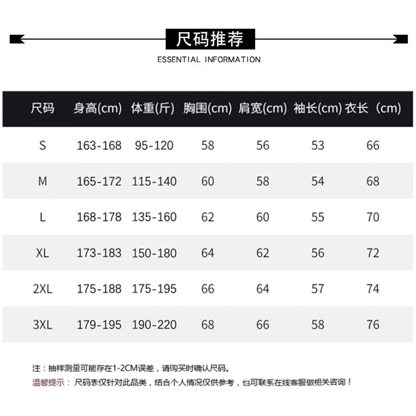 China (cm) 160-165/84-86 165-170 / 88-90 167-172 / 92-96 168-173 / 98-102 170-176 / 106-110