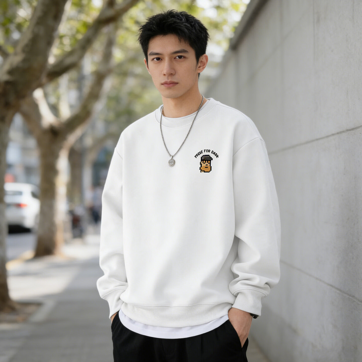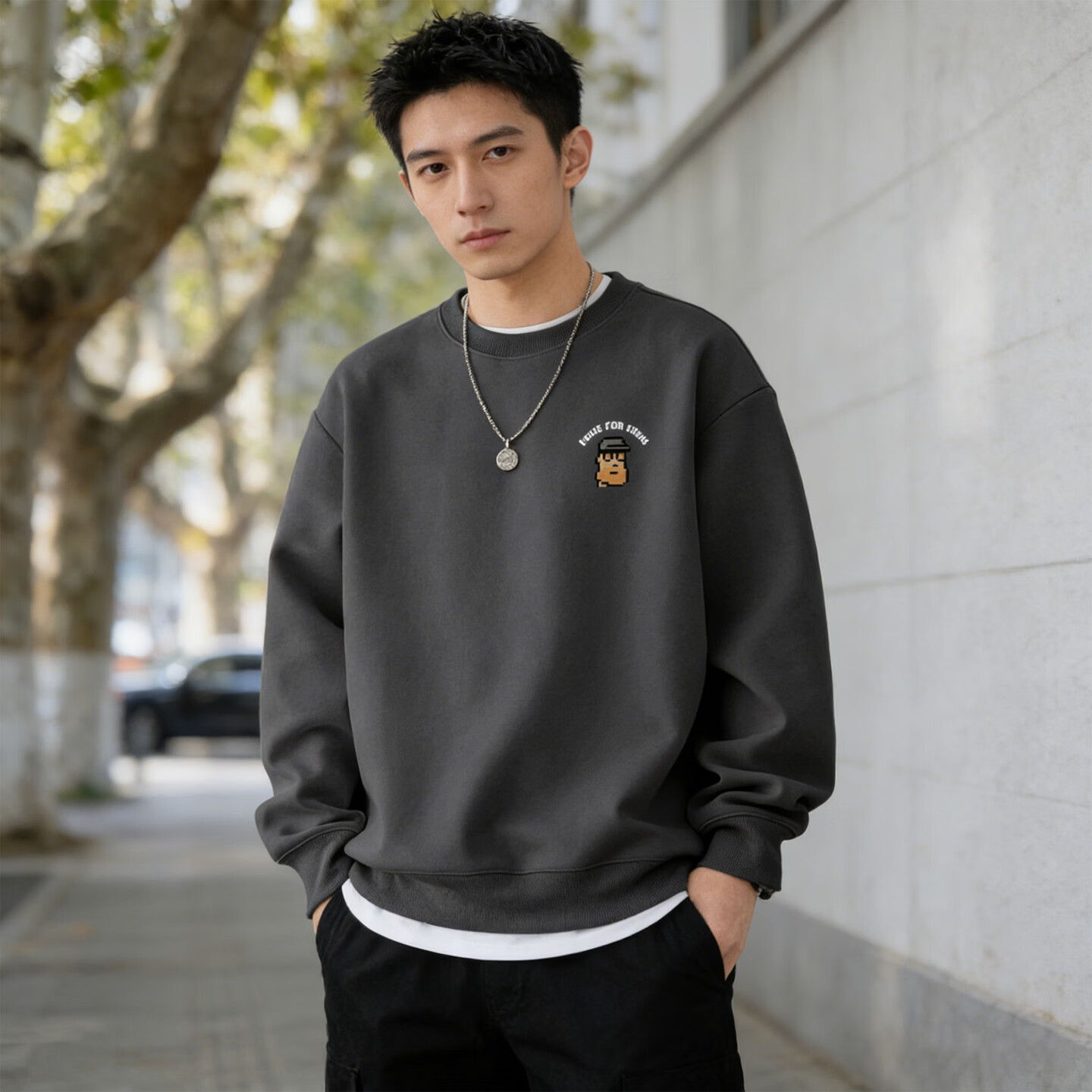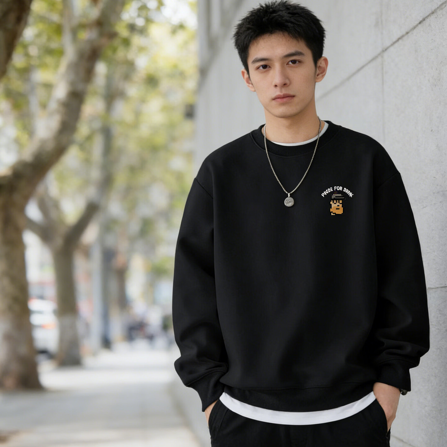 Romon sweatshirt men's 2026 spring style American heavyweight loose round neck pullover trendy versatile long-sleeved retro jacket black S 95-120
