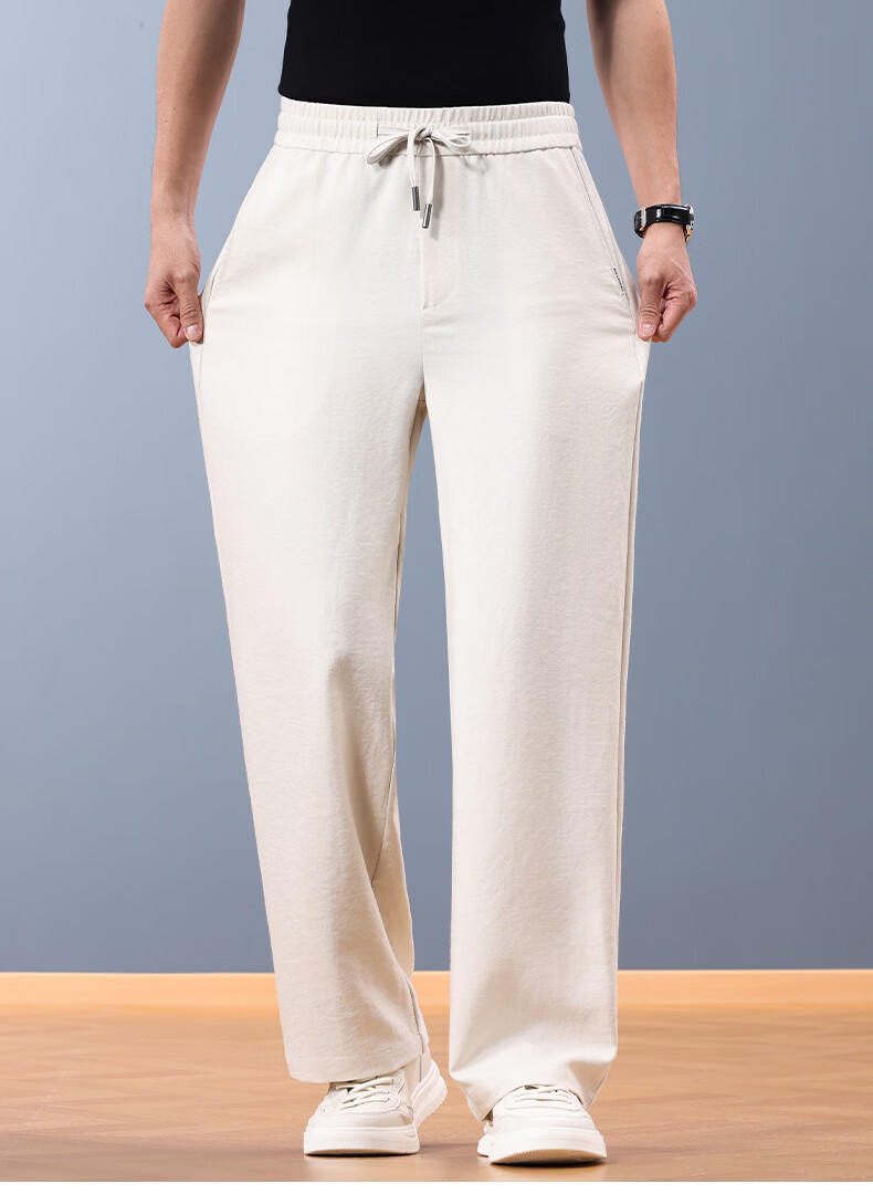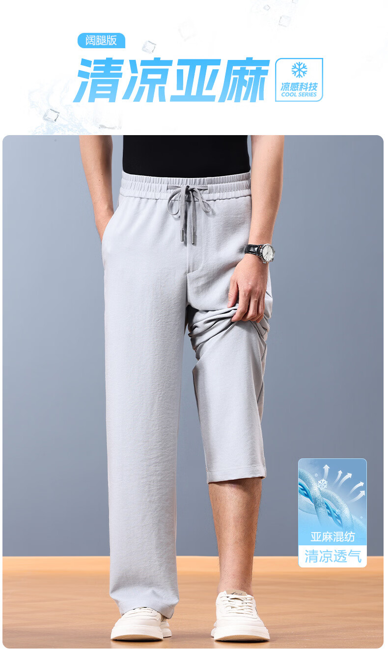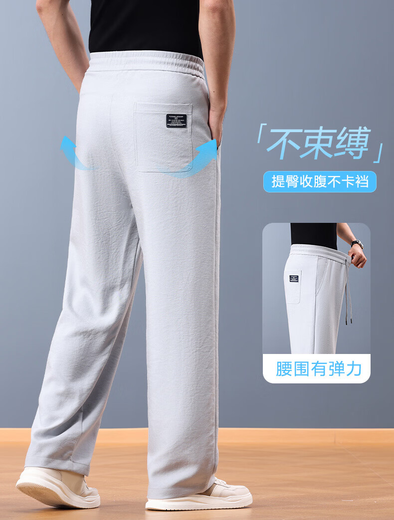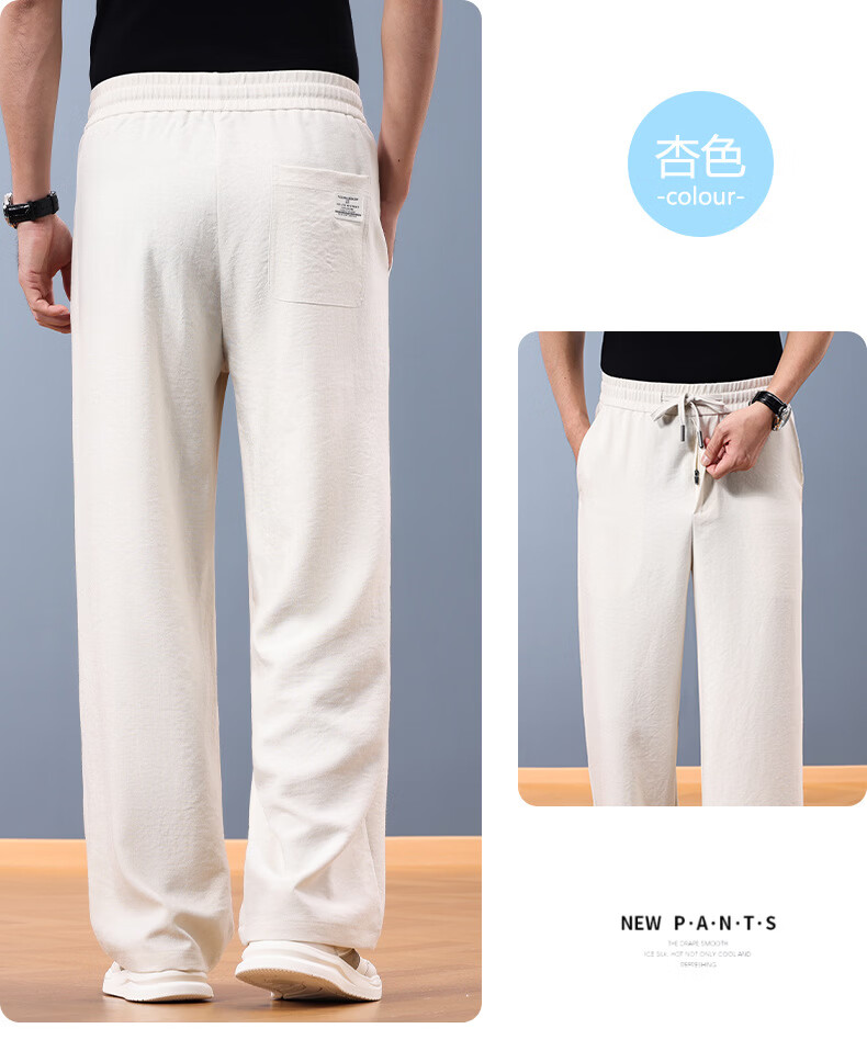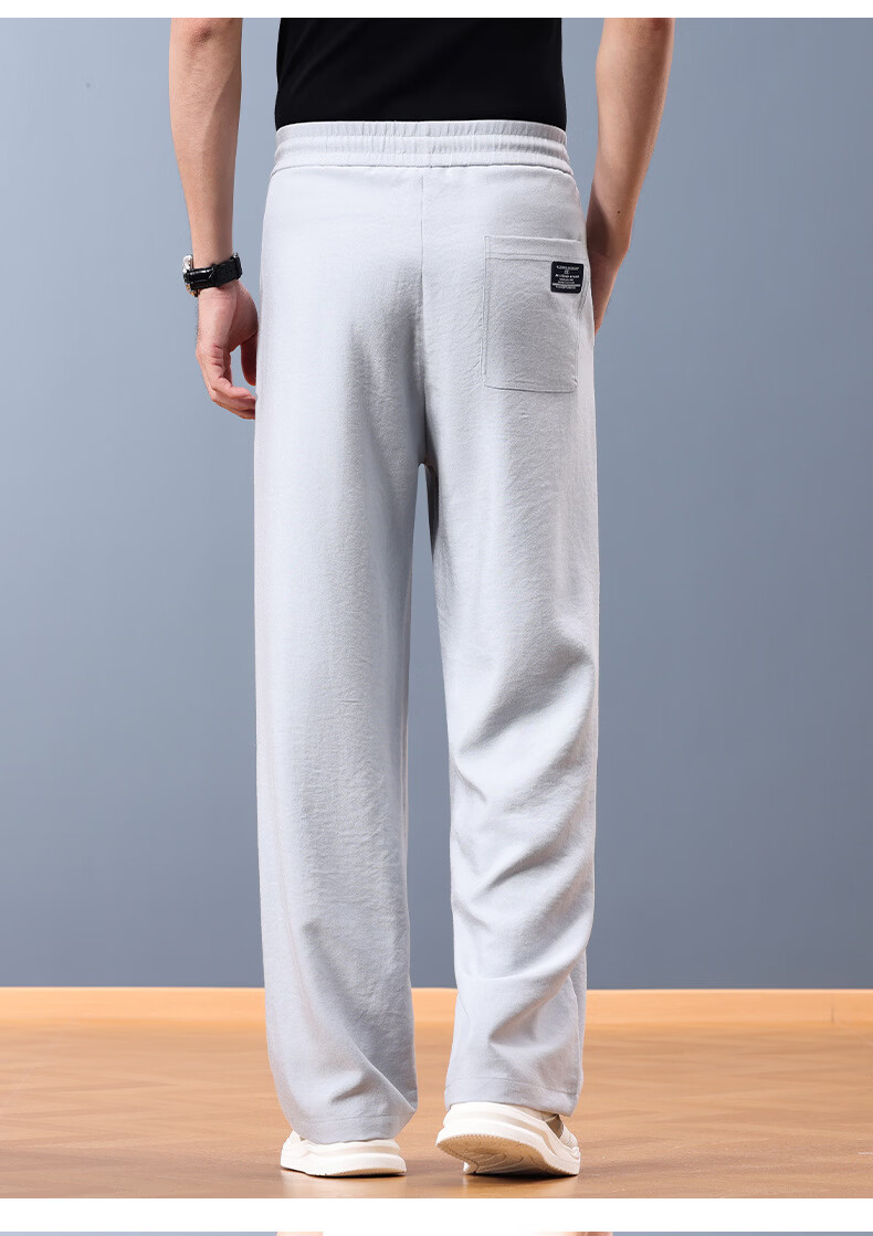 FORTEI luxury high-end brand summer linen cool wide-leg pants men's loose straight drawstring casual pants breathable casual pants nylon linen black 5XL