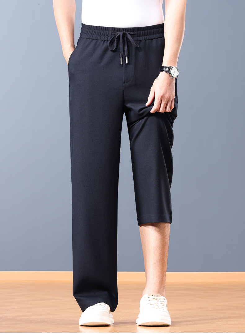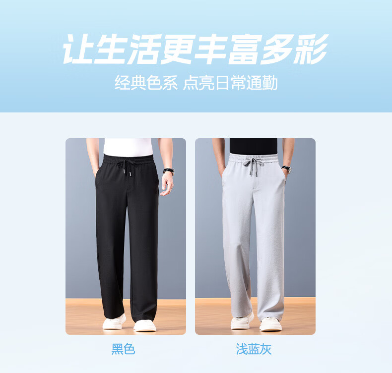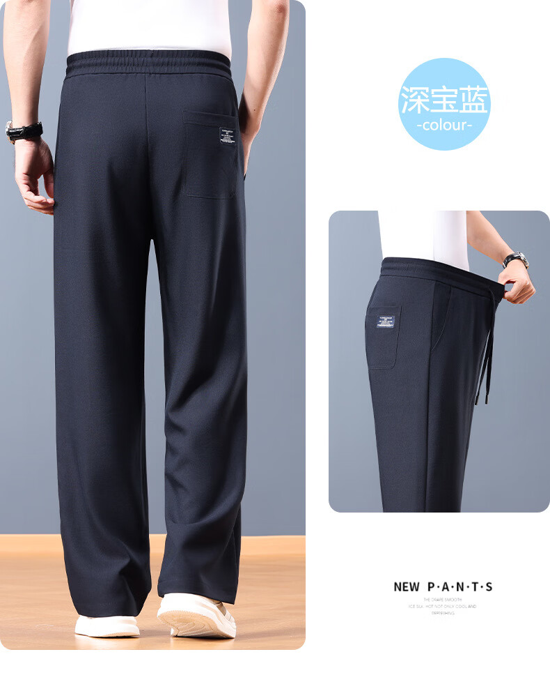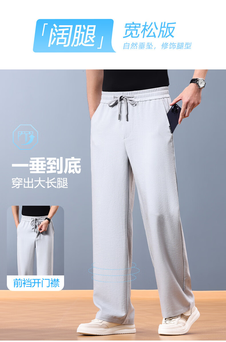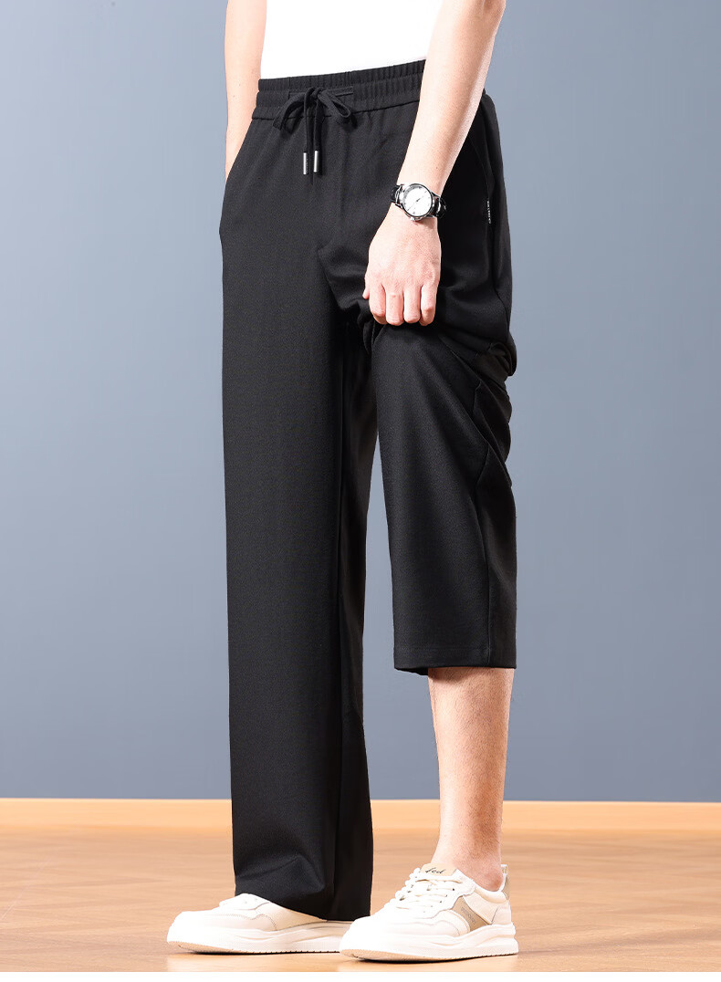 FORTEI luxury high-end brand summer linen cool wide-leg pants men's loose straight drawstring casual pants breathable casual pants nylon linen black 5XL