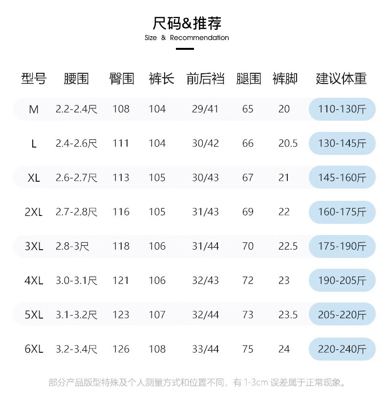 China (cm) 160-165/84-86 165-170 / 88-90 167-172 / 92-96 168-173 / 98-102 170-176 / 106-110