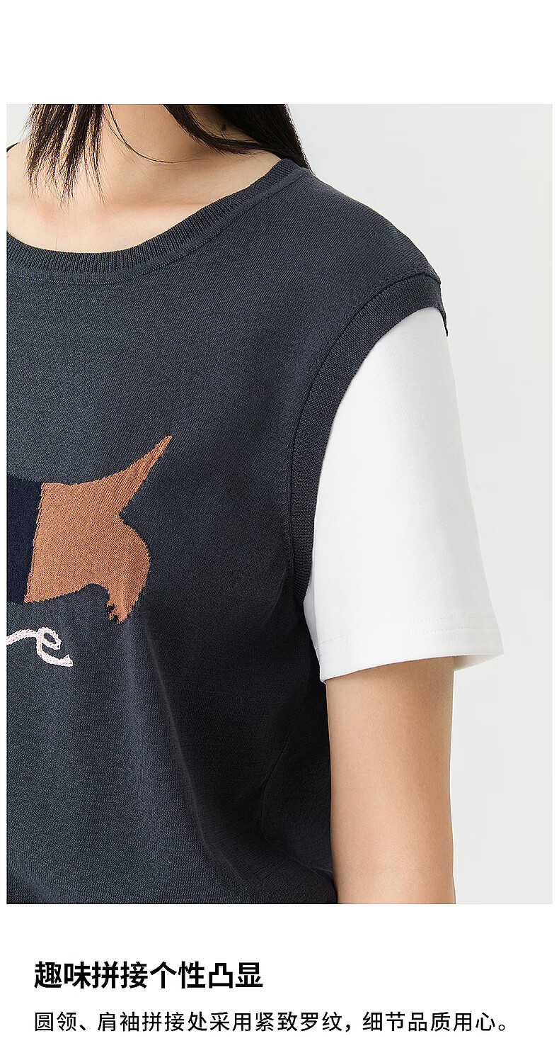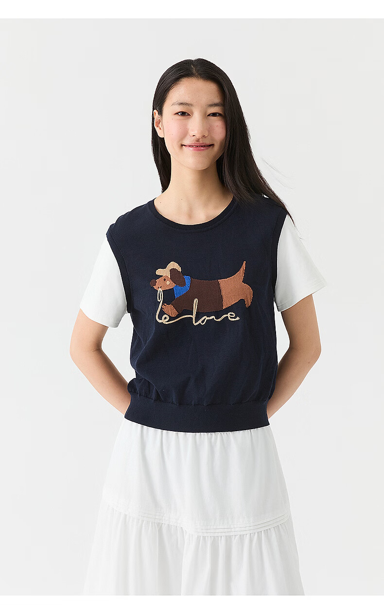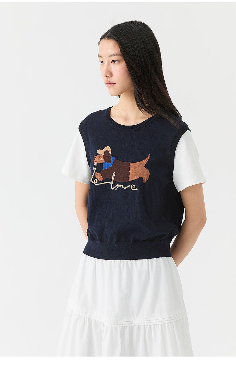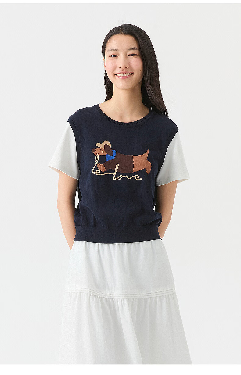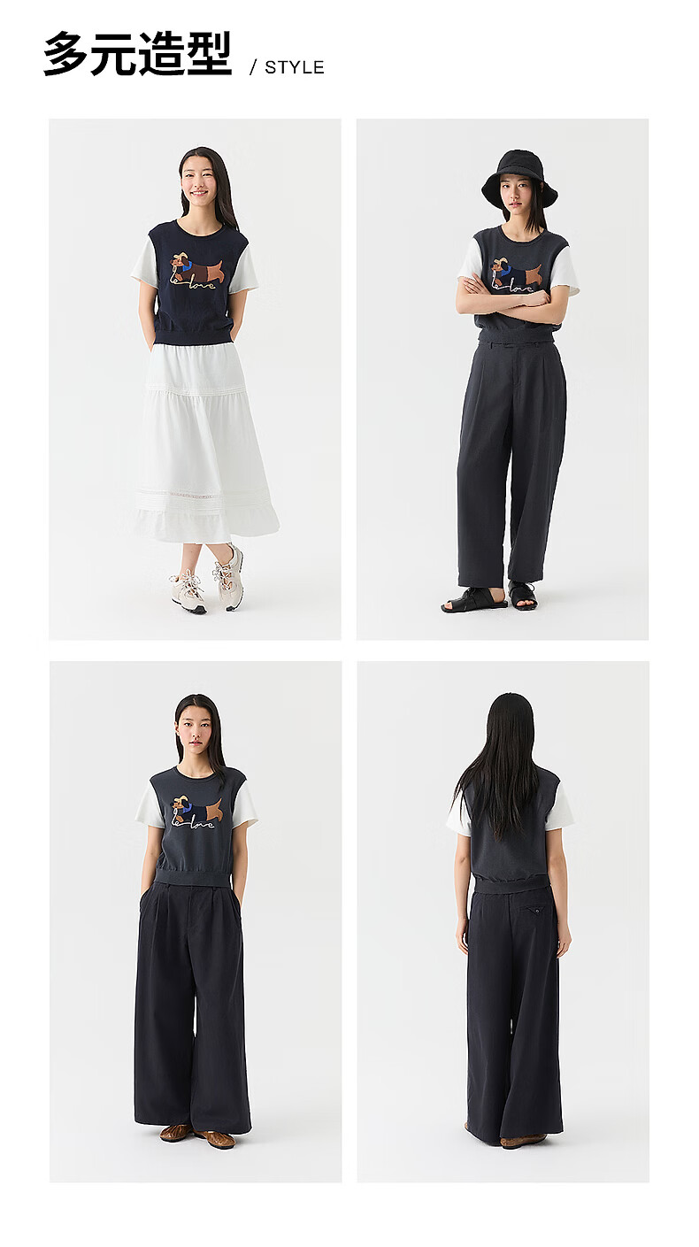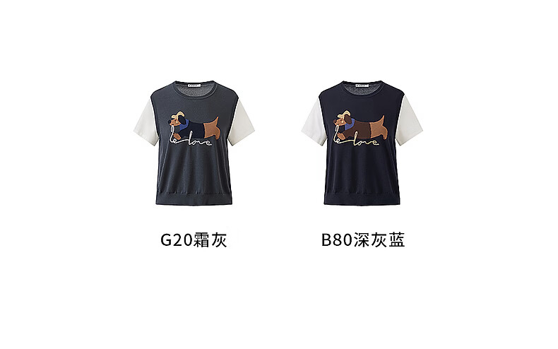 Broadcast holiday two-piece round neck short-sleeved sweater for women 26 summer new interesting loose top DDT2SD5622 B80 dark gray blue M