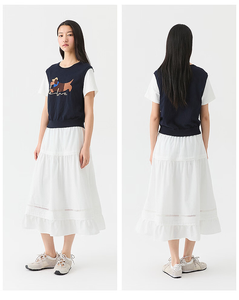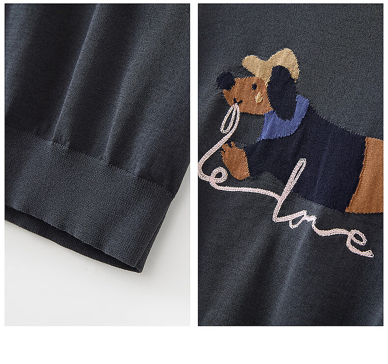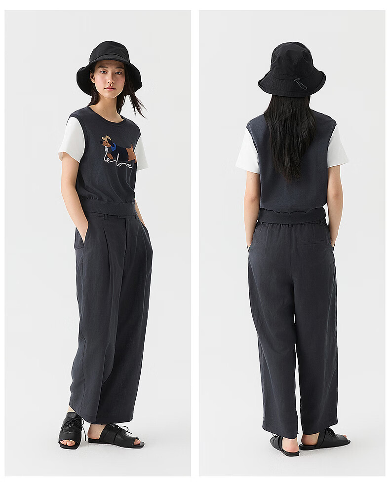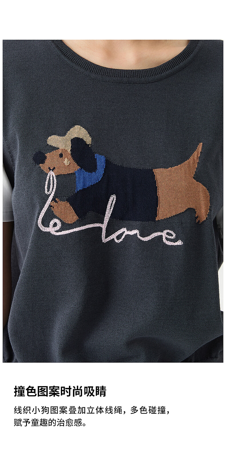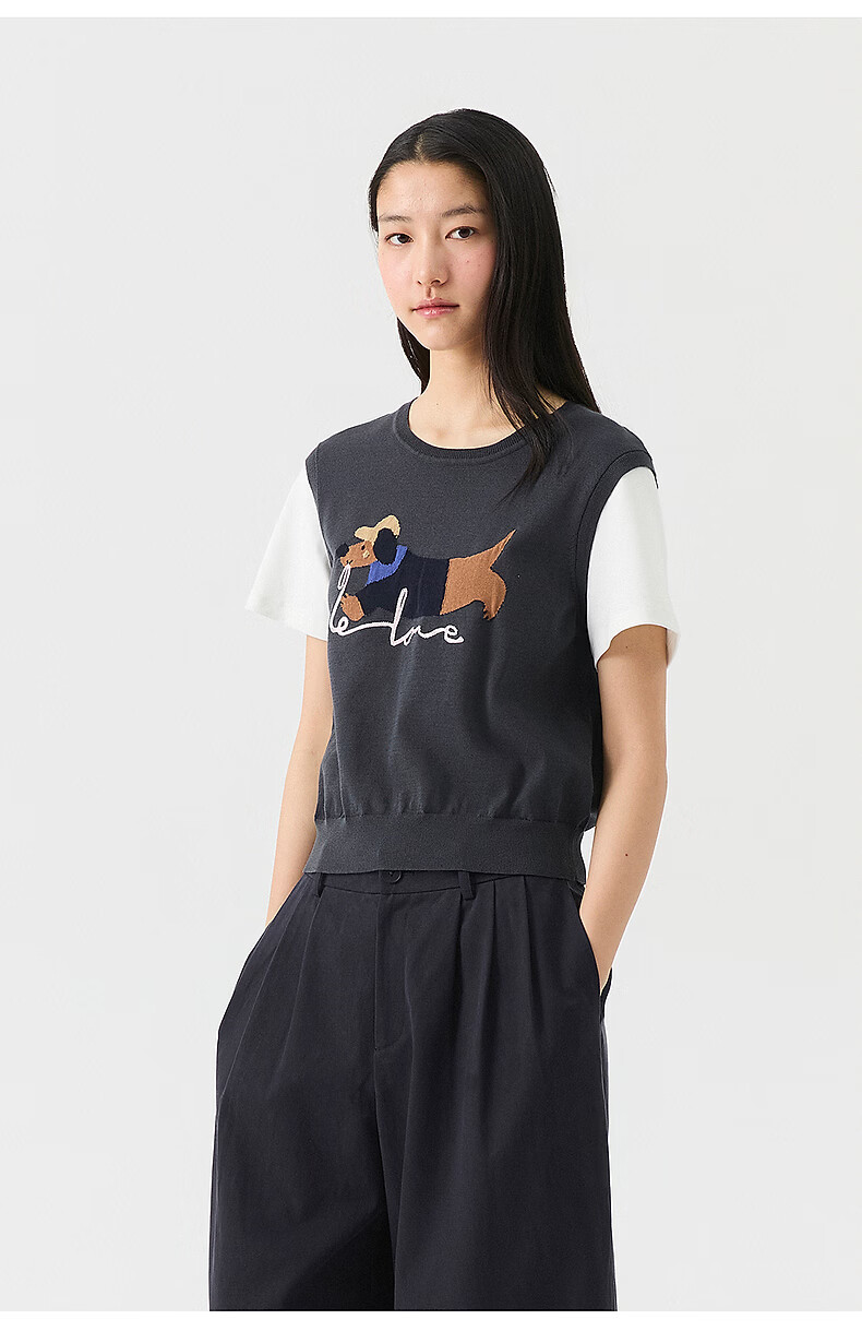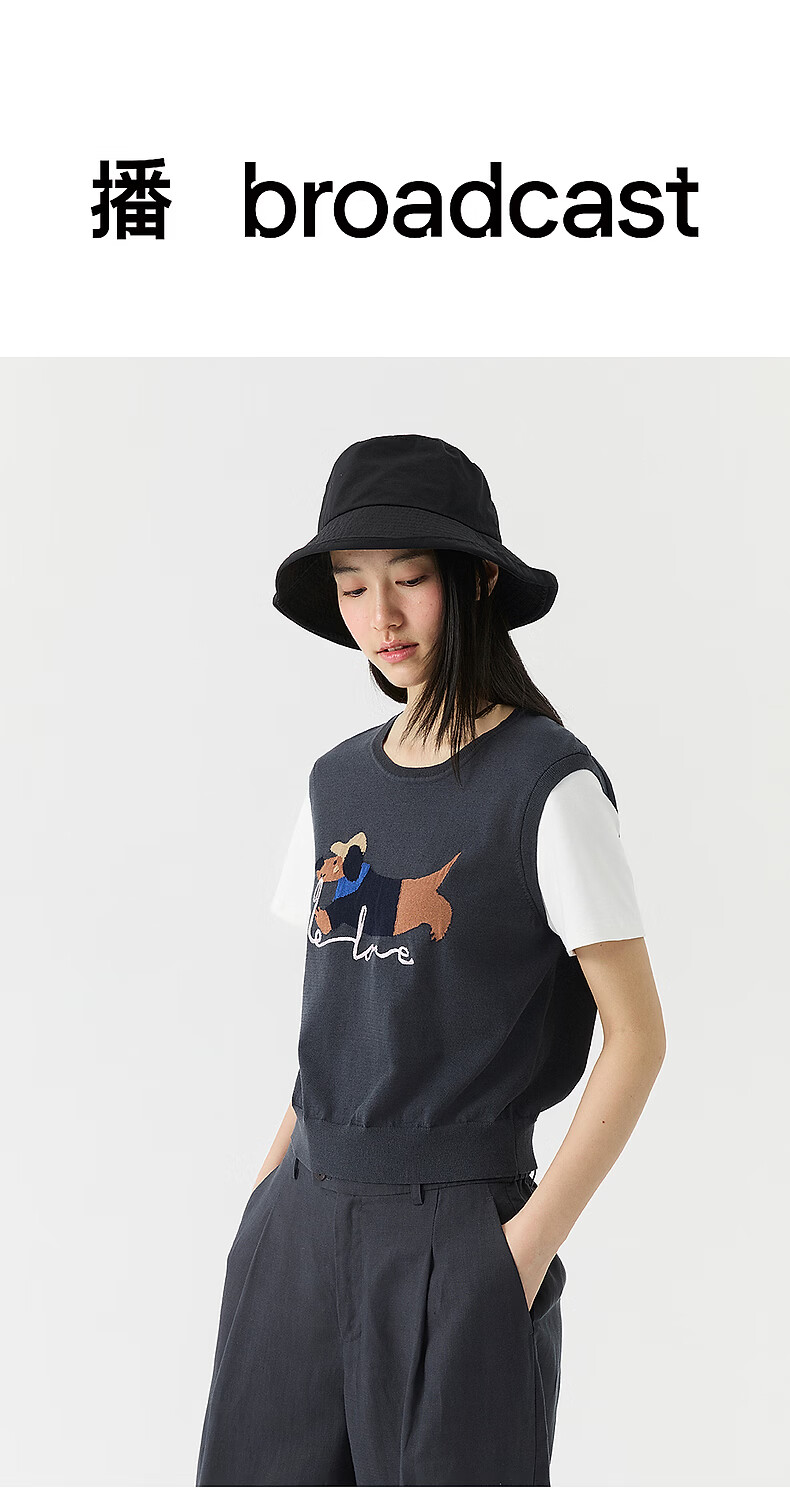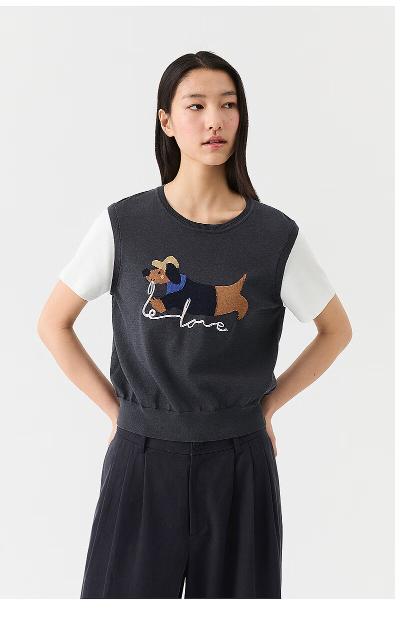 Broadcast holiday two-piece round neck short-sleeved sweater for women 26 summer new interesting loose top DDT2SD5622 B80 dark gray blue M