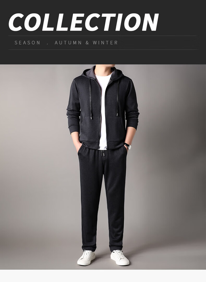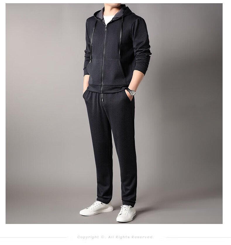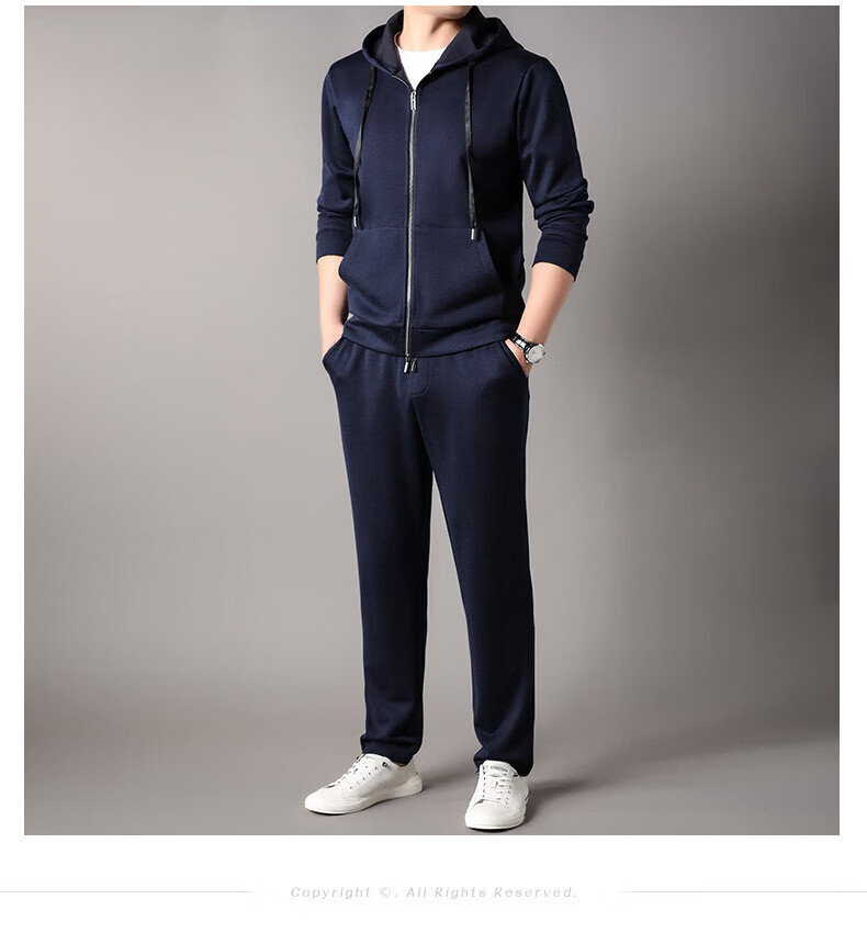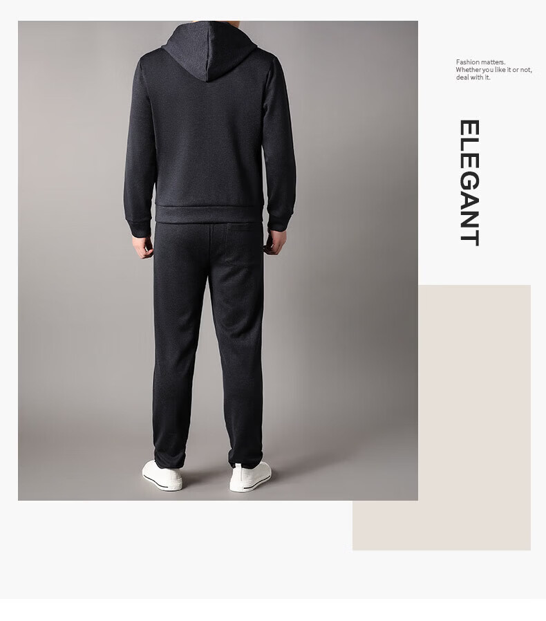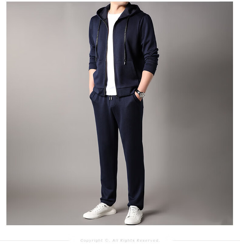 Goldlion 2026 Spring Men's Sweater Suit New Cashmere Sports Pants Hooded Cardigan Casual BB-83121 Navy Blue M 170