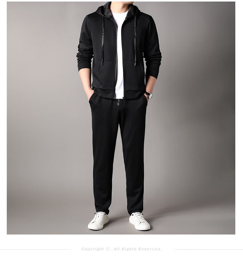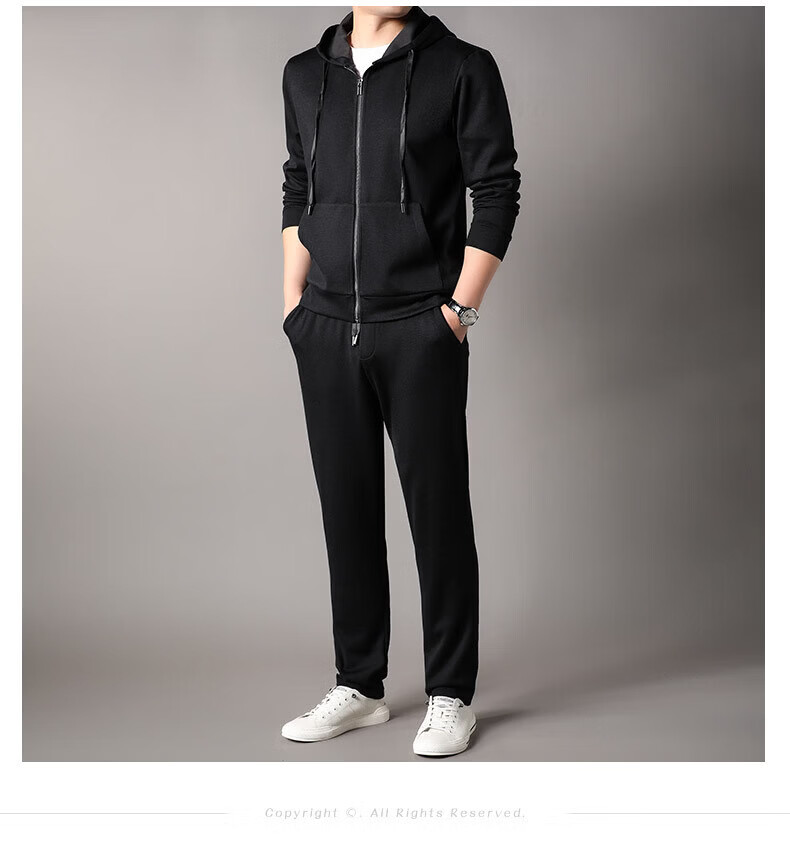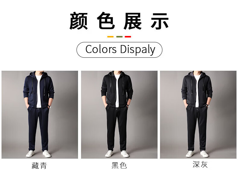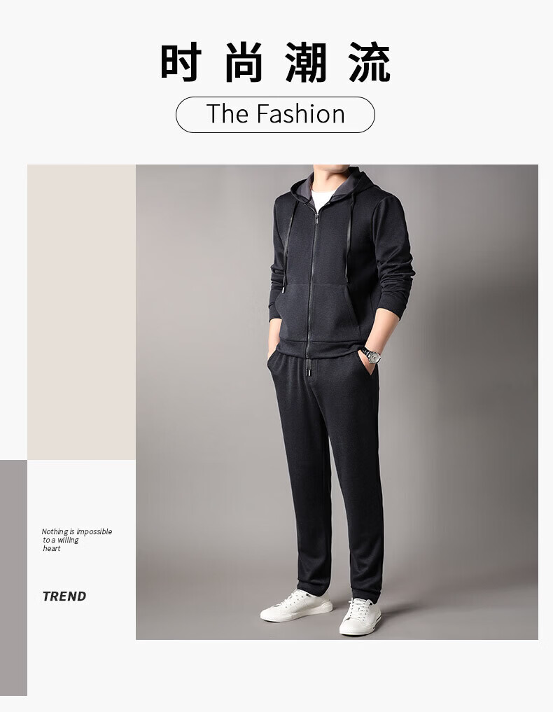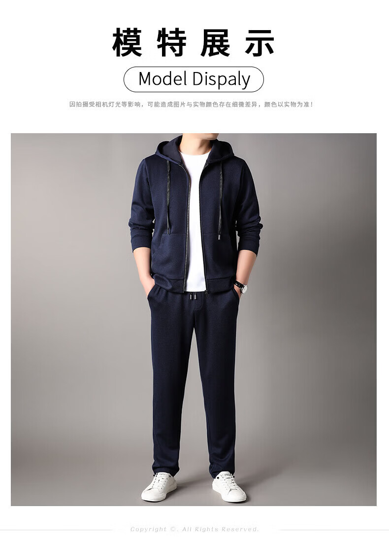 Goldlion 2026 Spring Men's Sweater Suit New Cashmere Sports Pants Hooded Cardigan Casual BB-83121 Navy Blue M 170