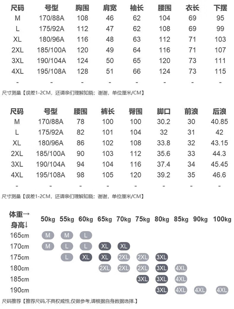 China (cm) 160-165/84-86 165-170 / 88-90 167-172 / 92-96 168-173 / 98-102 170-176 / 106-110